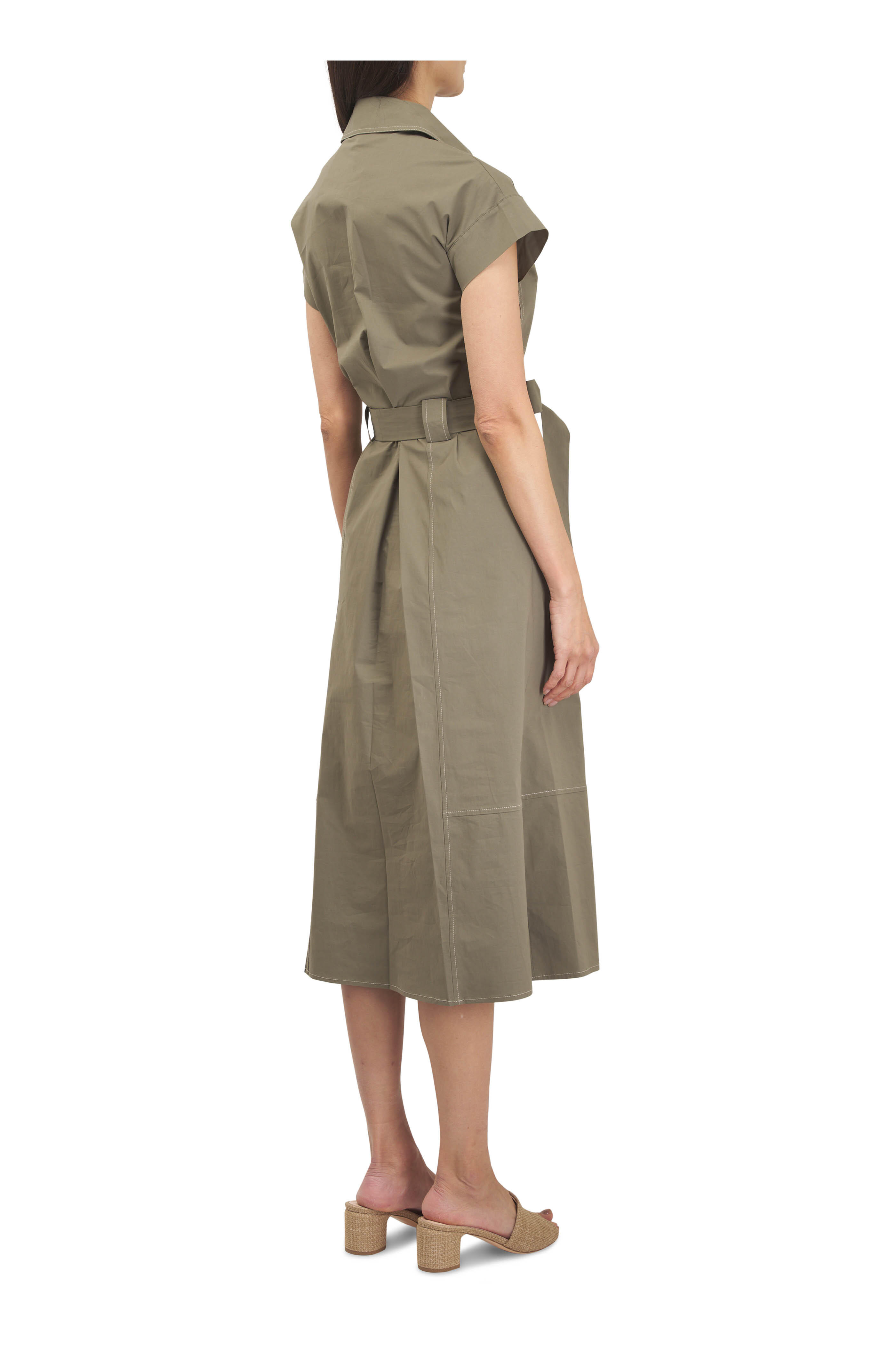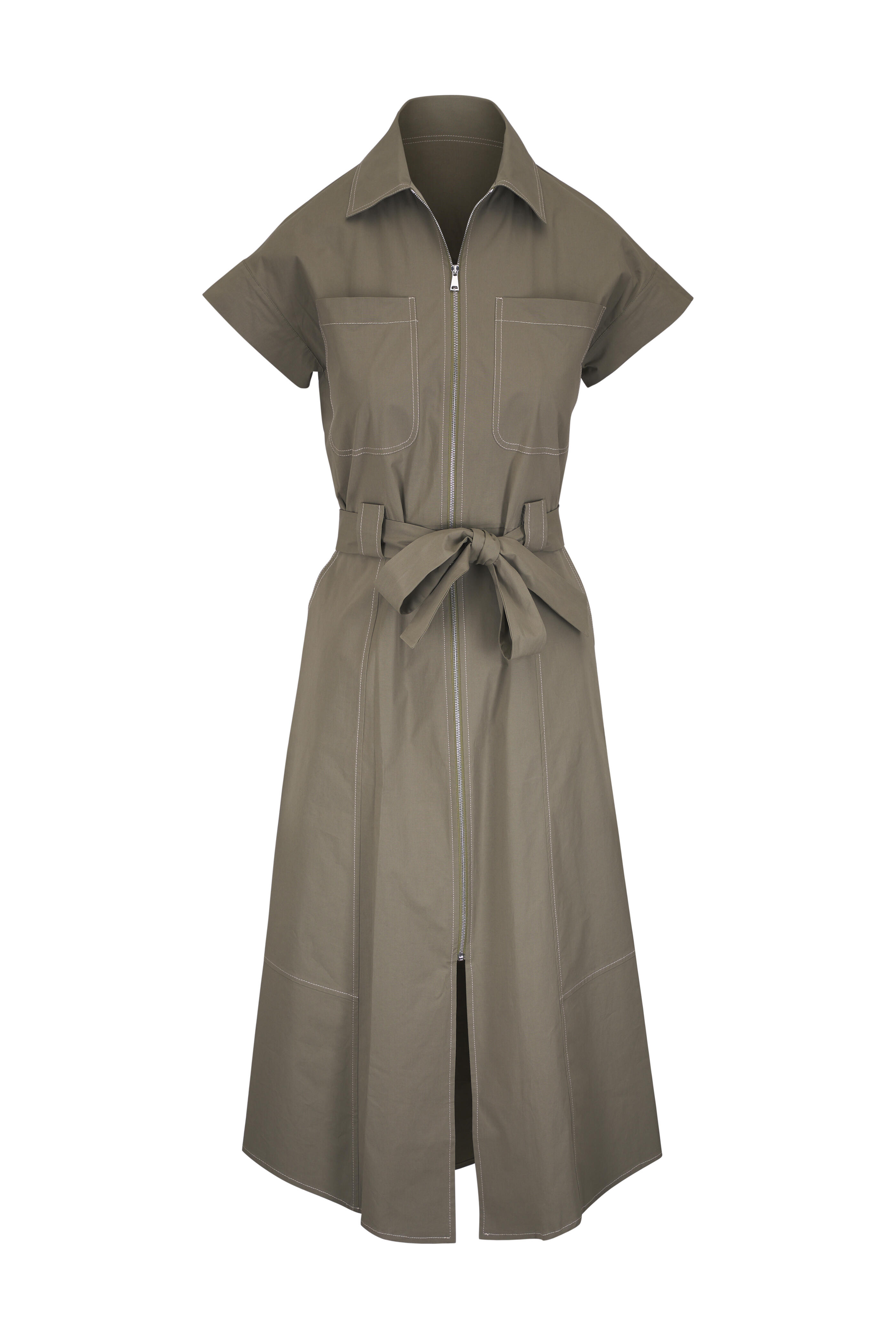 Megan Military Green Zip Front Shirtdress