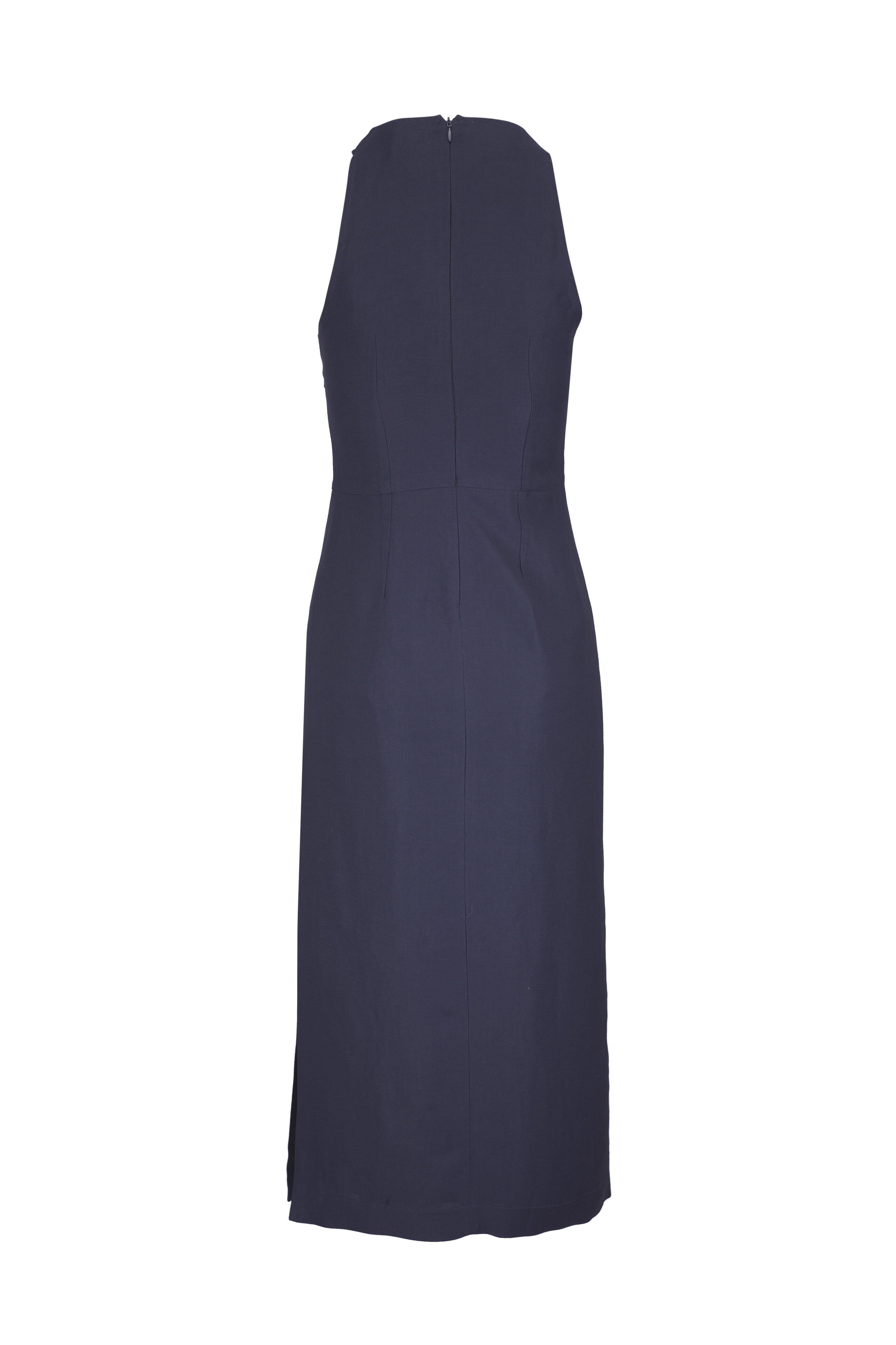 Round neckline. Concealed back zip. Side vents. Made in Italy. 49" shoulder to hem (size 2). 73% viscose, 27% linen; lined. Dry clean.