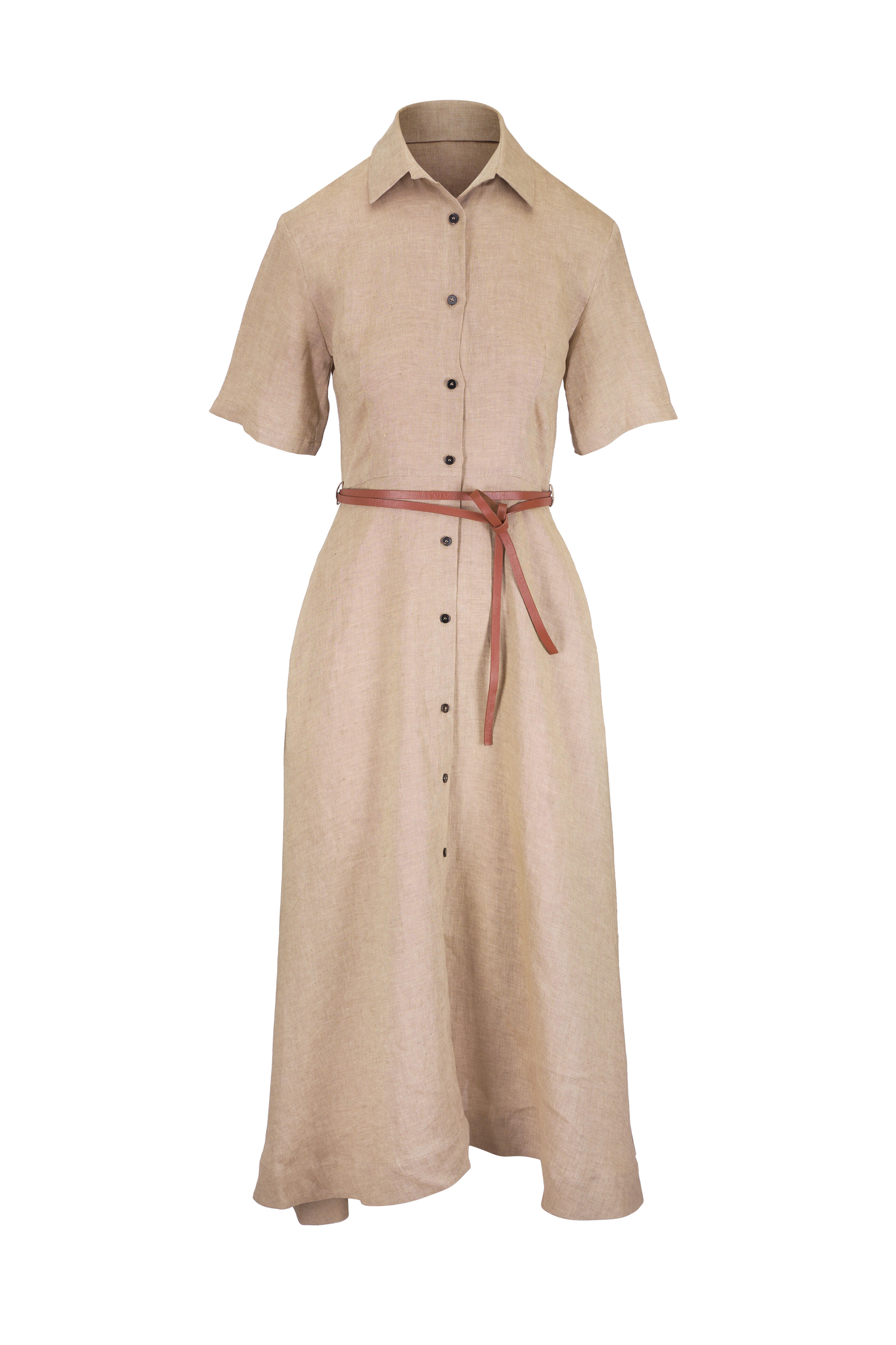 Mason Dark Tan Linen Belted Shirtdress