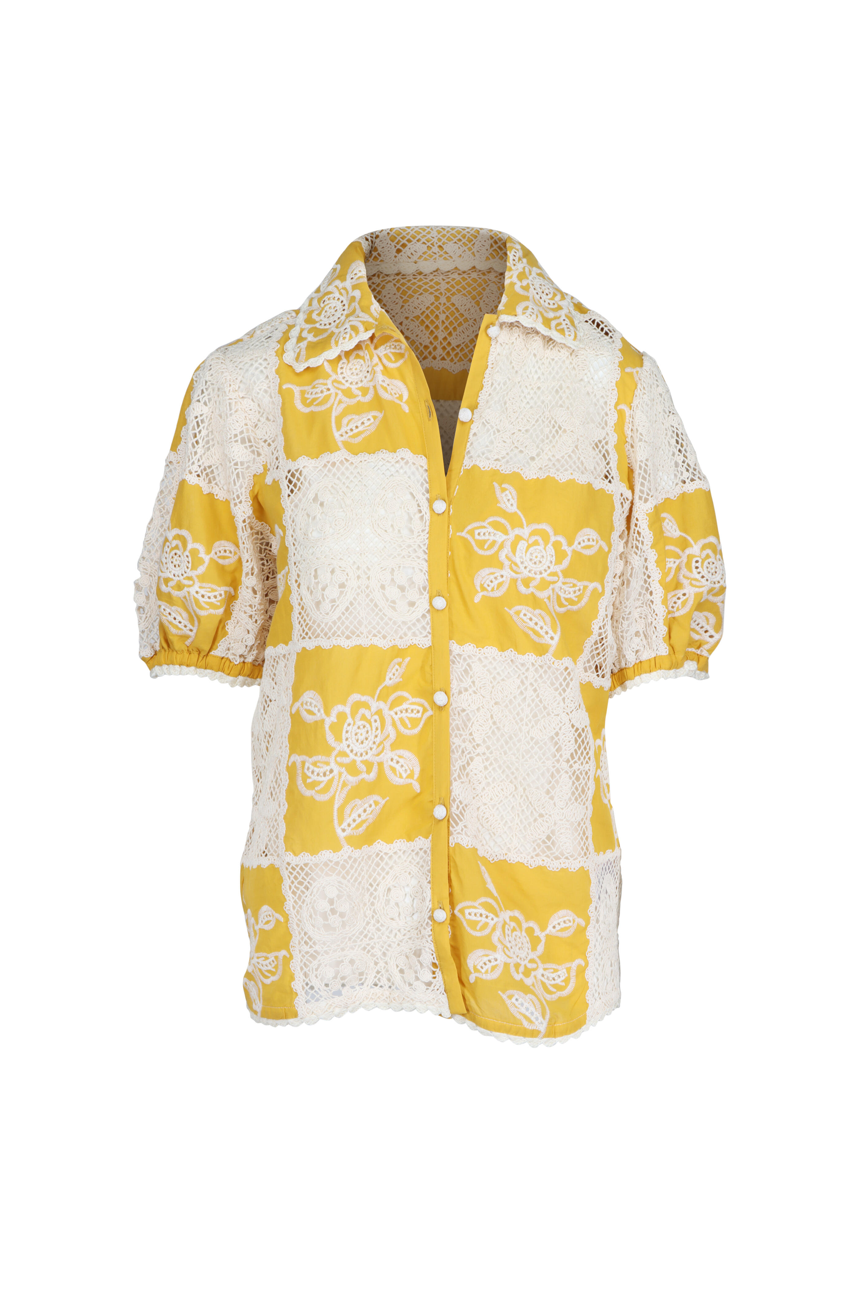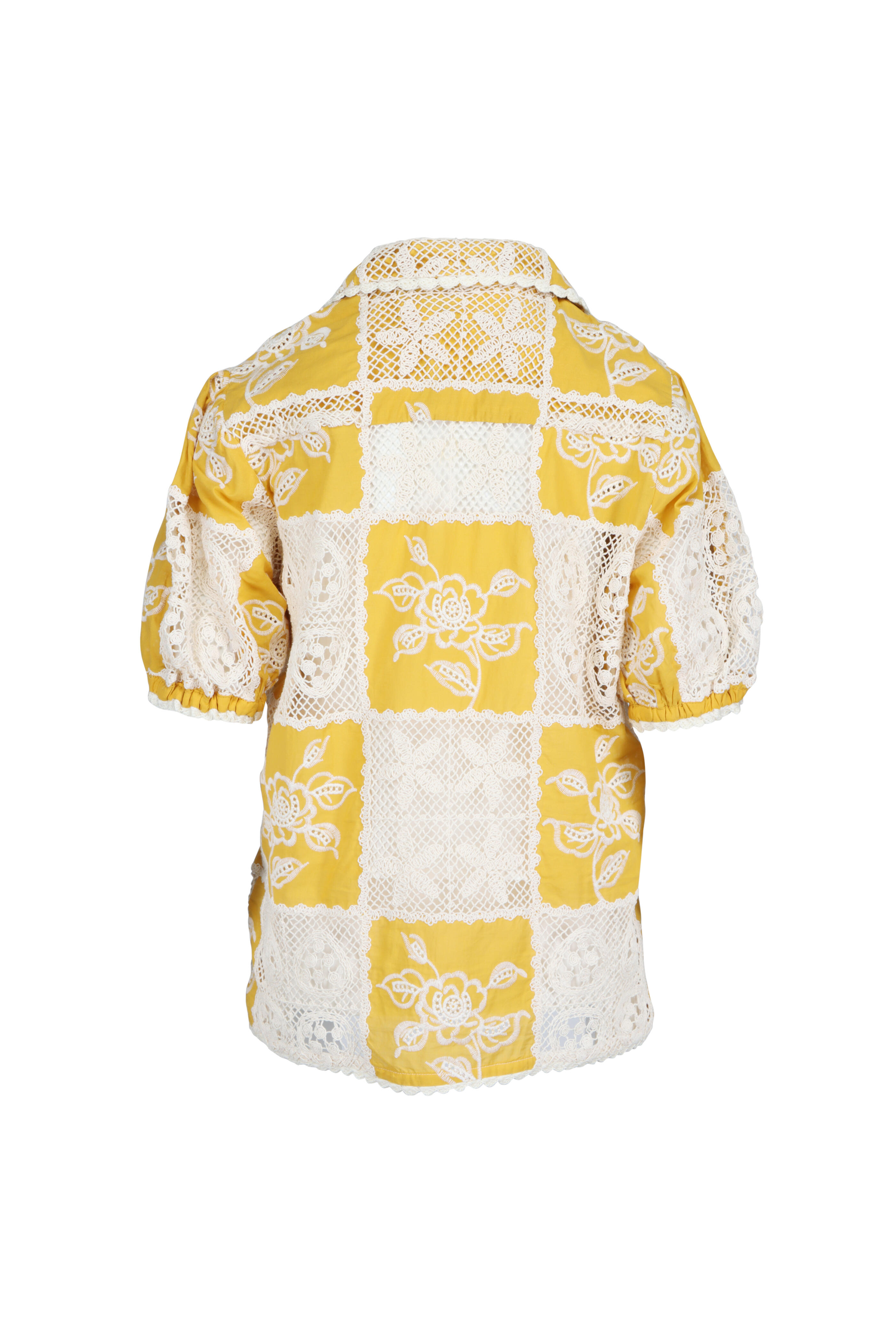 Lace Yellow & White Short Sleeve Shirt