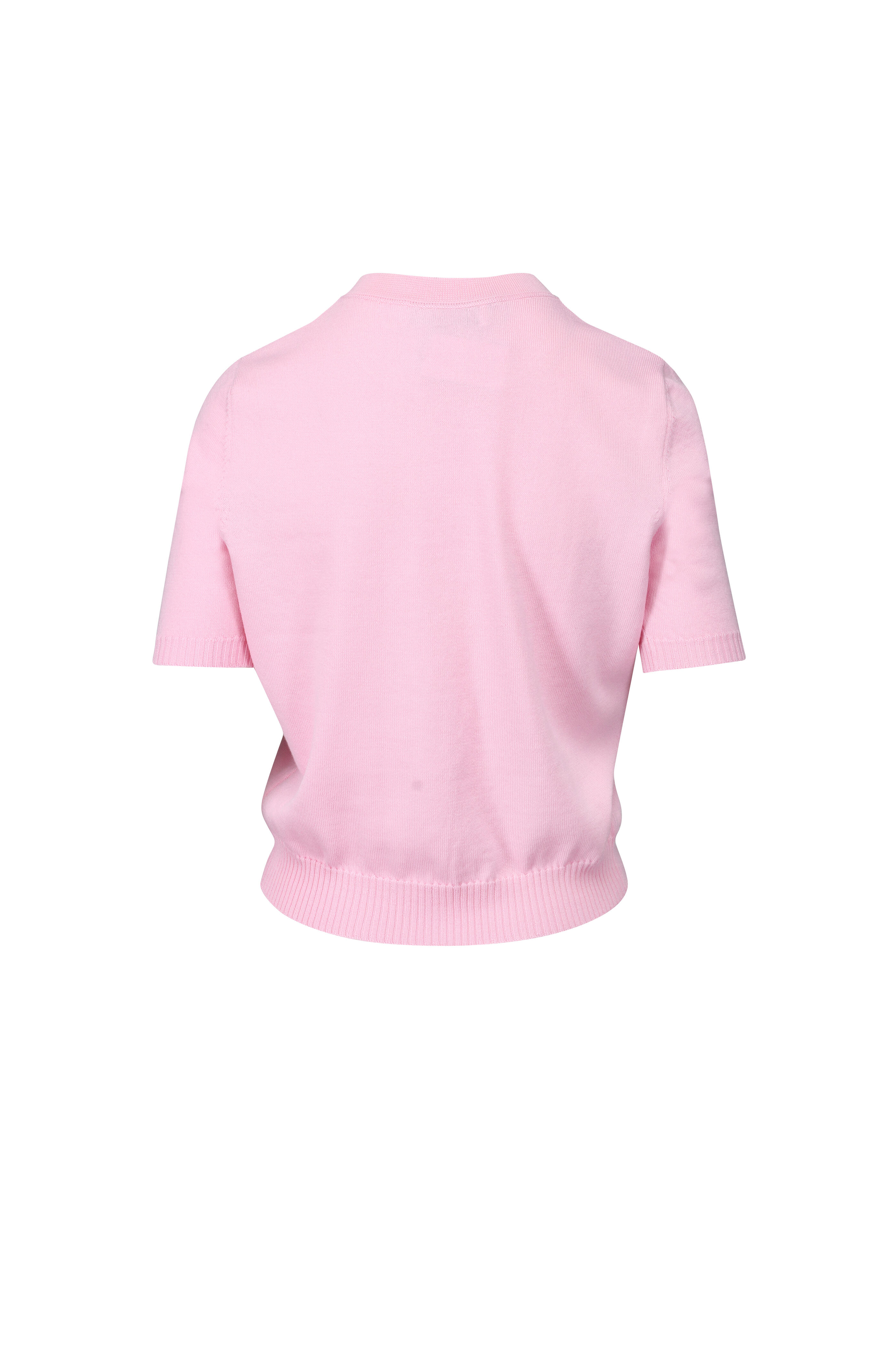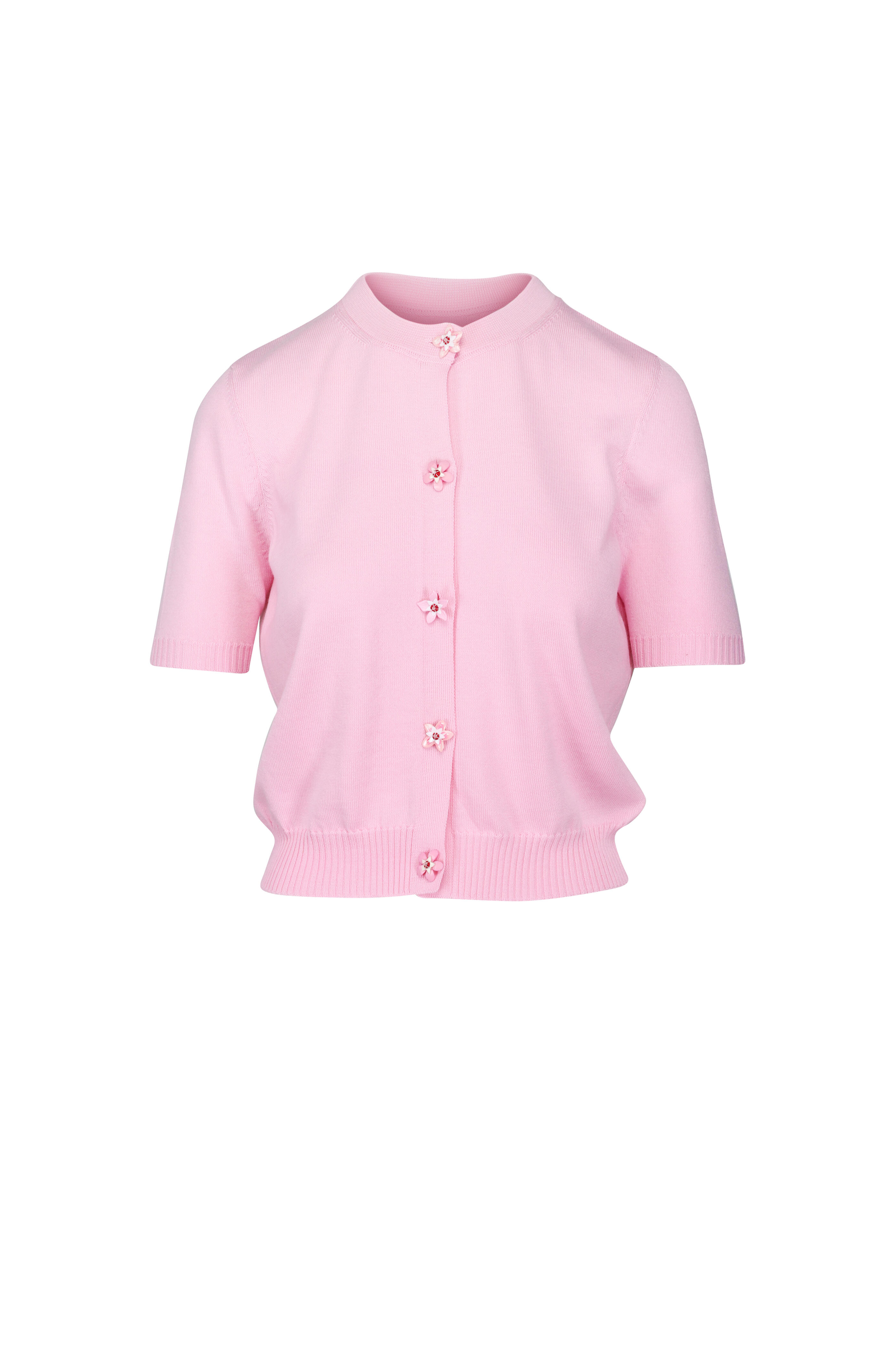 Pink Flower-Button Crewneck Cardigan