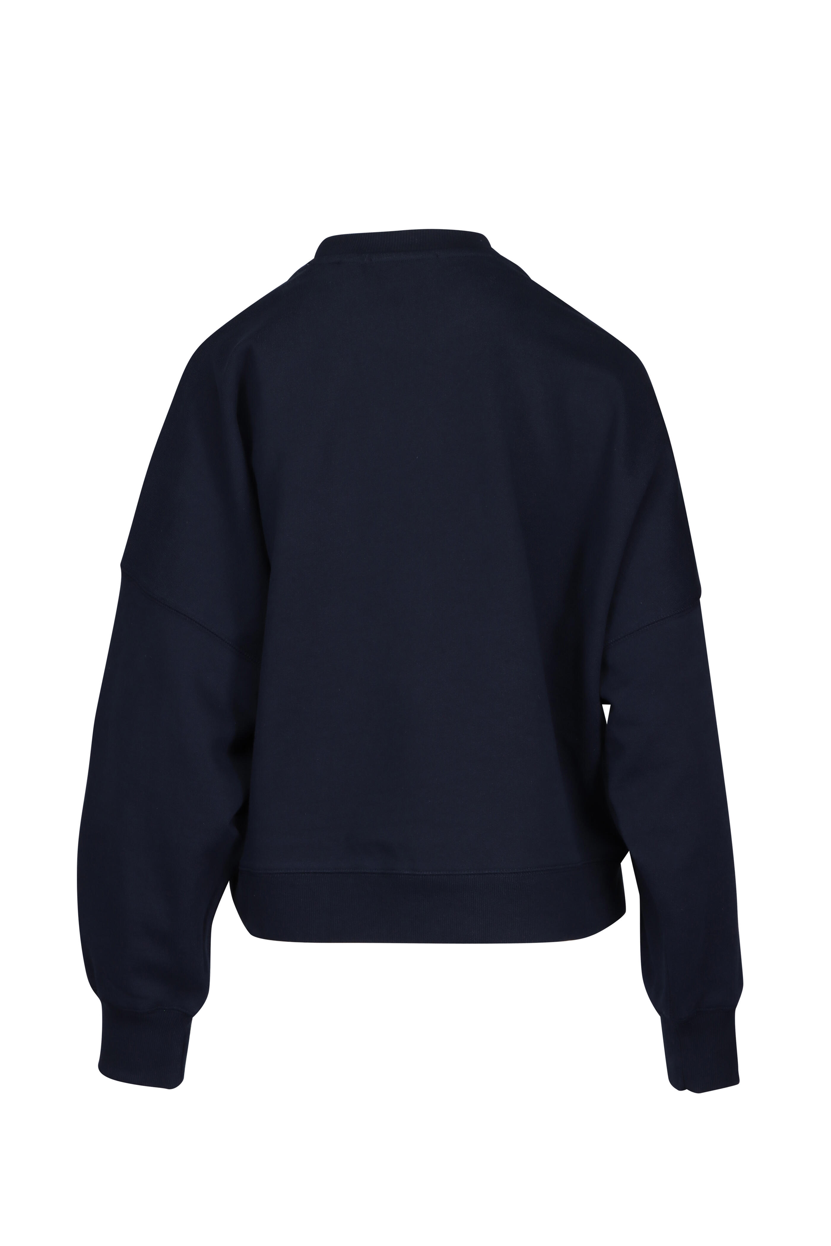 Crew neckline. Dropped shoulders. Long sleeves. Double stitching. Sequin and bead-embellished embroideries. Imported. Designed for a relaxed fit. 100% Cotton. Dry clean.