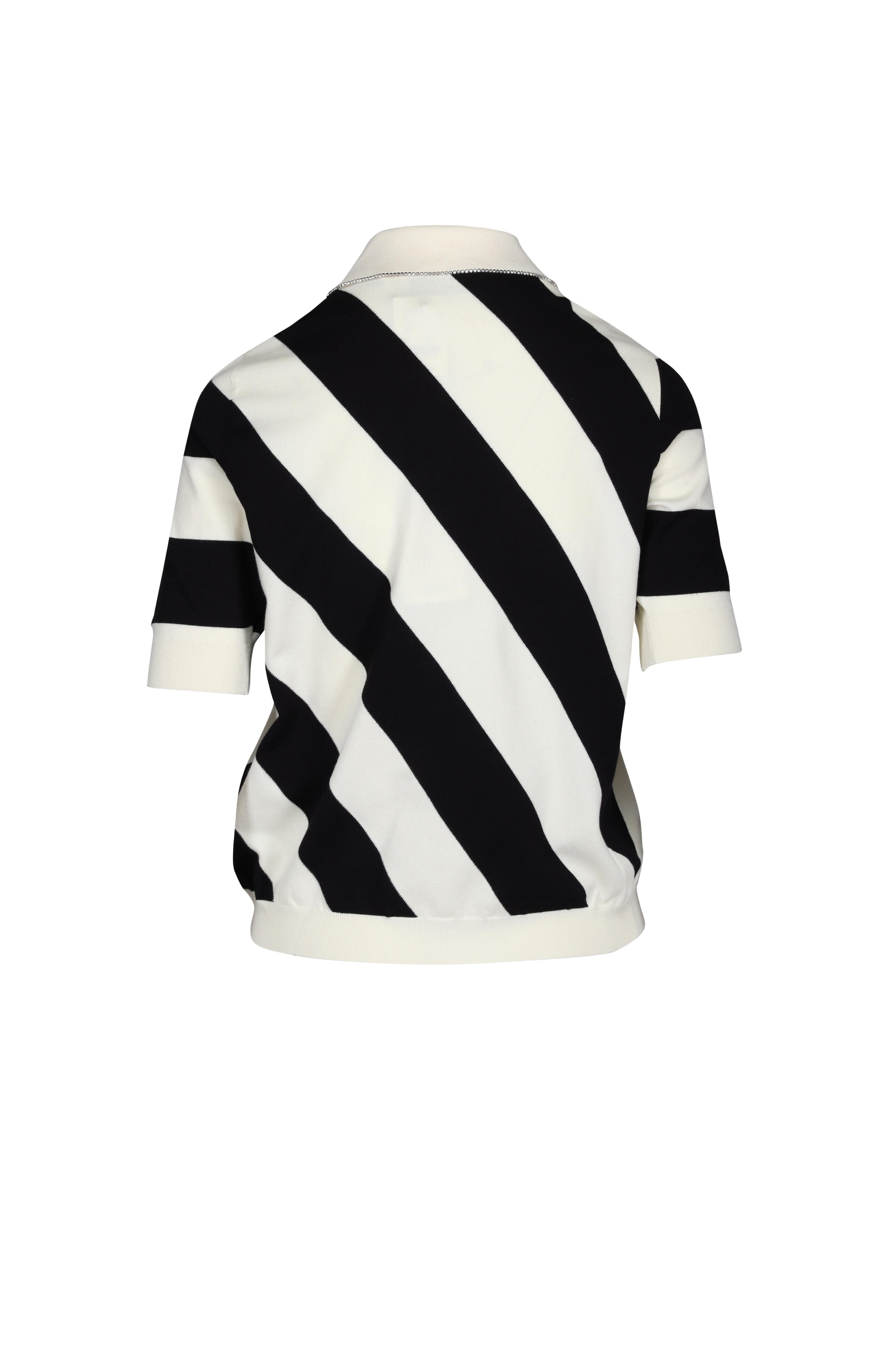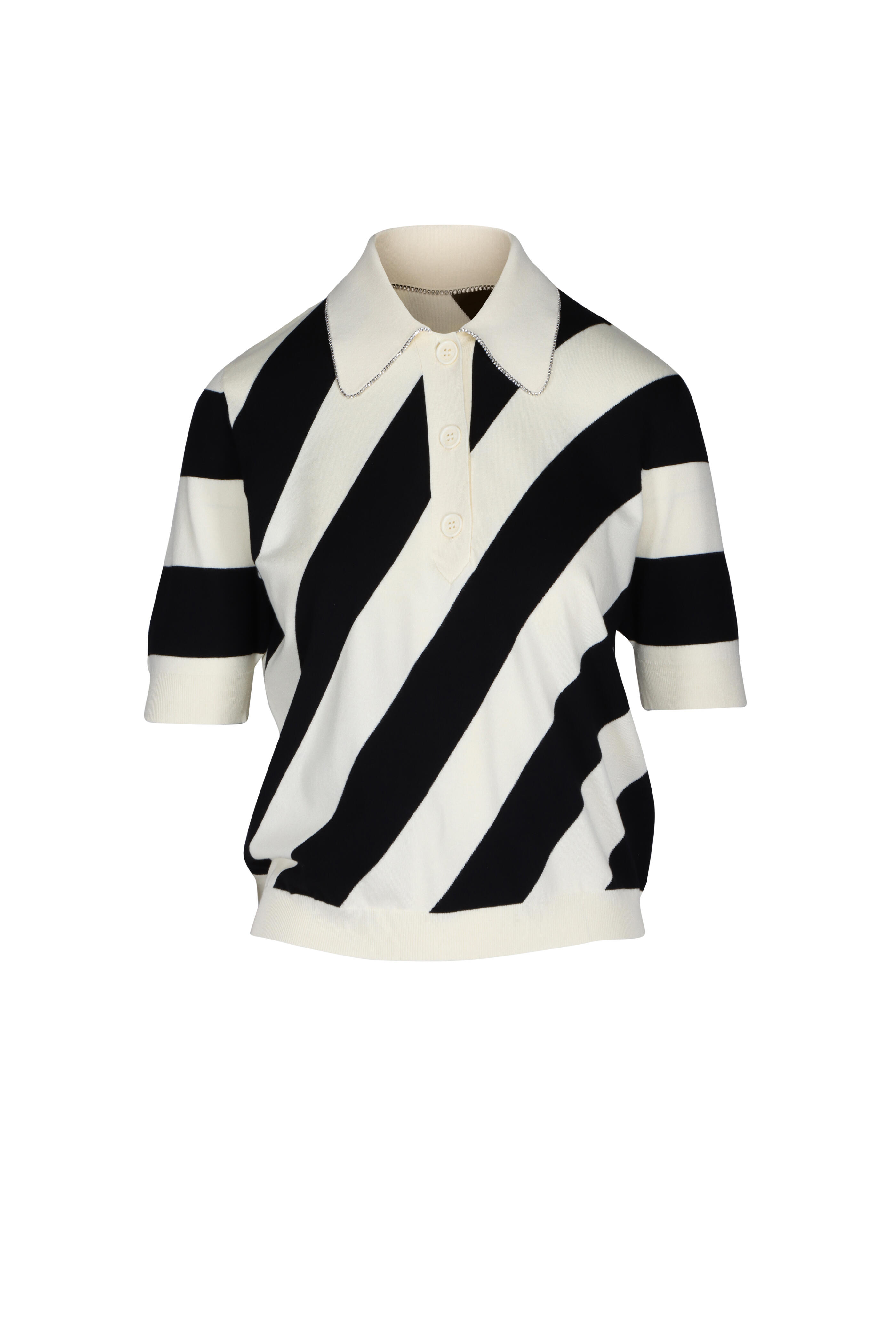 Spread embellished collar. Front button fastening. Short sleeves. Ribbed hem. Imported. Length: 22" (size XS). 62%Viscose 38% Polyester. Dry clean.