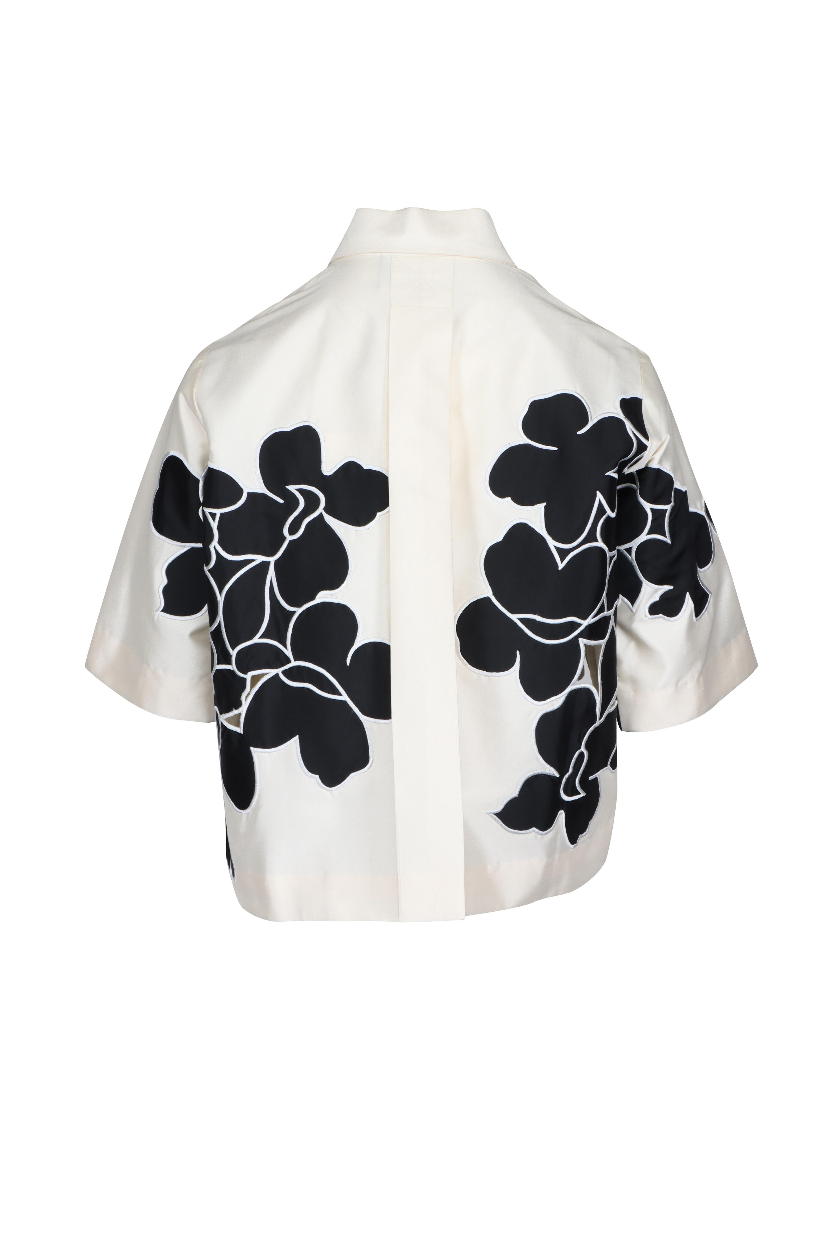 Collar. Short sleeves. Button front closure. Applique detail. Imported. 100% polyester. Dry clean.