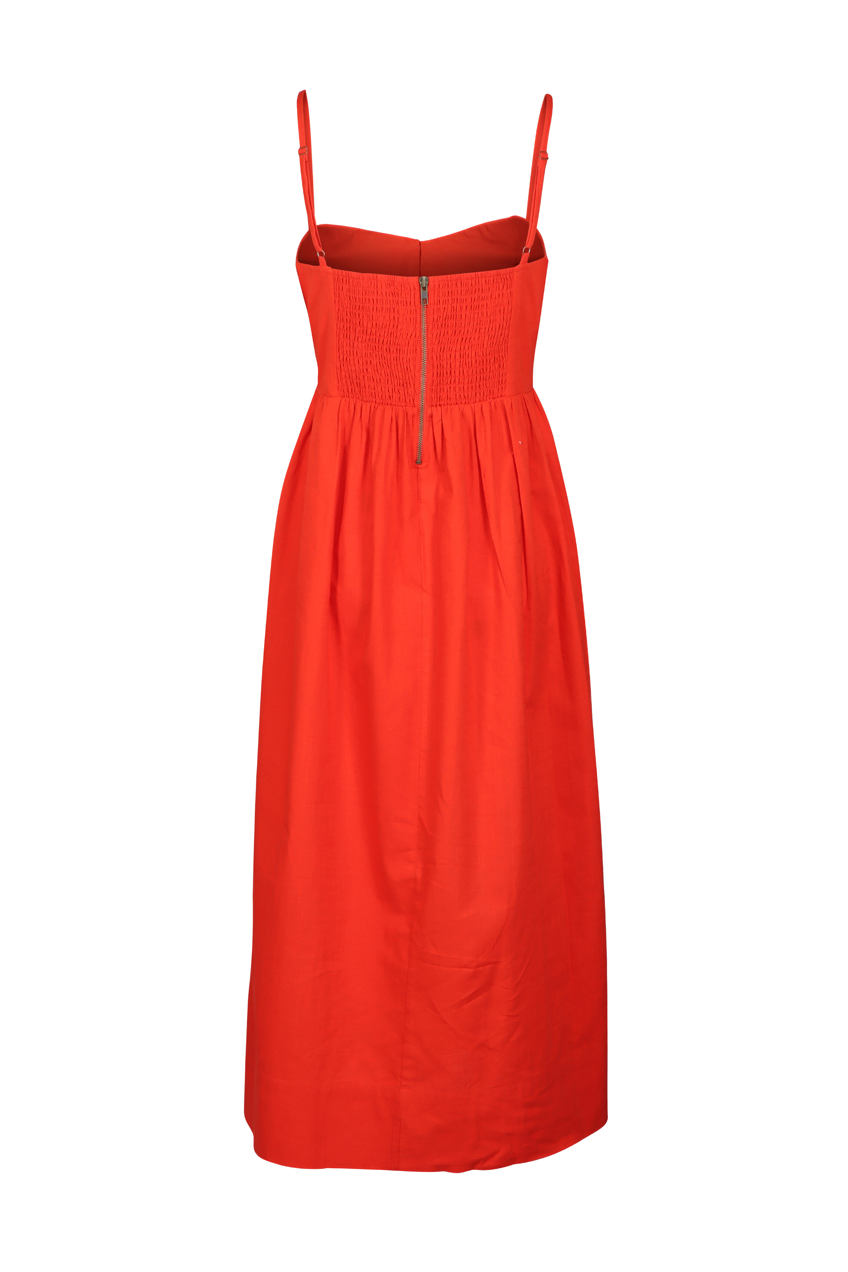 Sweetheart neckline. Sleeveless. Adjustable straps. Smocking at the back. Imported. 100% cotton. Dry clean.