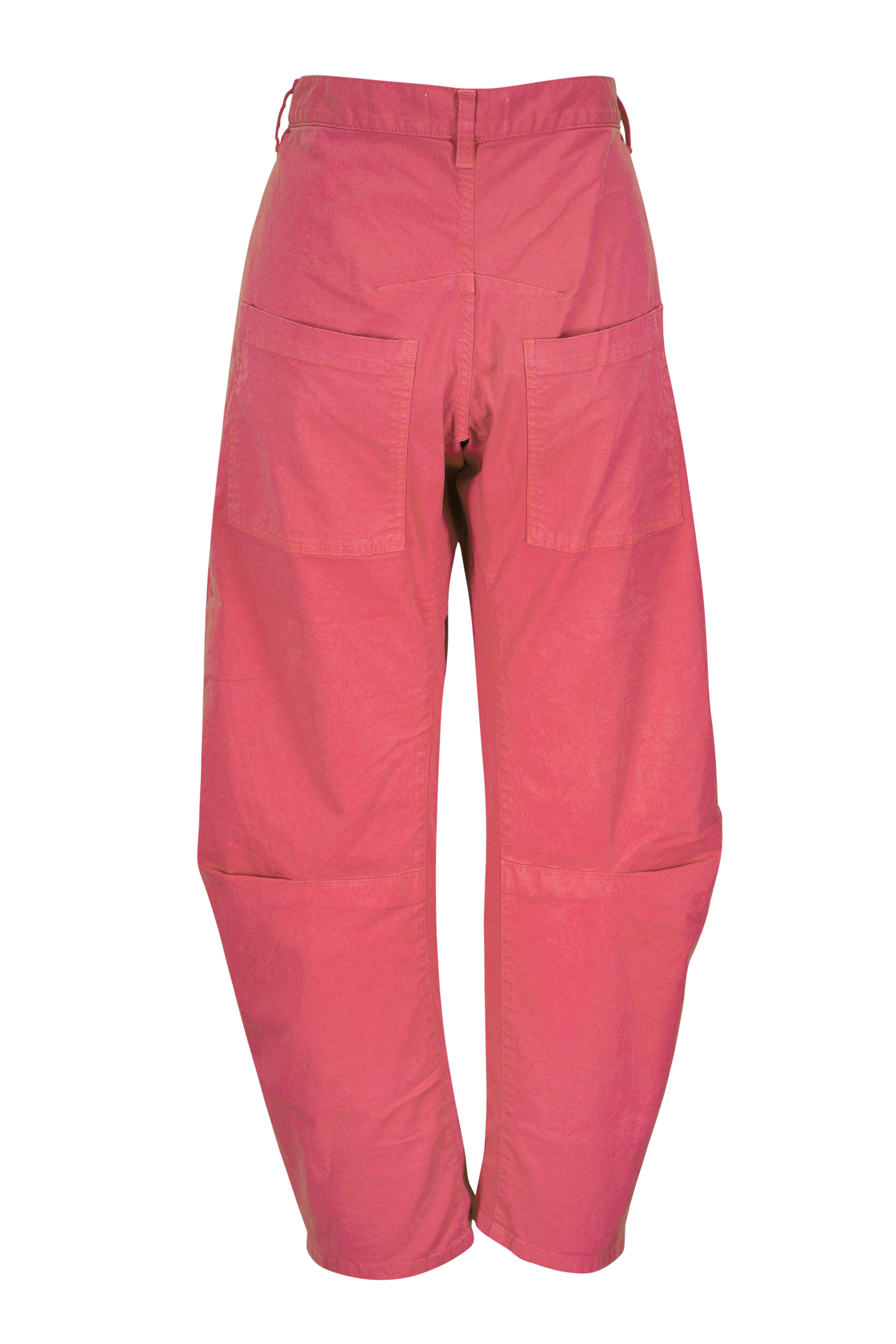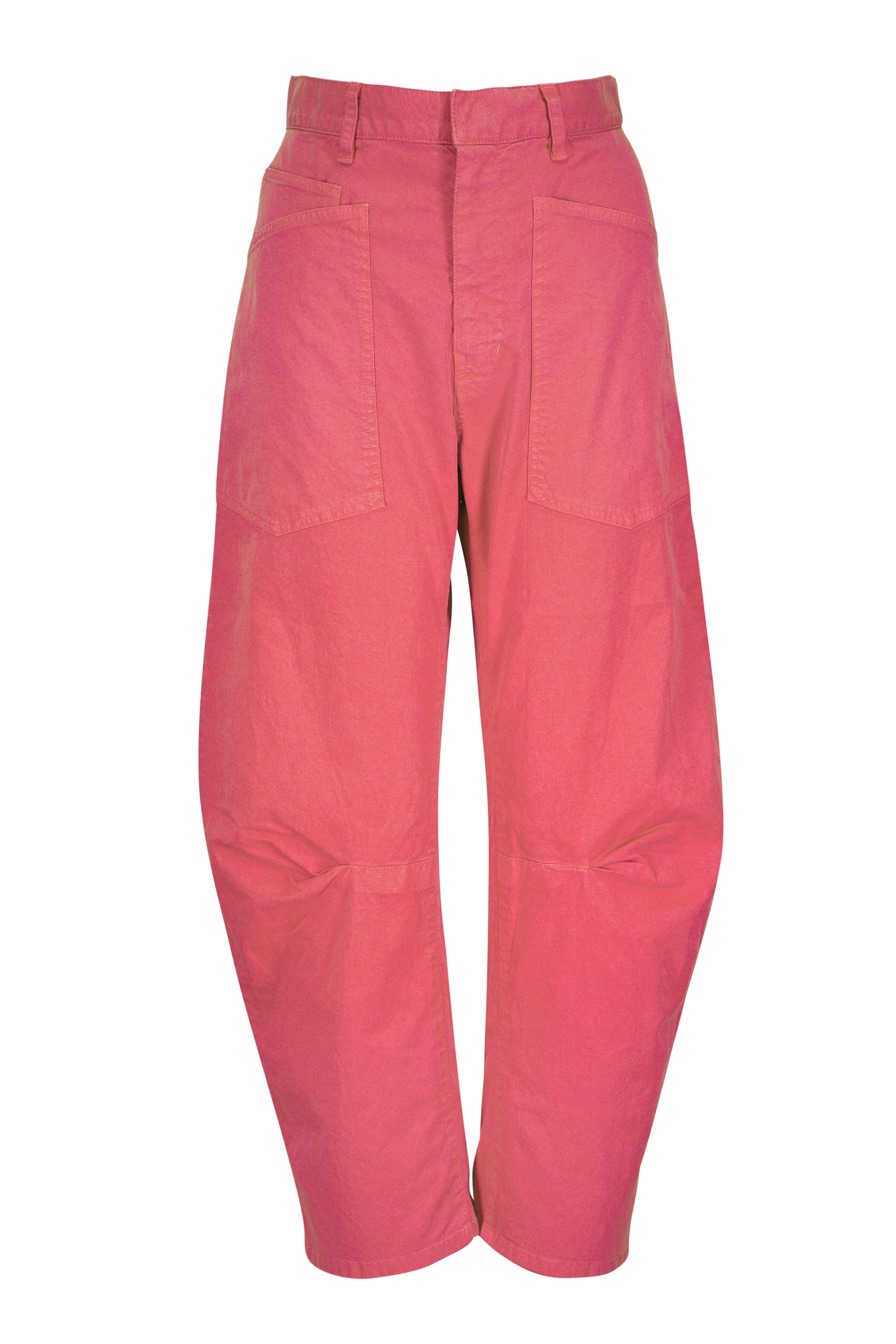 Zip fly; hook-and-button closure. Banded waist; belt loops. Front patch pockets; back patch pockets. Seam detail at knees. Gusset at inseam. Made in the USA. 26" Inseam (size 2). High-rise. 98% cotton, 2% elastane. Machine wash.