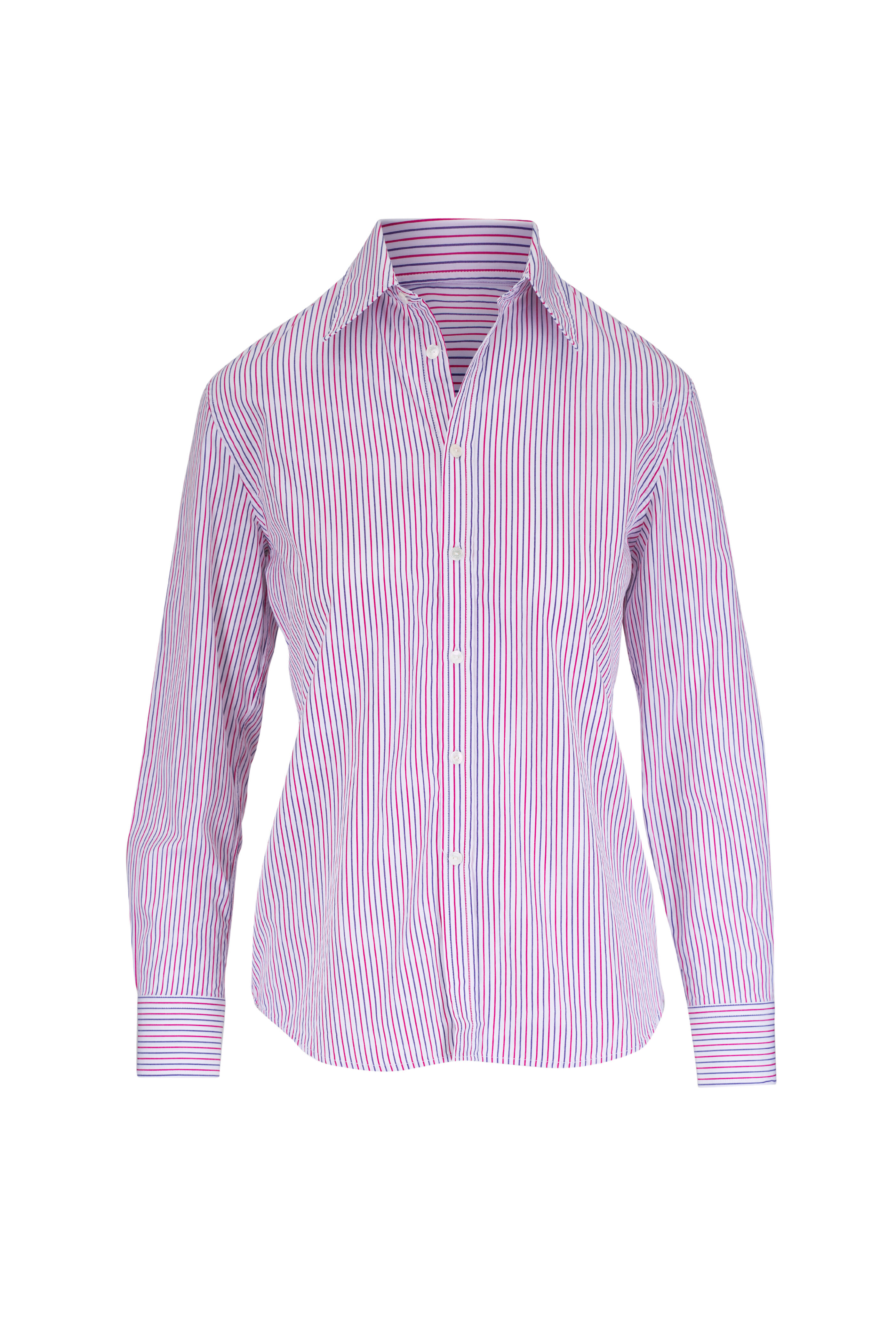 Raphael Striped Red & Blue Button Up Blouse