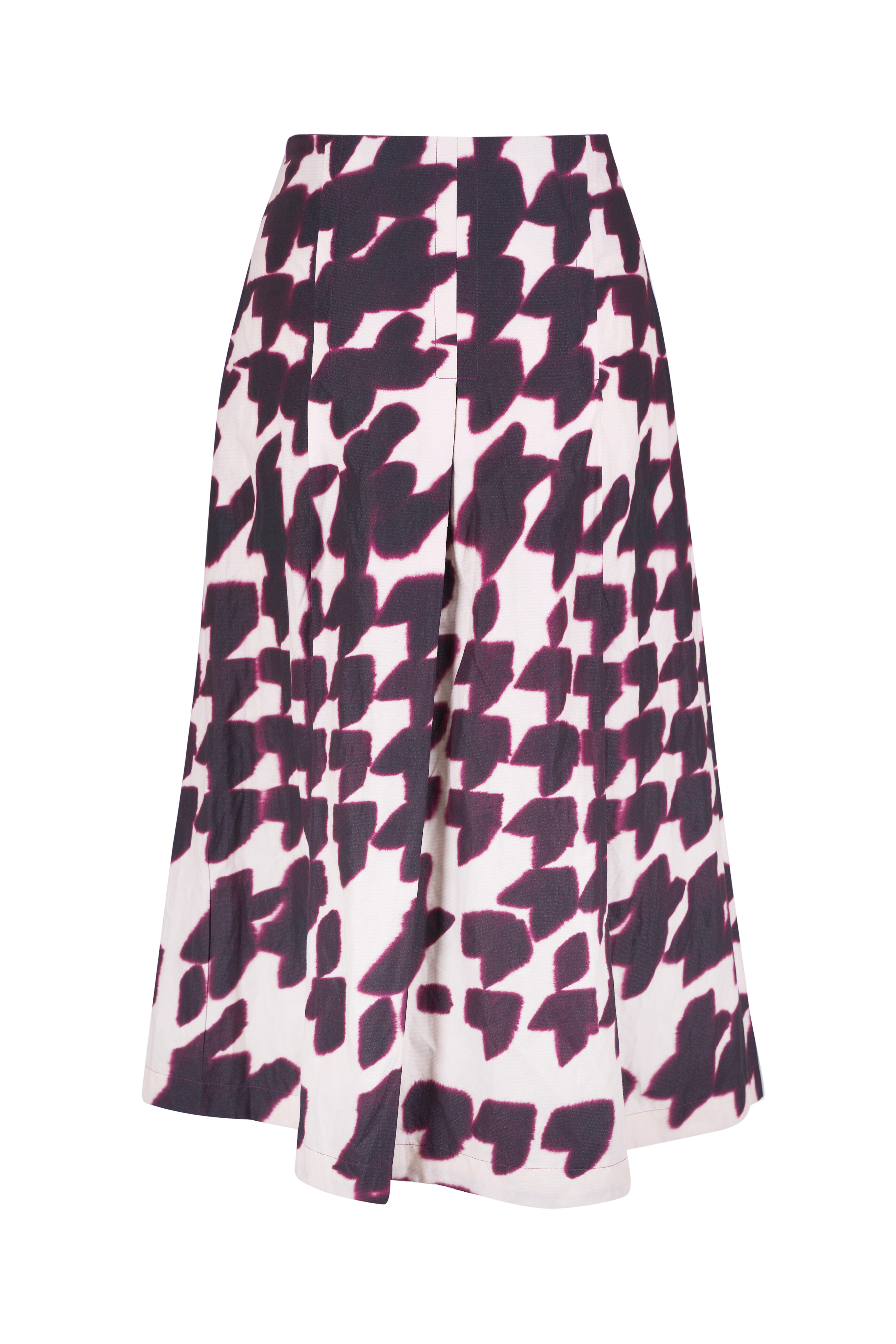 Burgundy Watercolor Houndstooth Pleated Midi Skirt