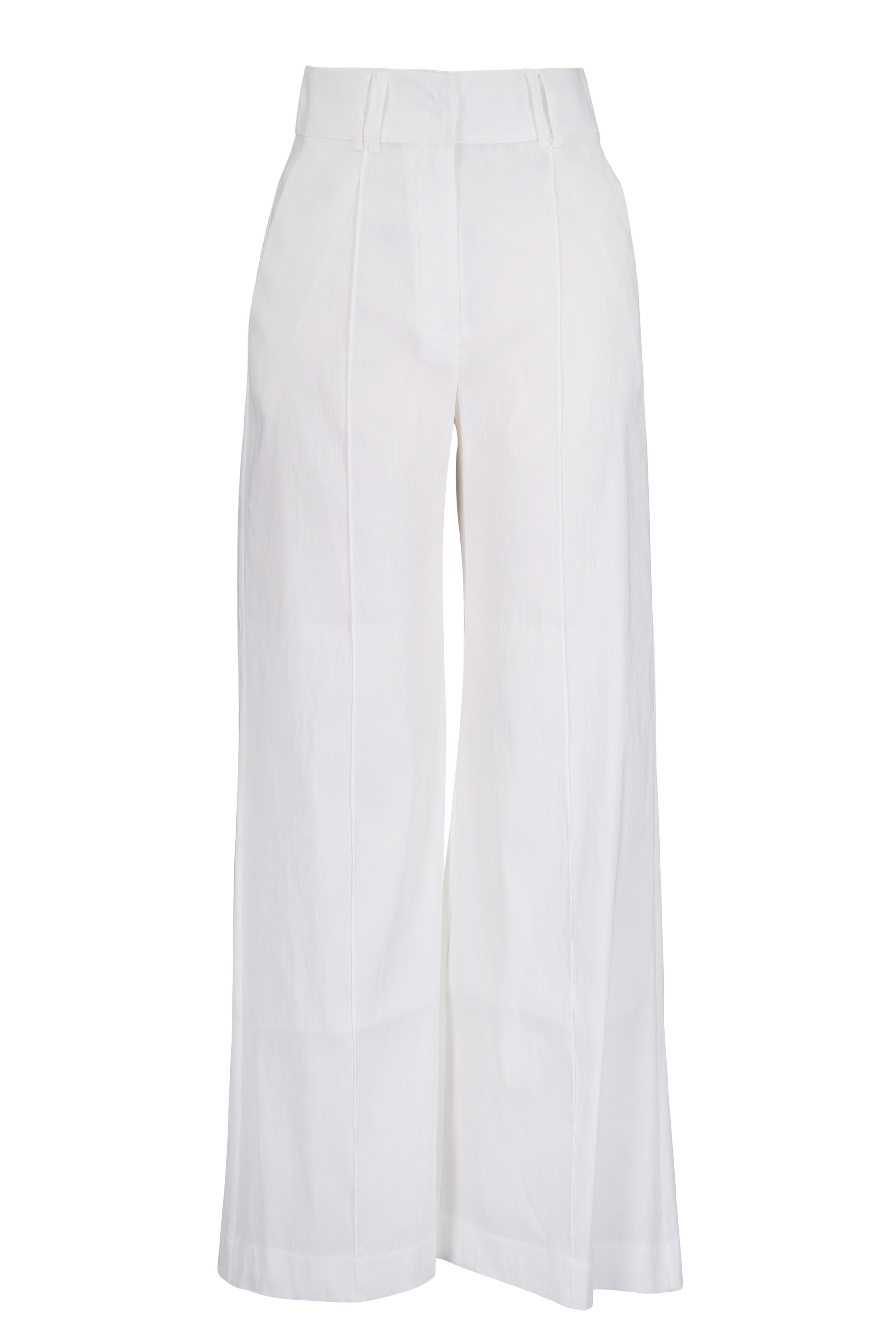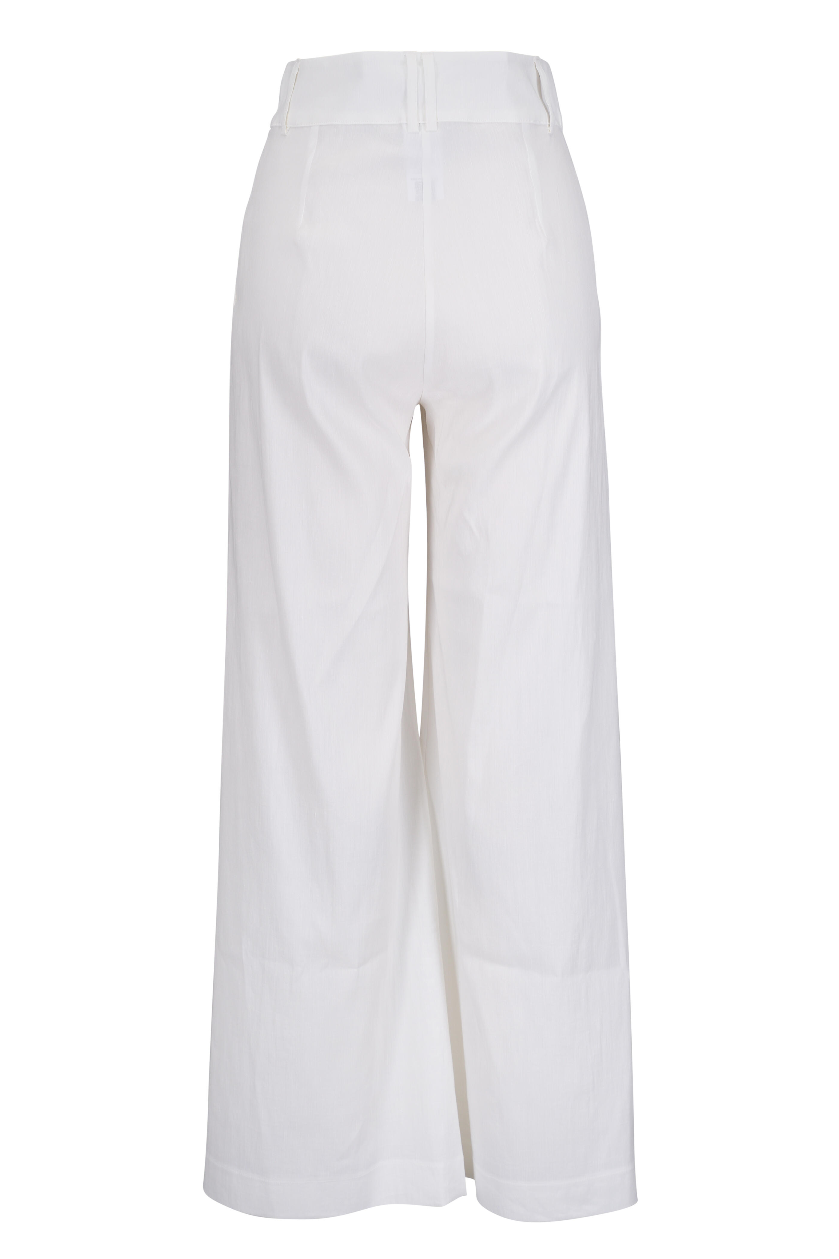 Front snap; zip fly. Belt loops. Front slip pockets. Made in Italy. 31.5" inseam. 69% linen, 31% elastane. Machine wash.