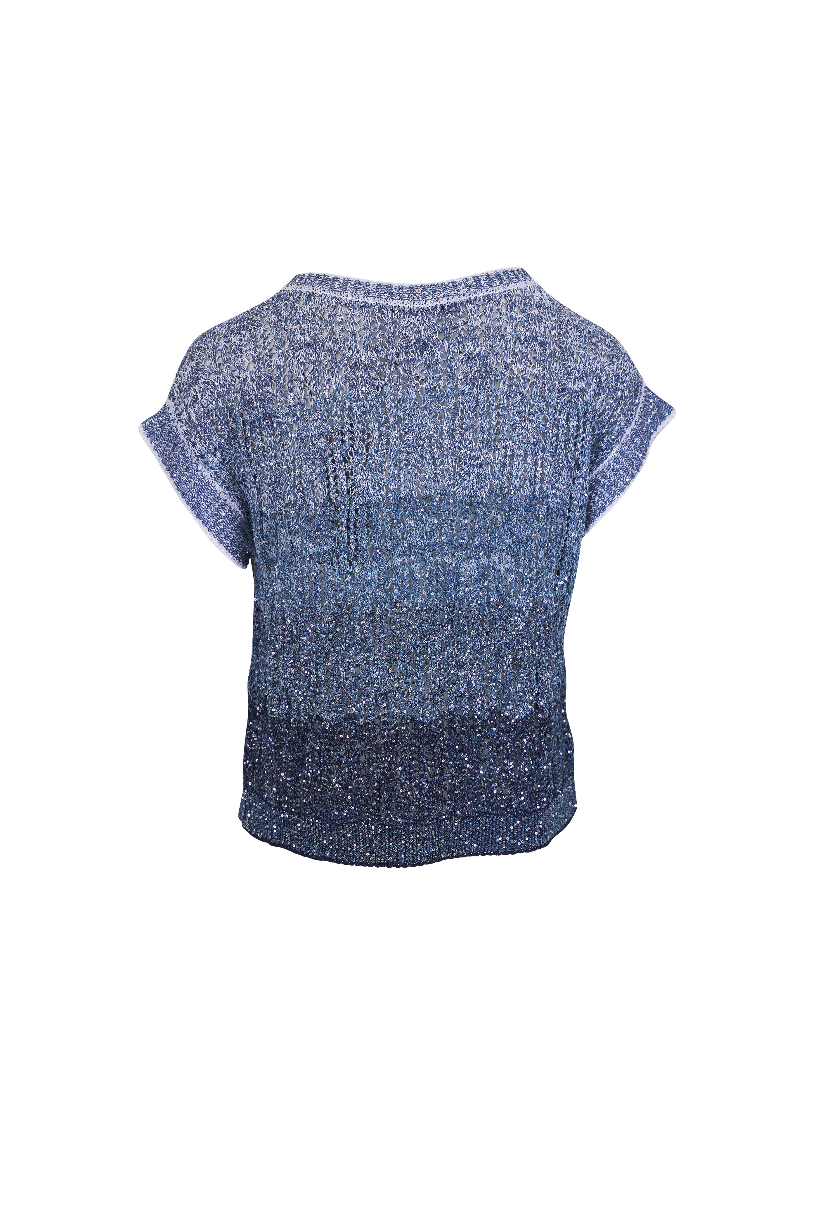 Crew neckline. Sequin embellishment throughout. Ribbed knit trim. Made in Italy. Approx. 20 ½" shoulder to hem (measurements from size S). 40% polyamide, 35% cotton, 25% polyester. Dry clean.