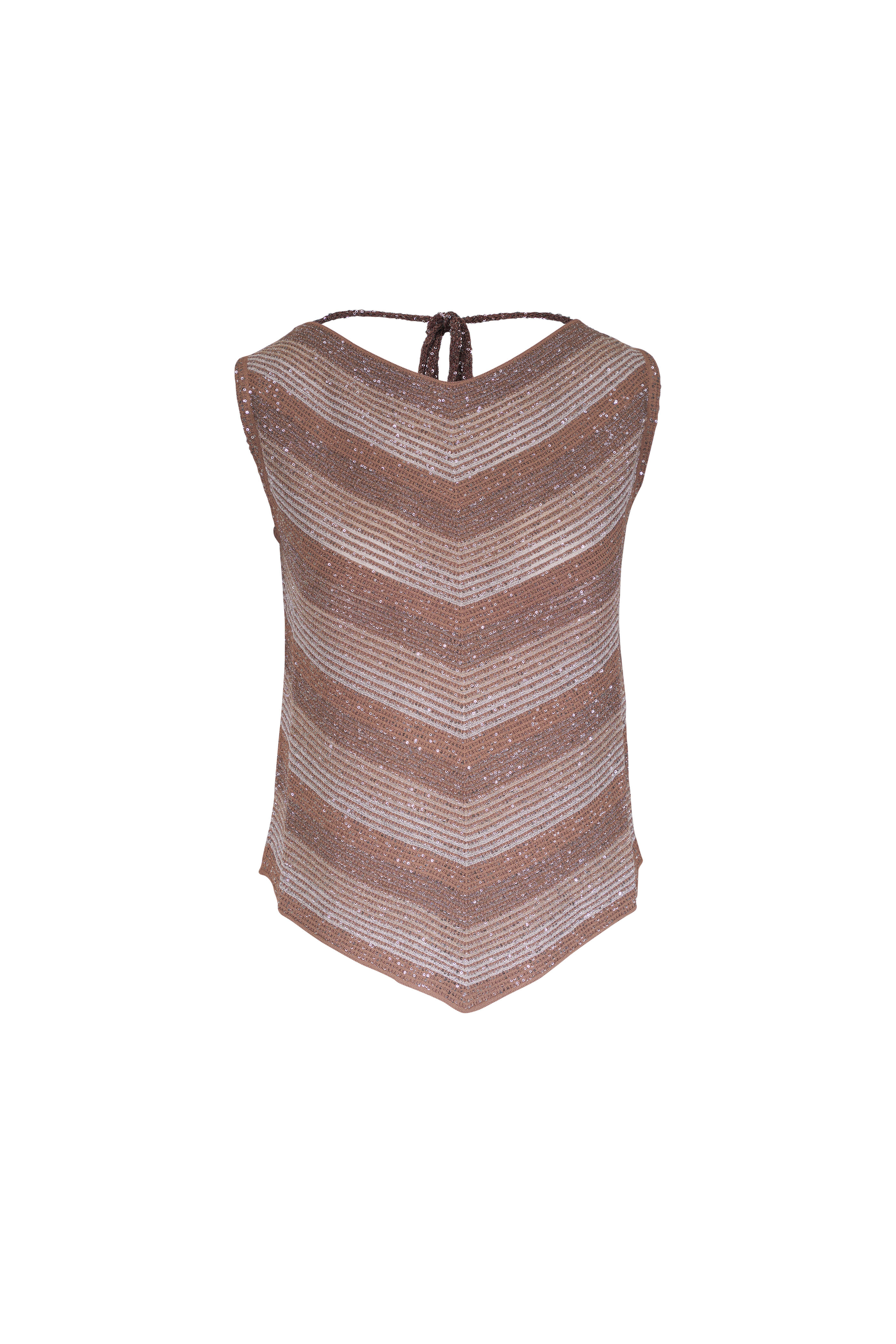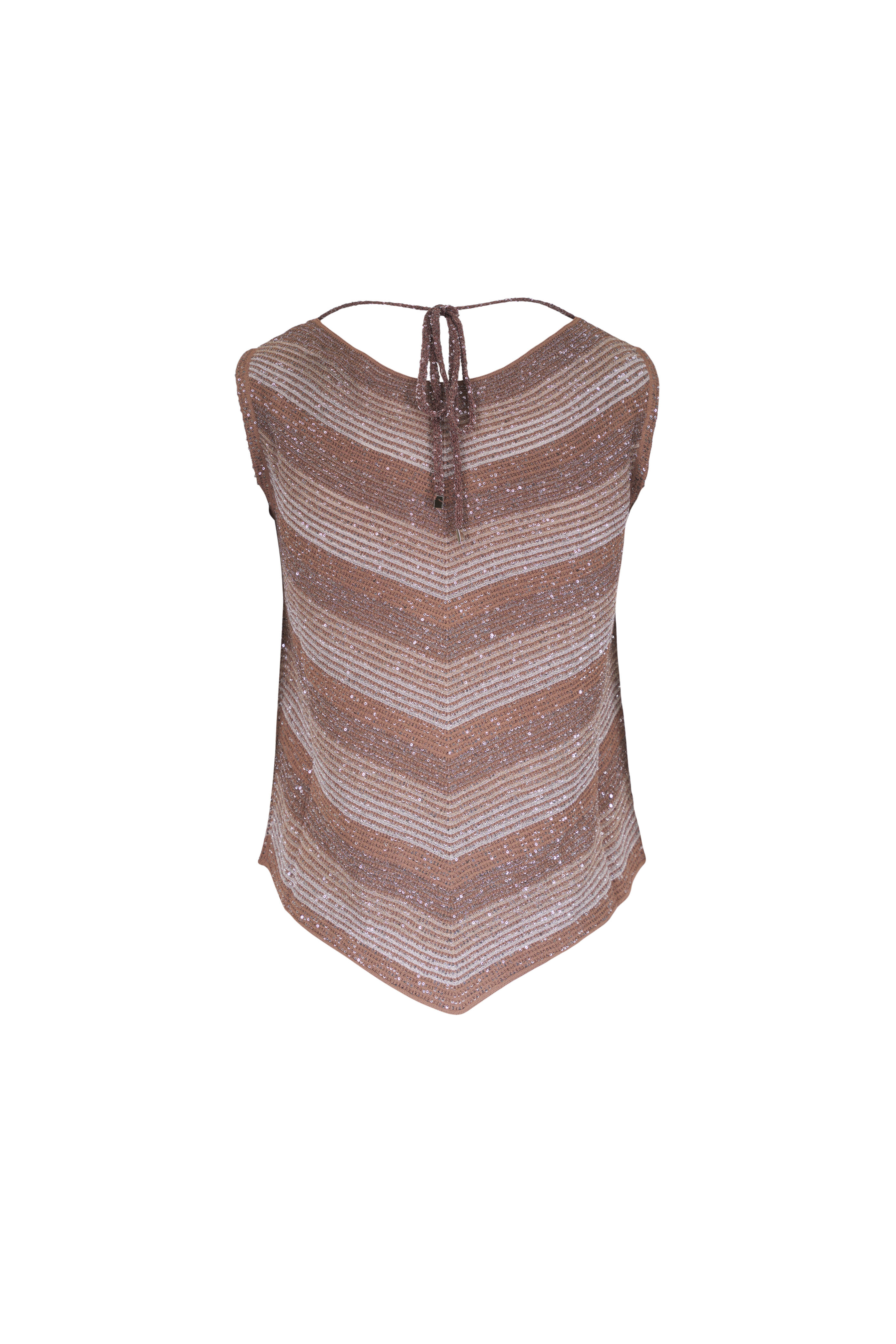 Slight v-neckline. Back self-tie. All over mini paillette details. Made in Italy. 55% viscose, 17% polyester, 24% polyamide, 4% metallized polyester. Hand wash.