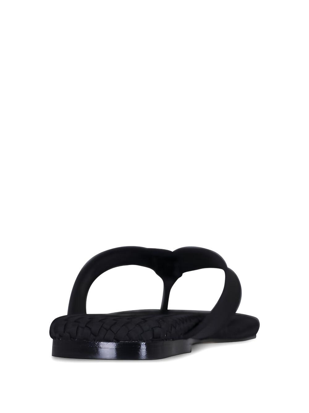 Handwoven neoprene. Open toe; thong strap. Slip on style. Handwoven neoprene insole. Natural buffed leather sole. Imported. True to size.