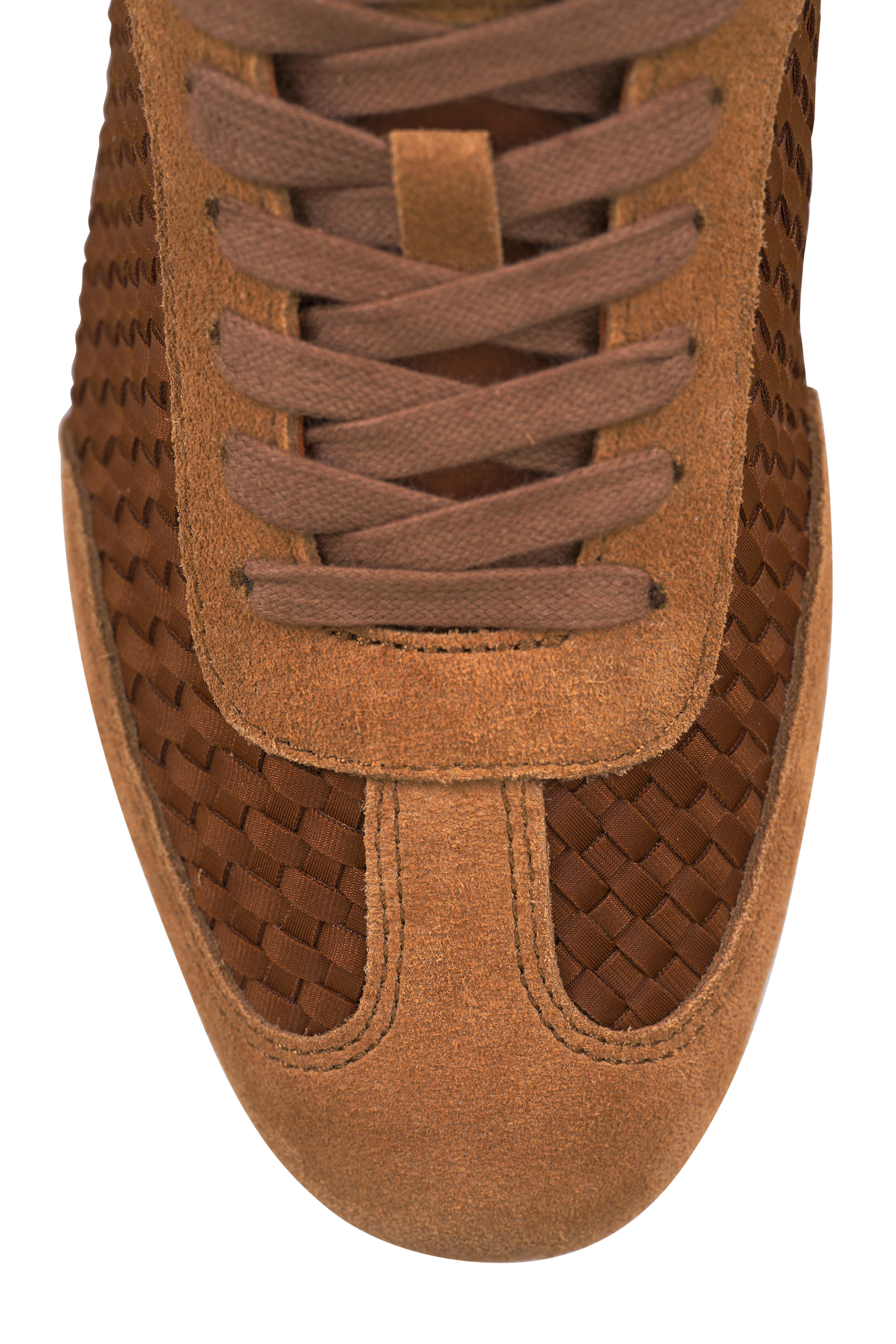 Handwoven neoprene and suede upper. Elongated almond toe. Lace up closure. Rubber sole. Imported. This style runs slightly narrow. We recommend sizing up one half size from your regular size.