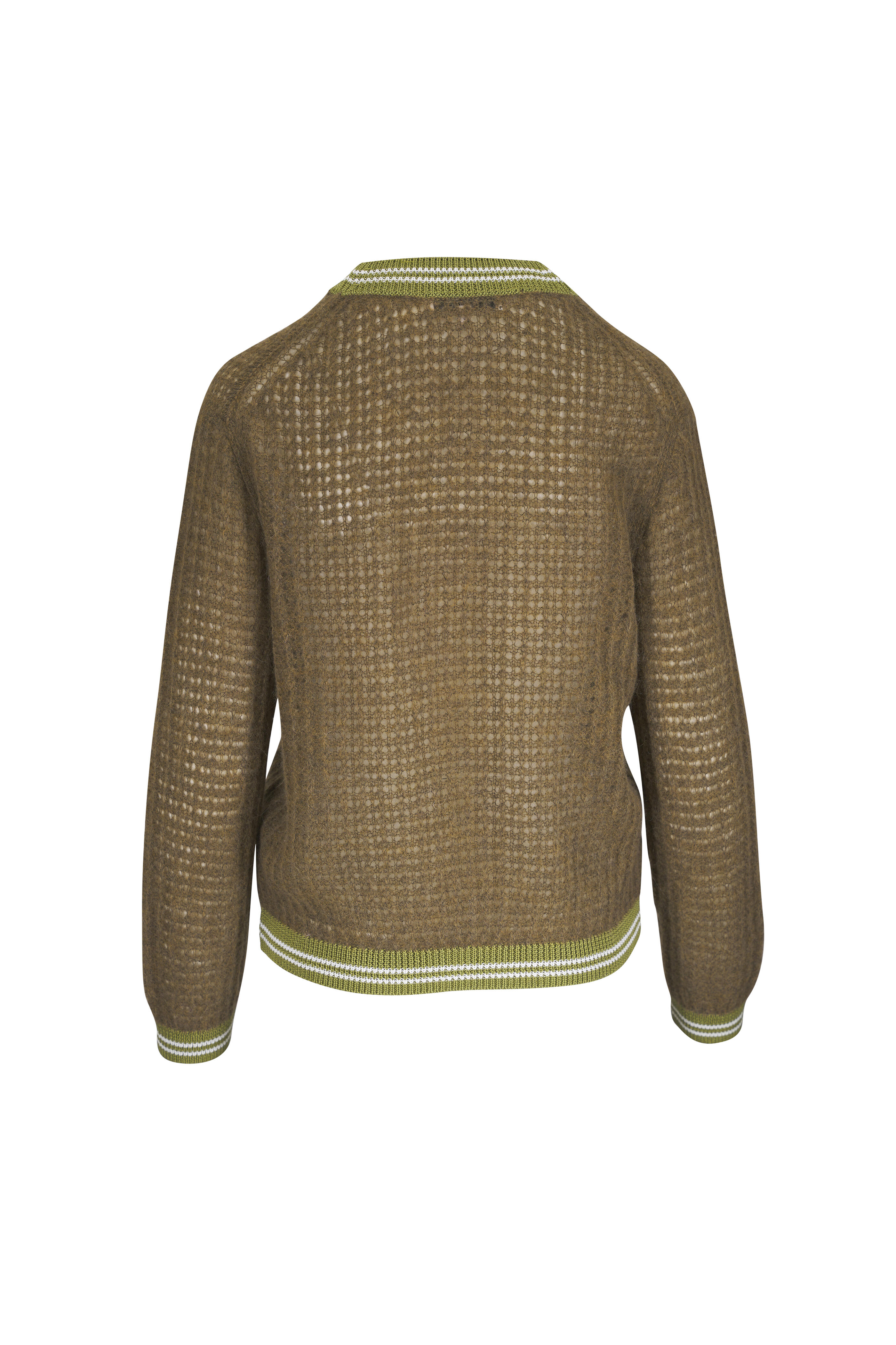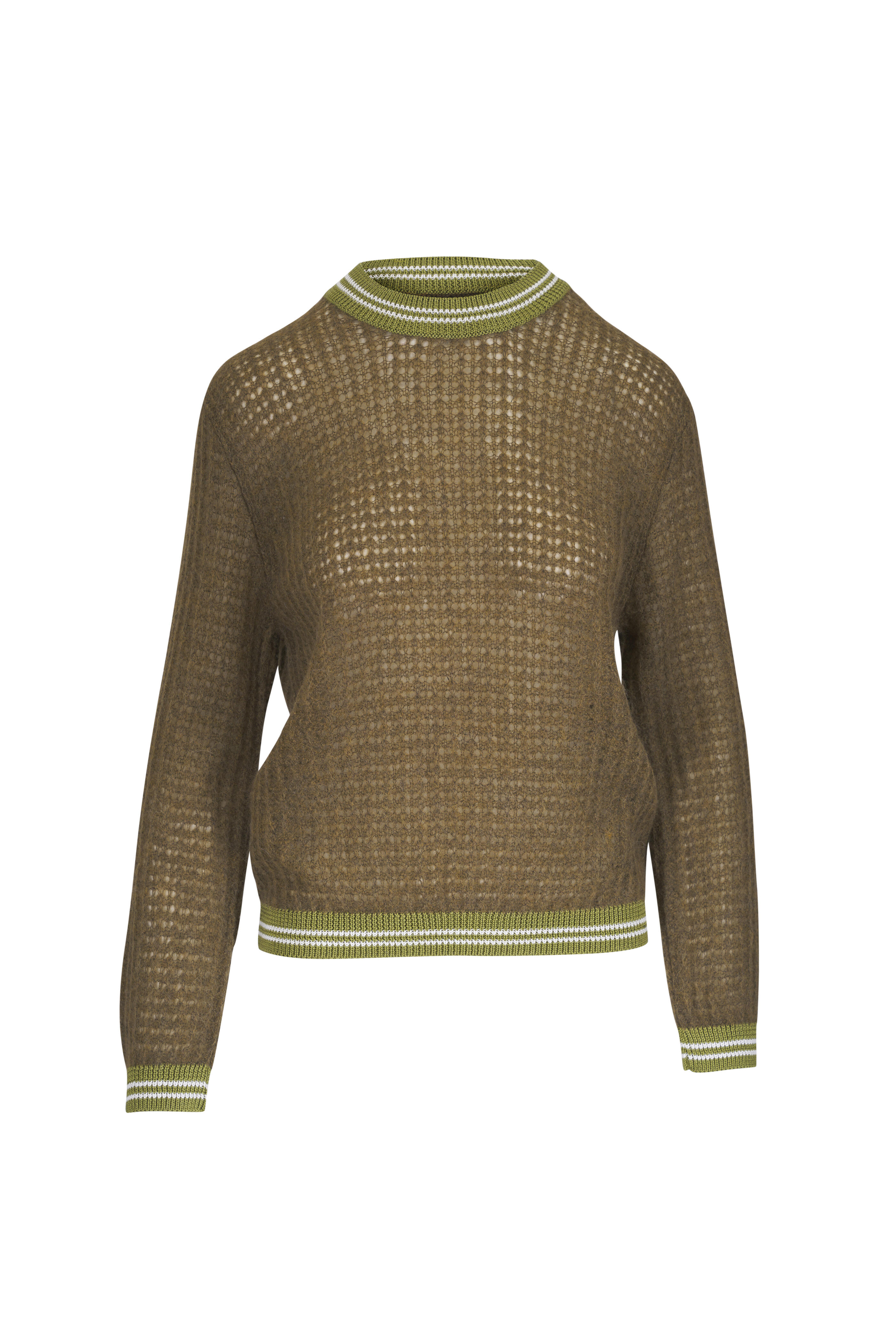Crew neckline. Ribbed knit trim. Imported. Approximately 24" shoulder to hem (measurements taken from size XS)). 50% alpaca, 28% polyamide, 22% wool; contrasting fabric: 100% cotton. Machine wash.