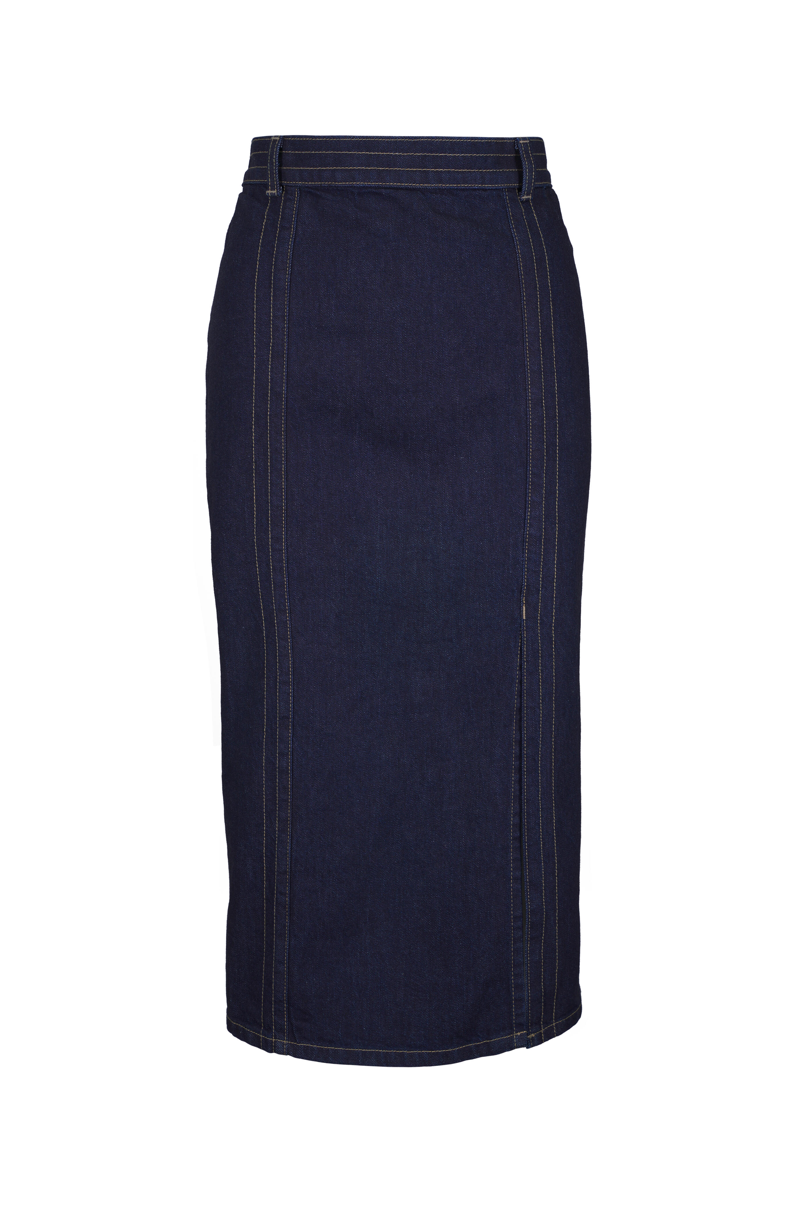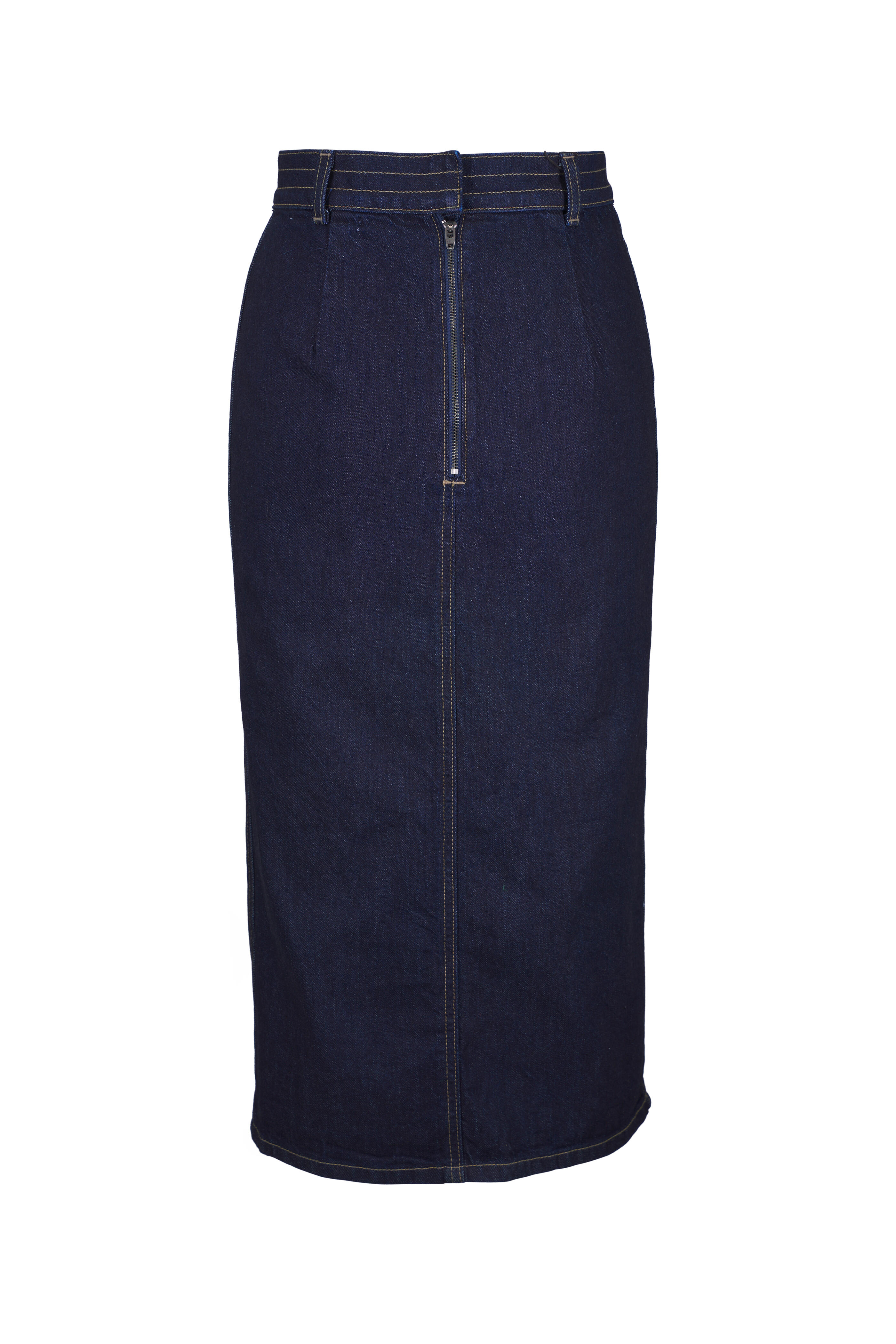 Banded waist; belt loops. Front slit. Made in USA. 31" shoulder to hem. 100% cotton. Machine wash.