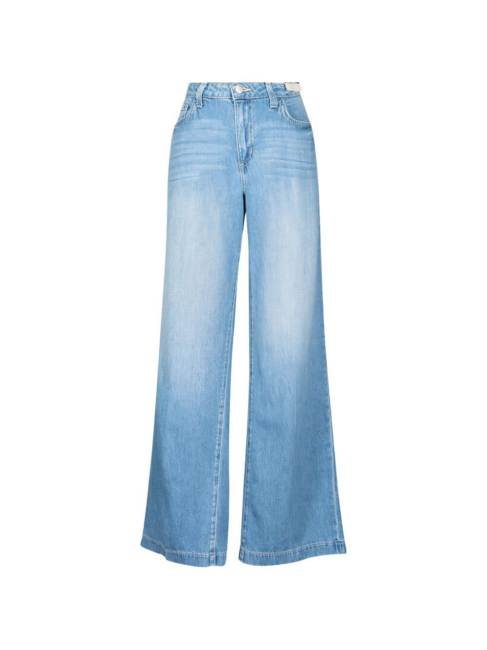 Zip-fly and button closure. High rise. Wide leg. 5 pocket design. Imported. Rise: 10". Inseam: 32". Leg Opening: 20". 79% cotton, 20% polyester, 1% spandex. Machine wash.