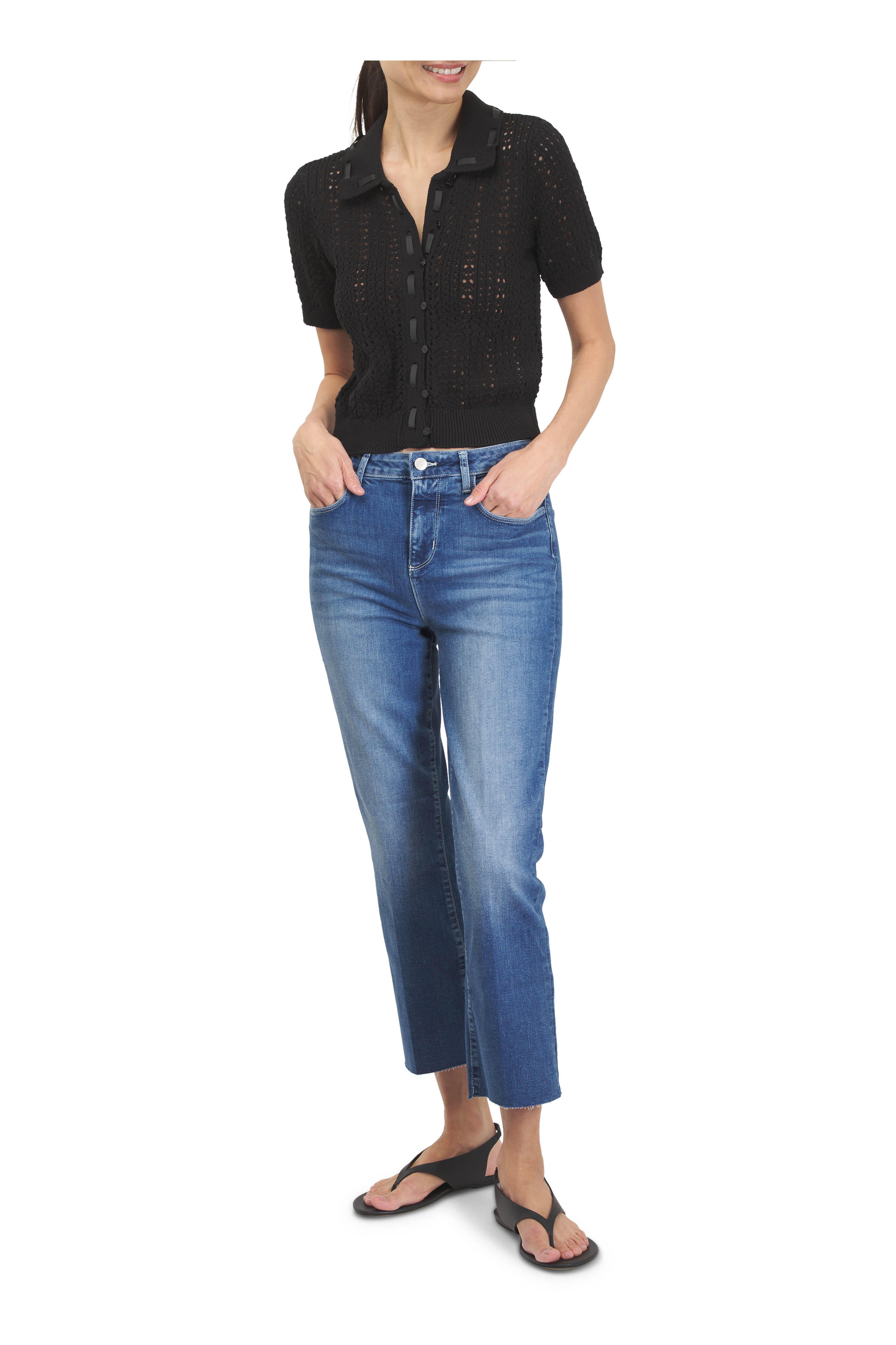 Zip fly; button closure. Belt loops. Five pocket styling. Super stretch fabrication. Imported. Color: Medina. Rise: 9.5". Inseam: 26". Leg Opening: 17". (Size 25). 73% cotton, 25% repreve polyester, 2% spandex. Machine wash.