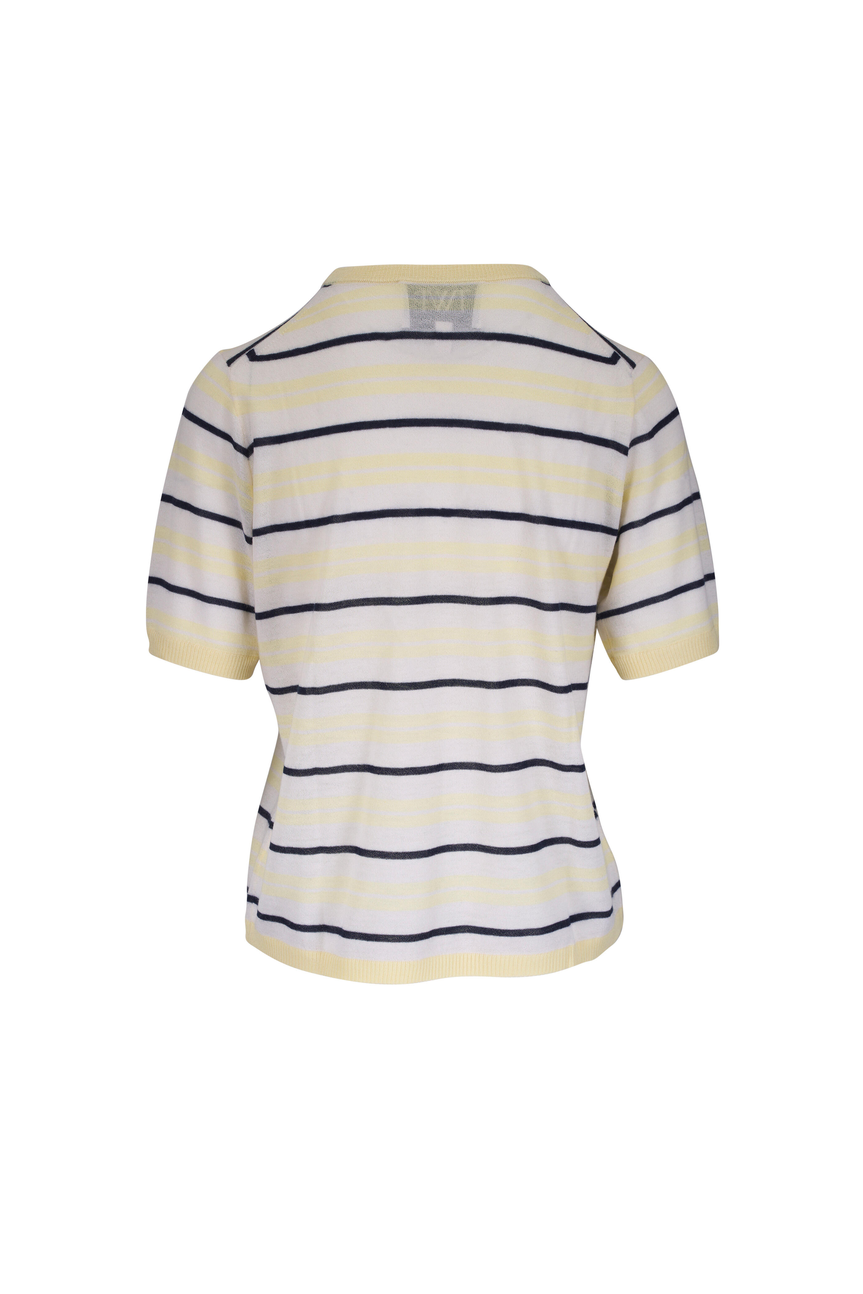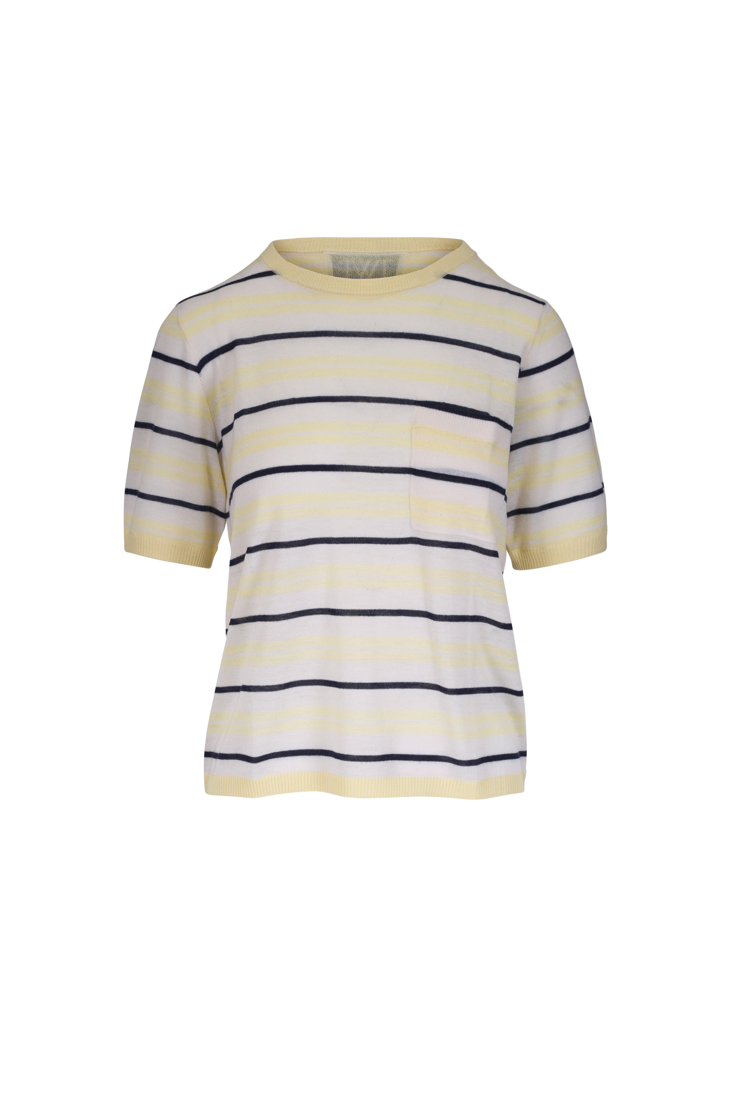 Crew neckline. Chest patch pocket. Ribbed knit trim. Imported. Approximately 22 ½" shoulder to hem (measurements taken from size XS). 100% cashmere. Dry clean.