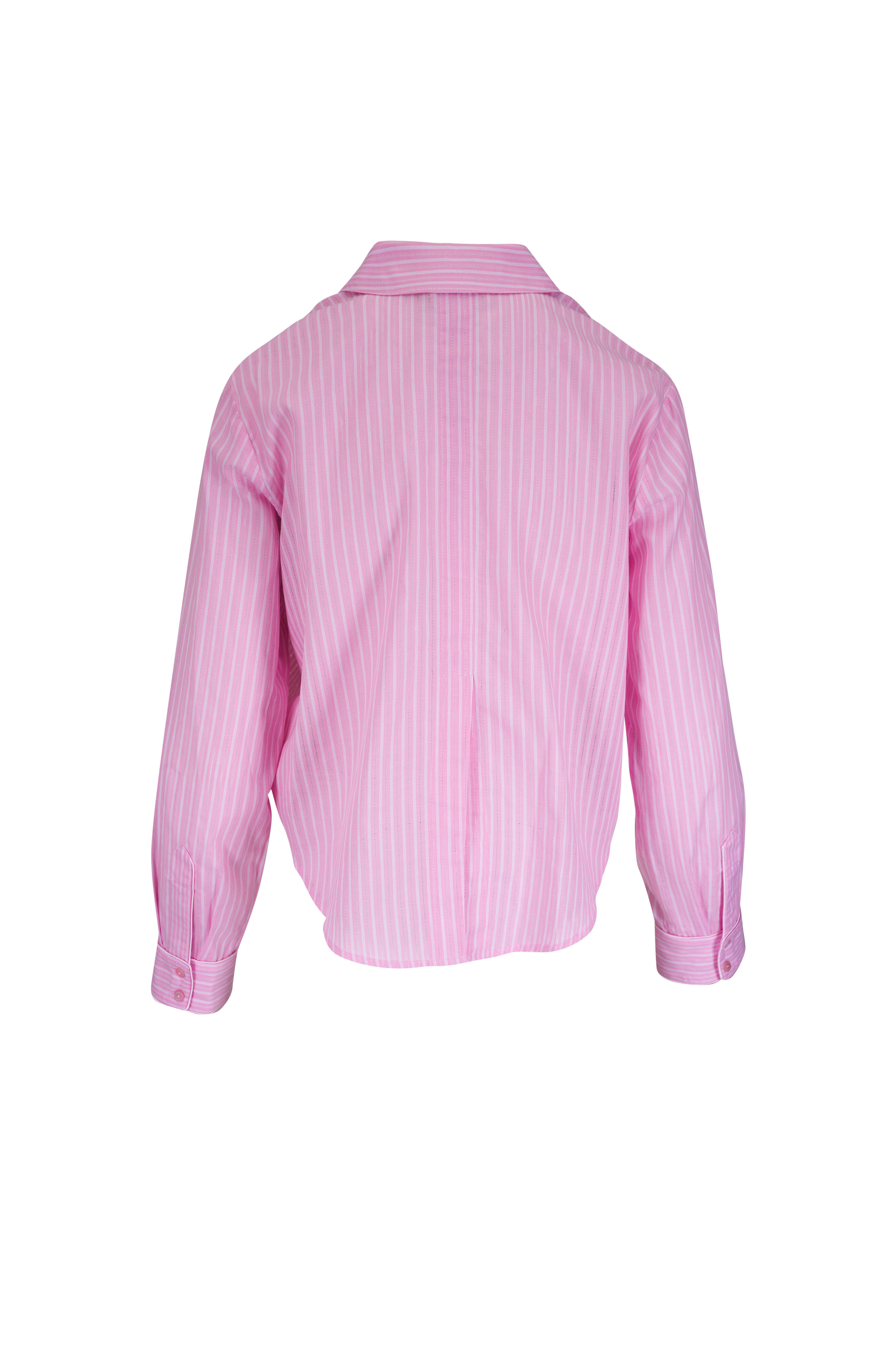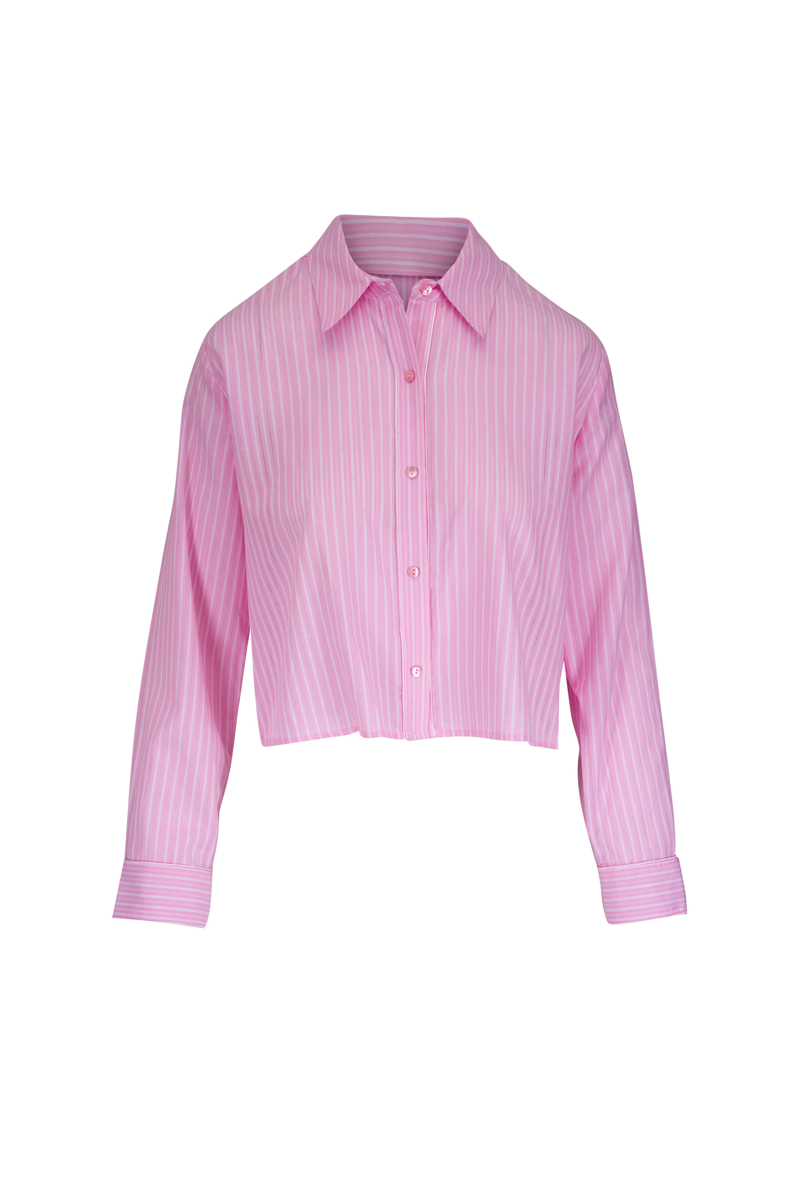 Striped jacquard poplin. High-low hem. Button closures. Cropped. Imported. Fits true to size.. 100% Cotton. Machine wash.