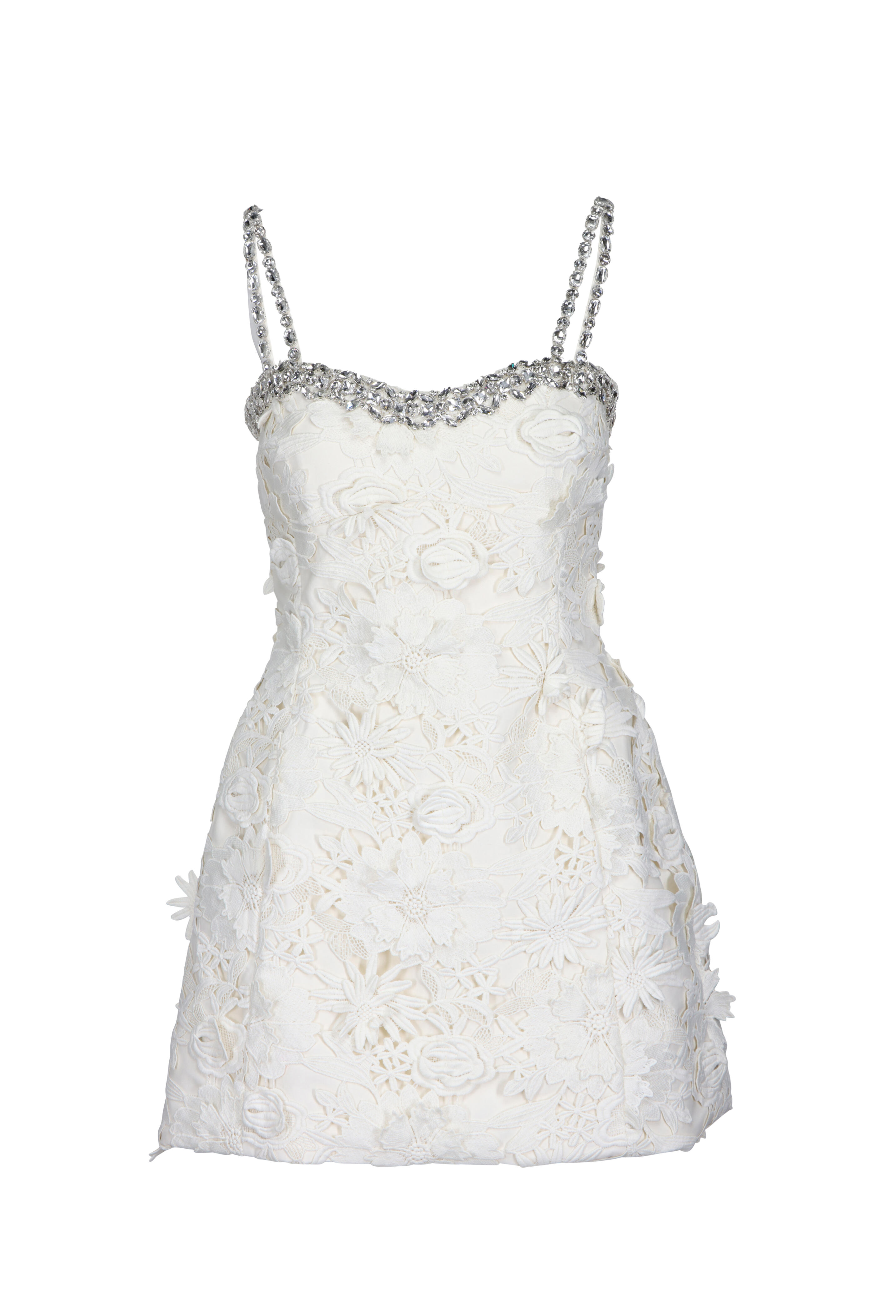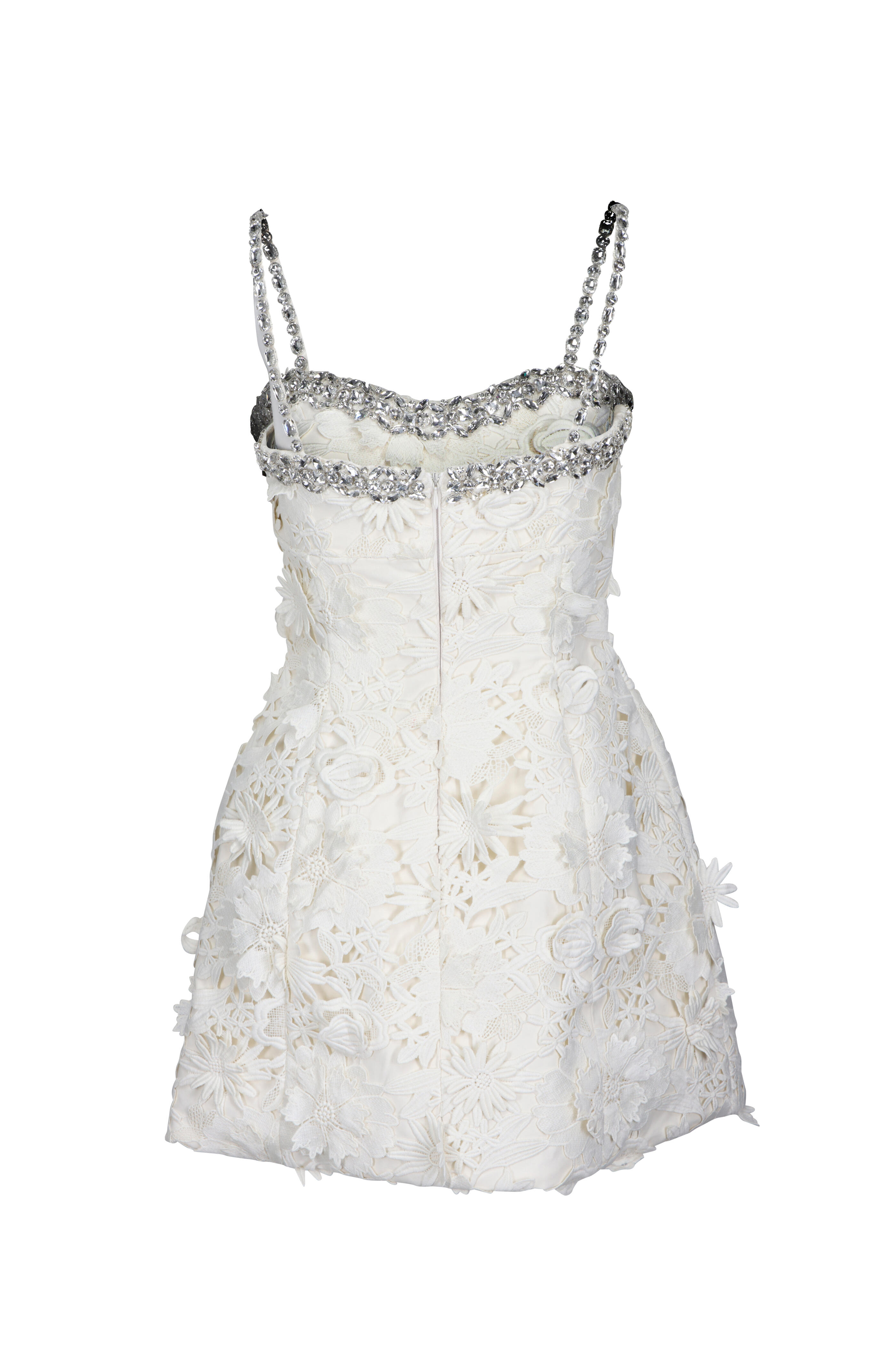 Sweetheart embellished neckline. Embellished straps. Invisible back zip closure. 3D handcrafted floral detailing. Imported. Fits true to size.. 100% Polyester. Dry clean.