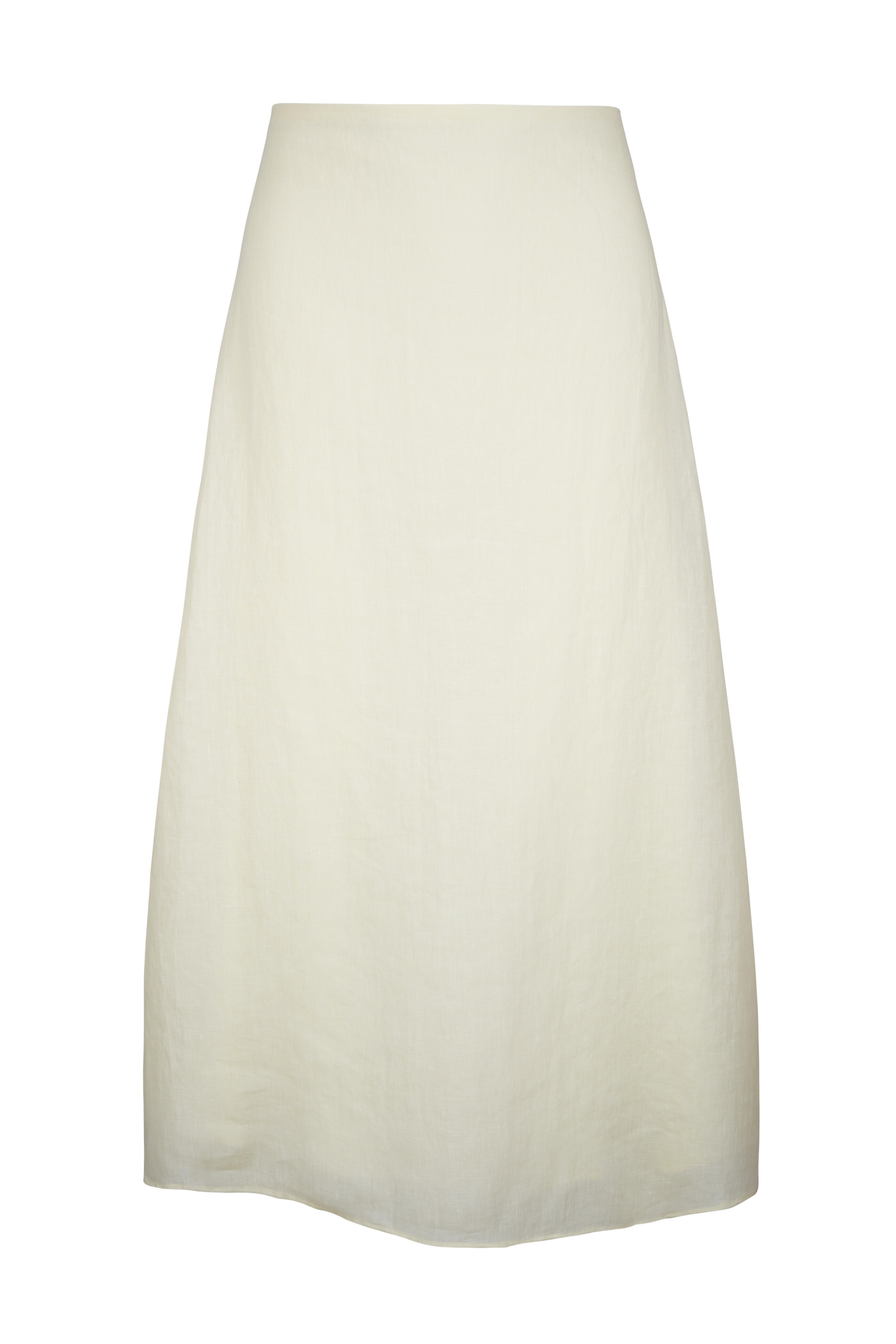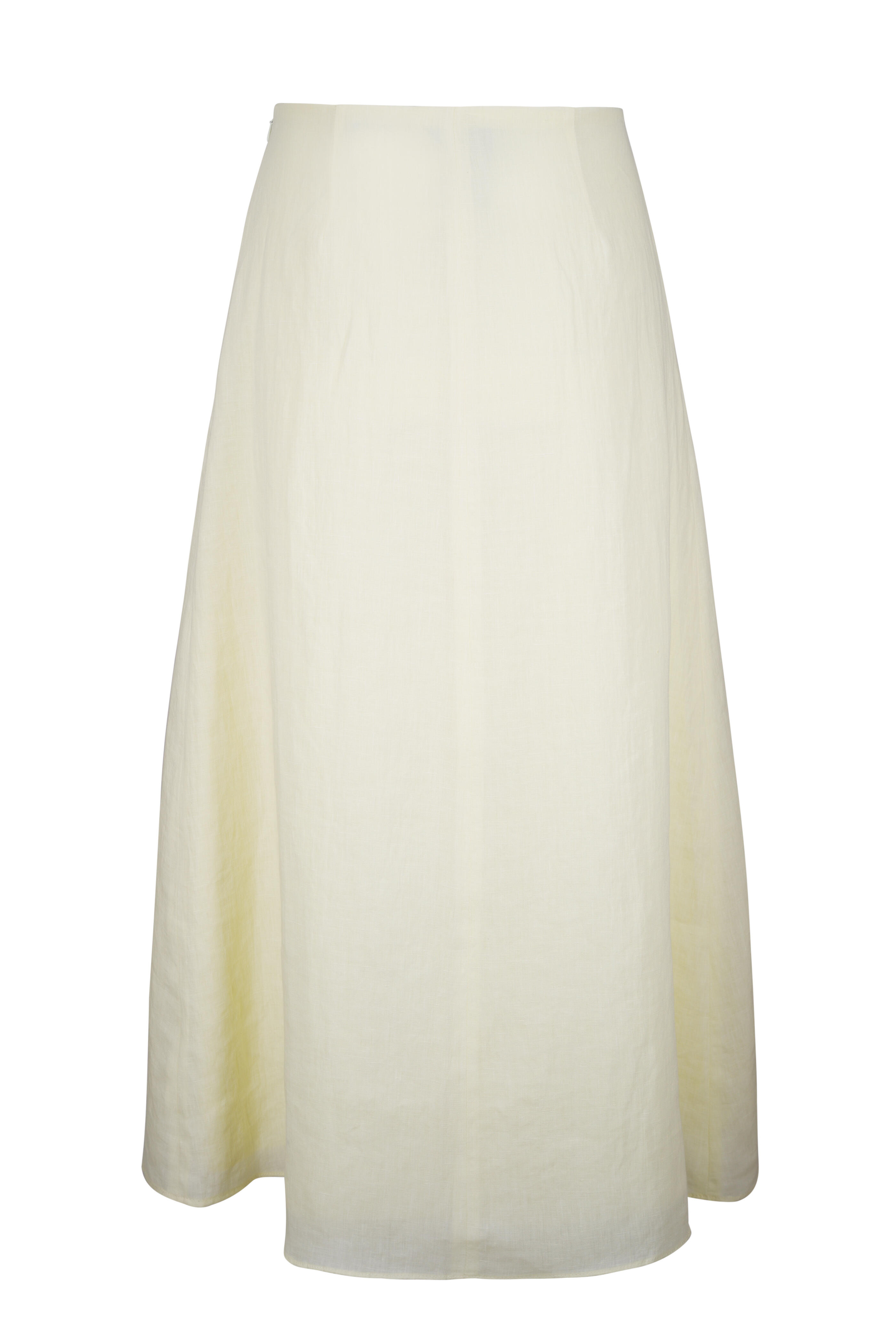 Banded waist. Concealed side zip. Made in USA. 35" length. 100% linen; lined. Dry clean.