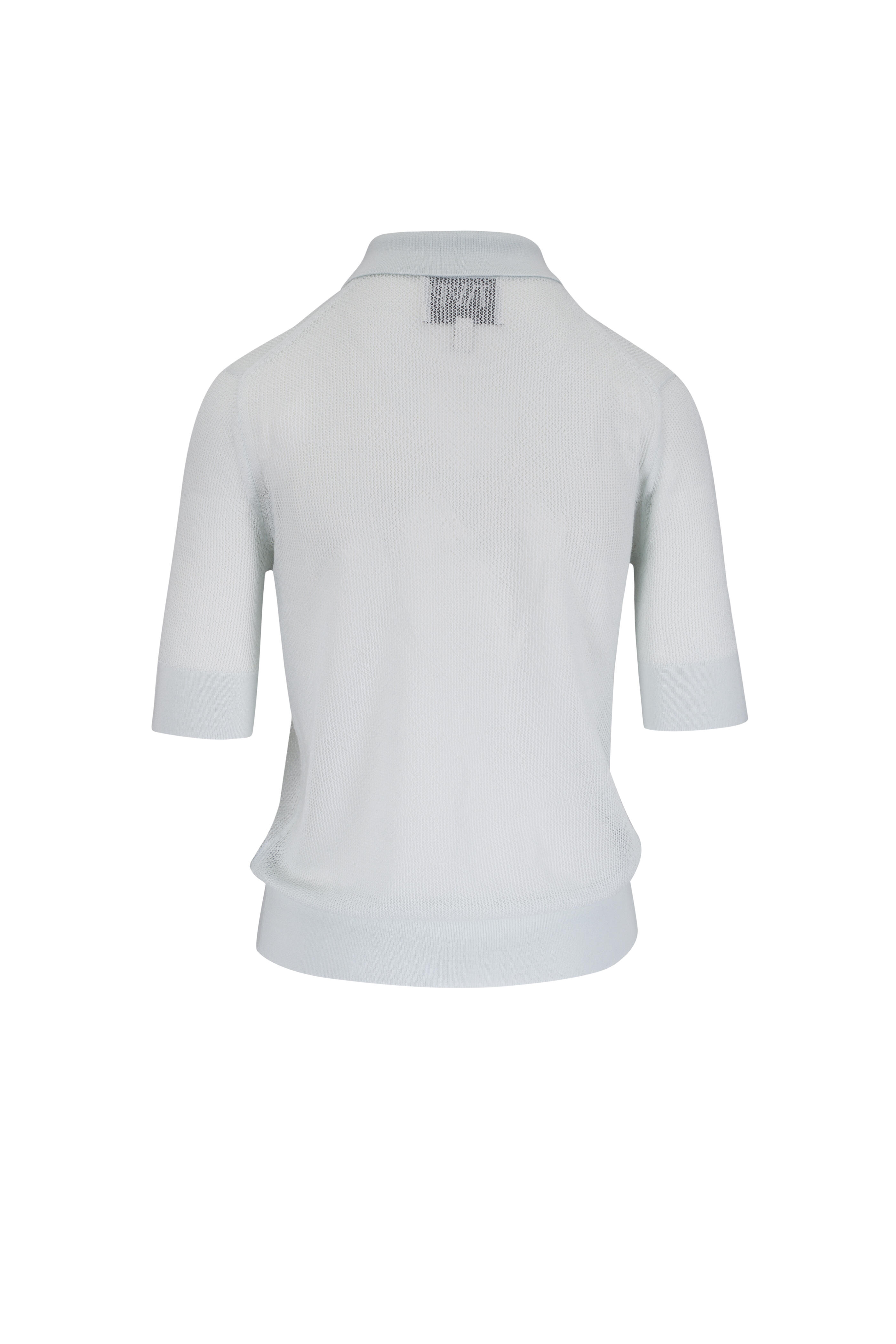 Spread collar. Five button placket. Ribbed trims. Imported. 100% cashmere. Hand wash.