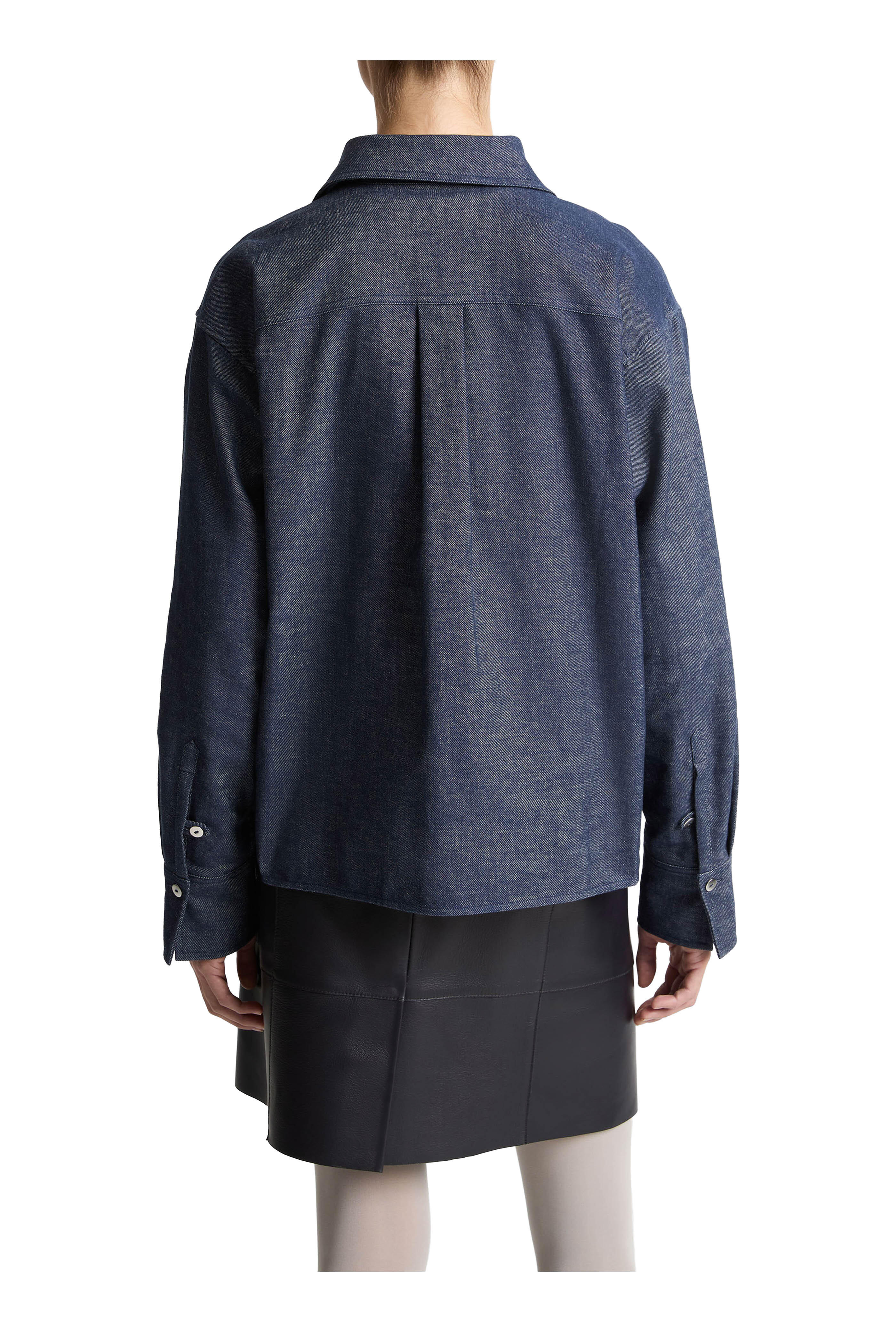 Spread collar. Front button placket. Patch chest pocket. Single-button barrel cuffs. Shoulder yoke and box pleat at back. Fabric from Italy. Approx. 23 ¼" shoulder to hem. 80% cotton, 20% linen. Dry clean.