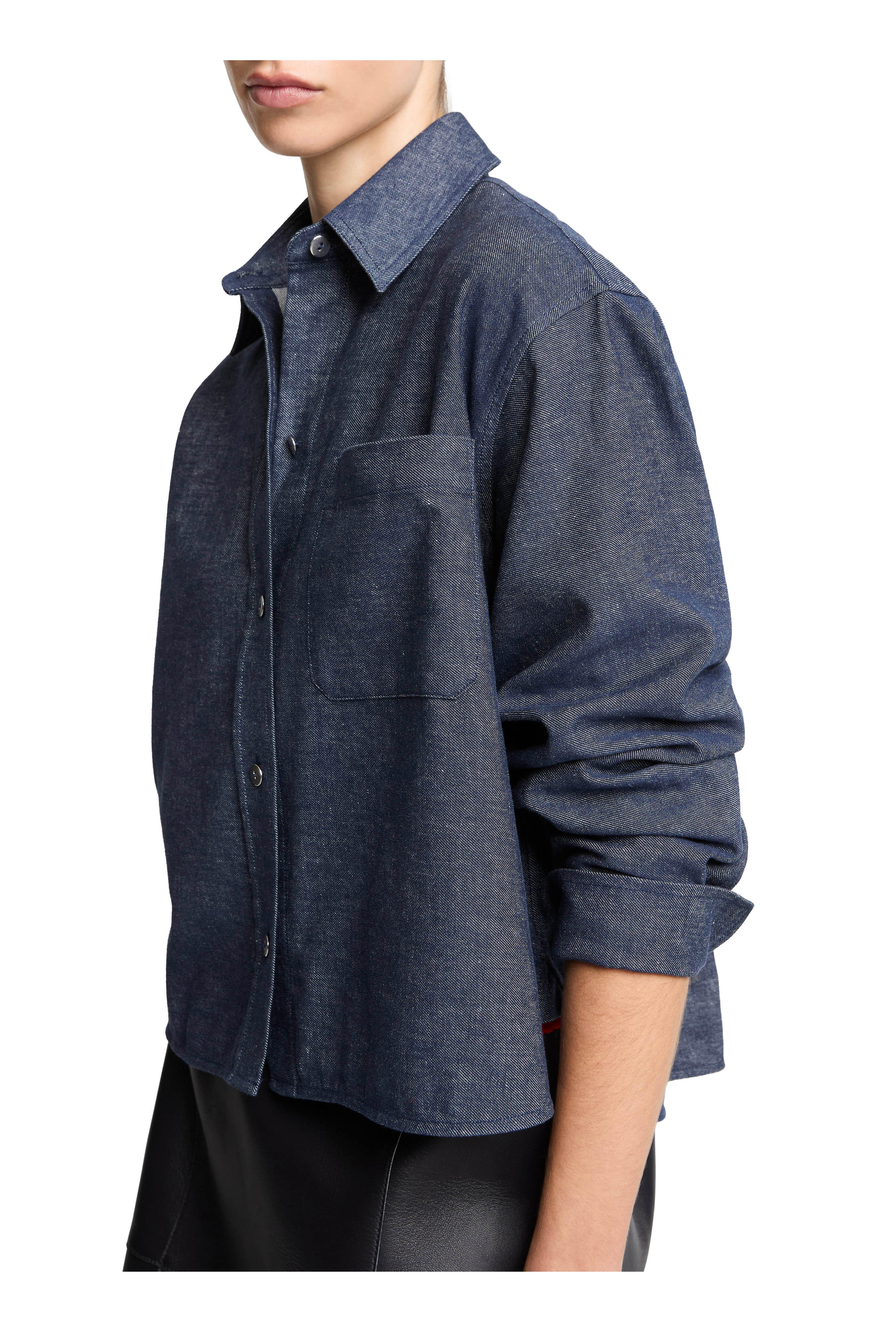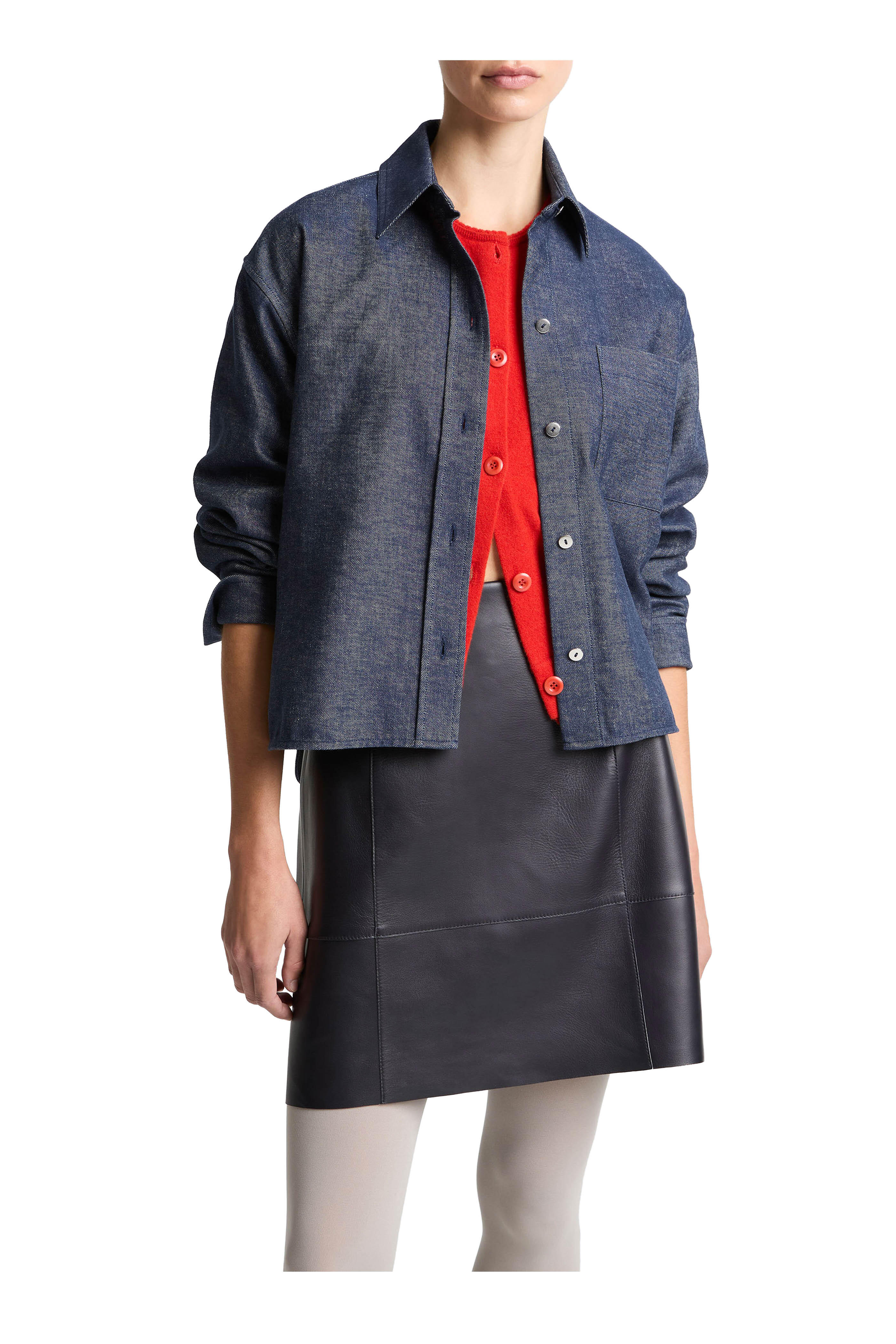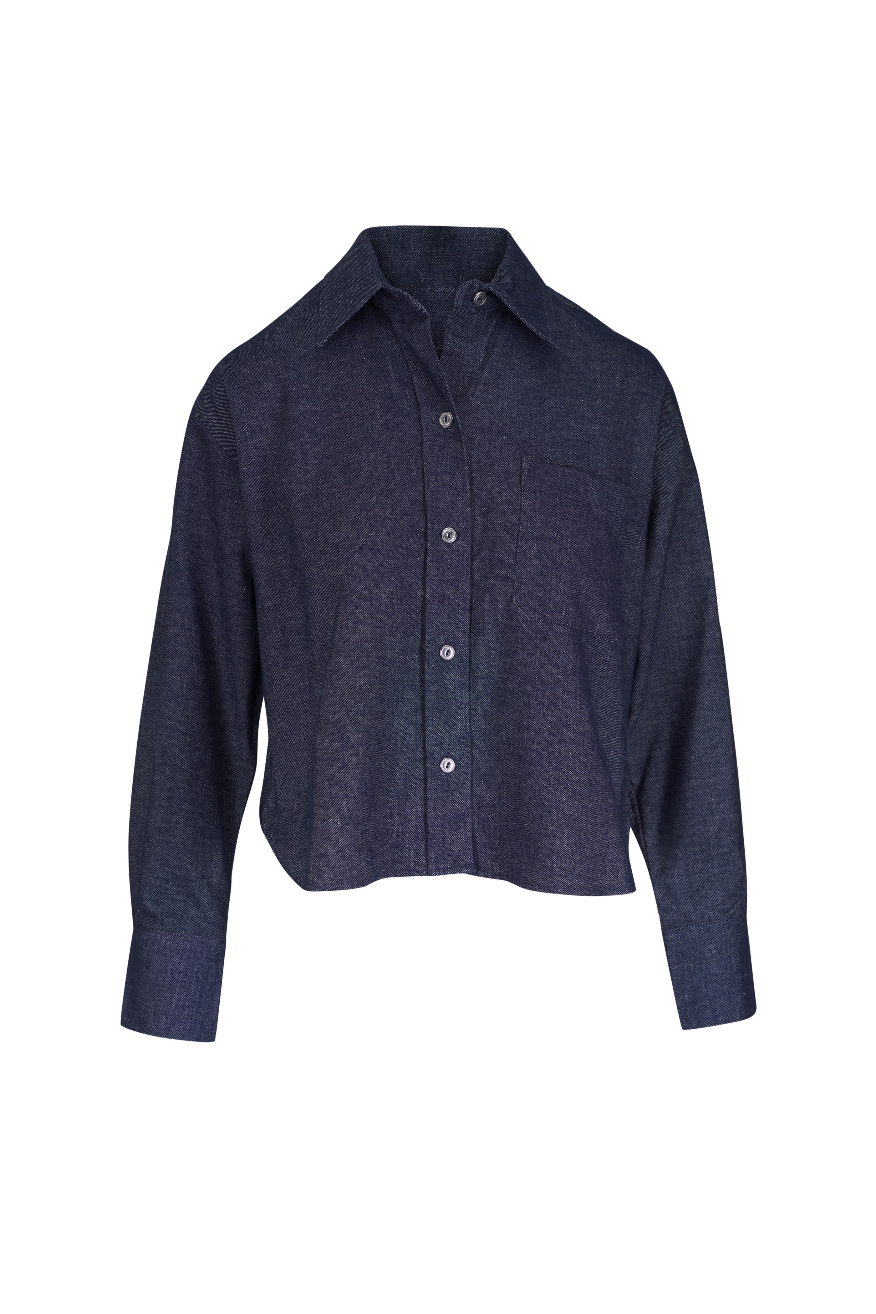 Indigo Chambray Crop Button Up Shirt