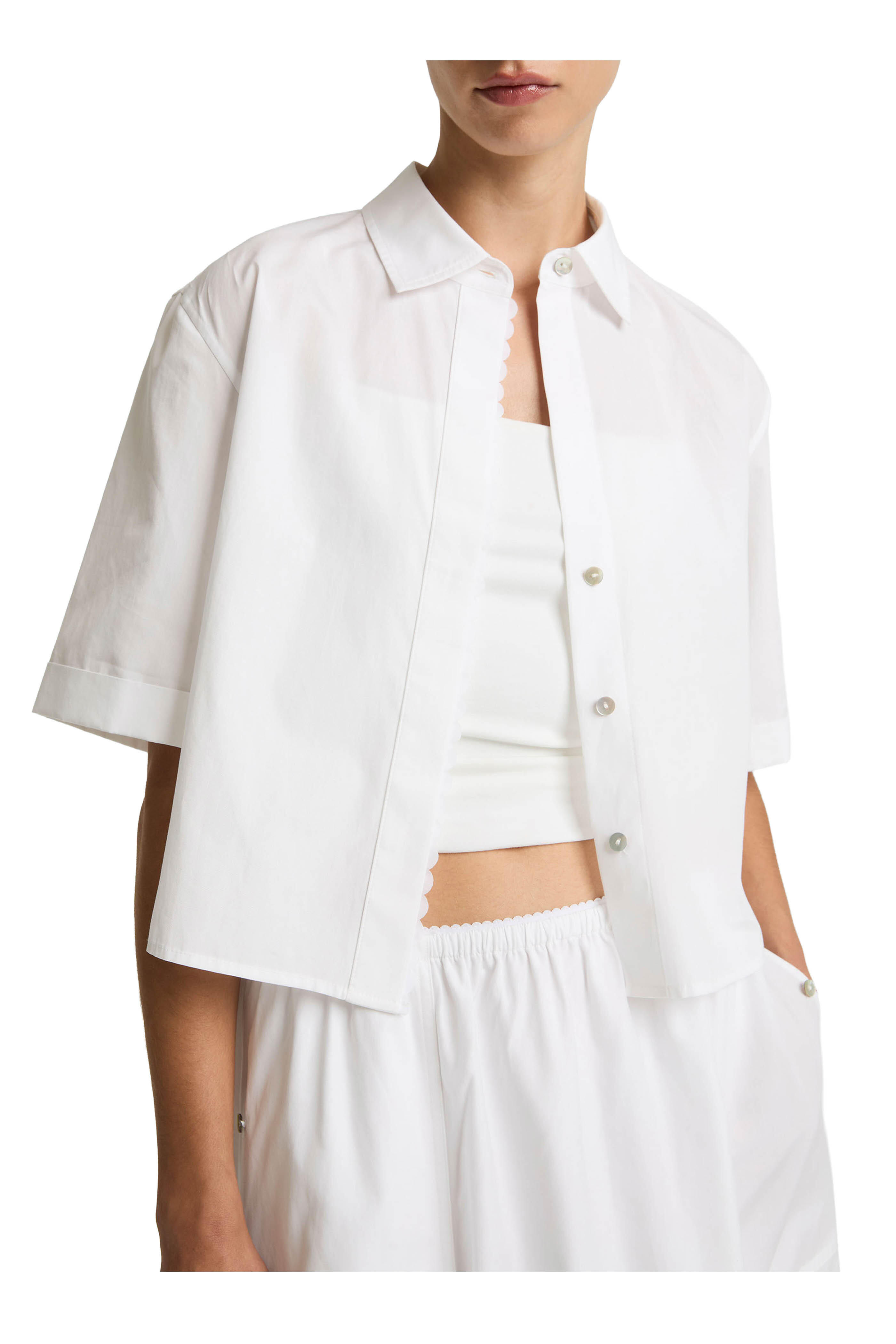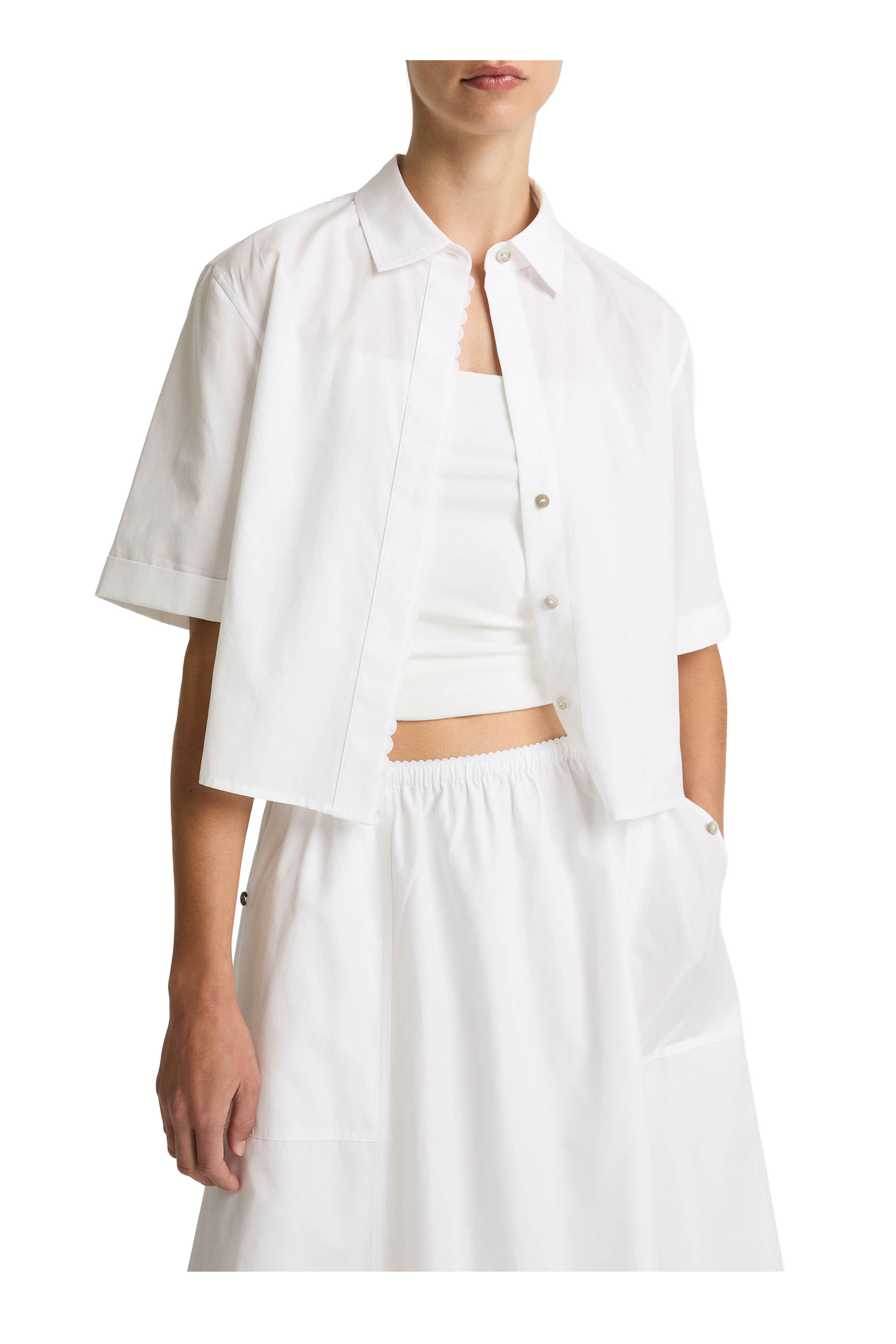 White Scallop Detail Cotton Button Front Shirt