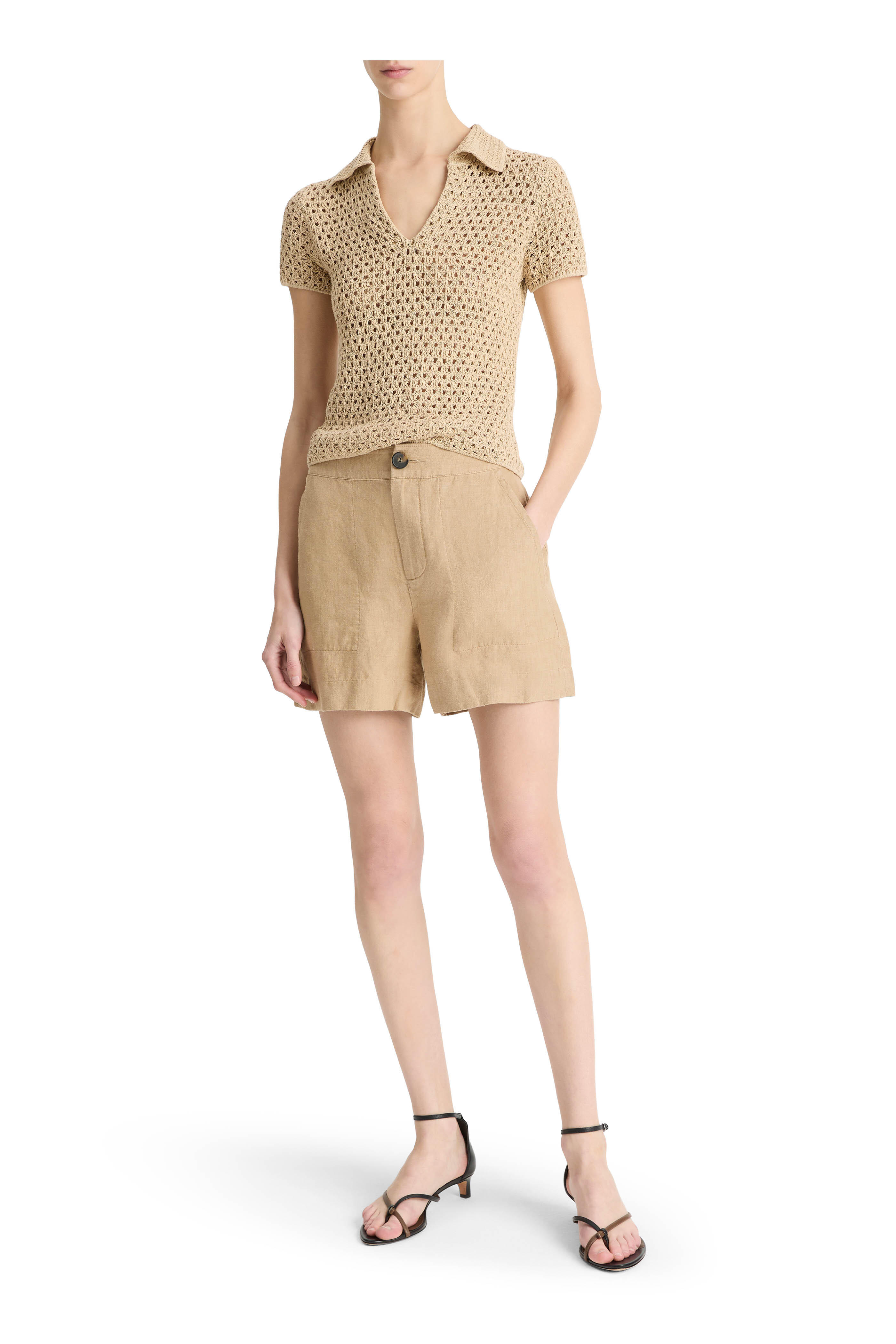 - Banded waist; belt loops