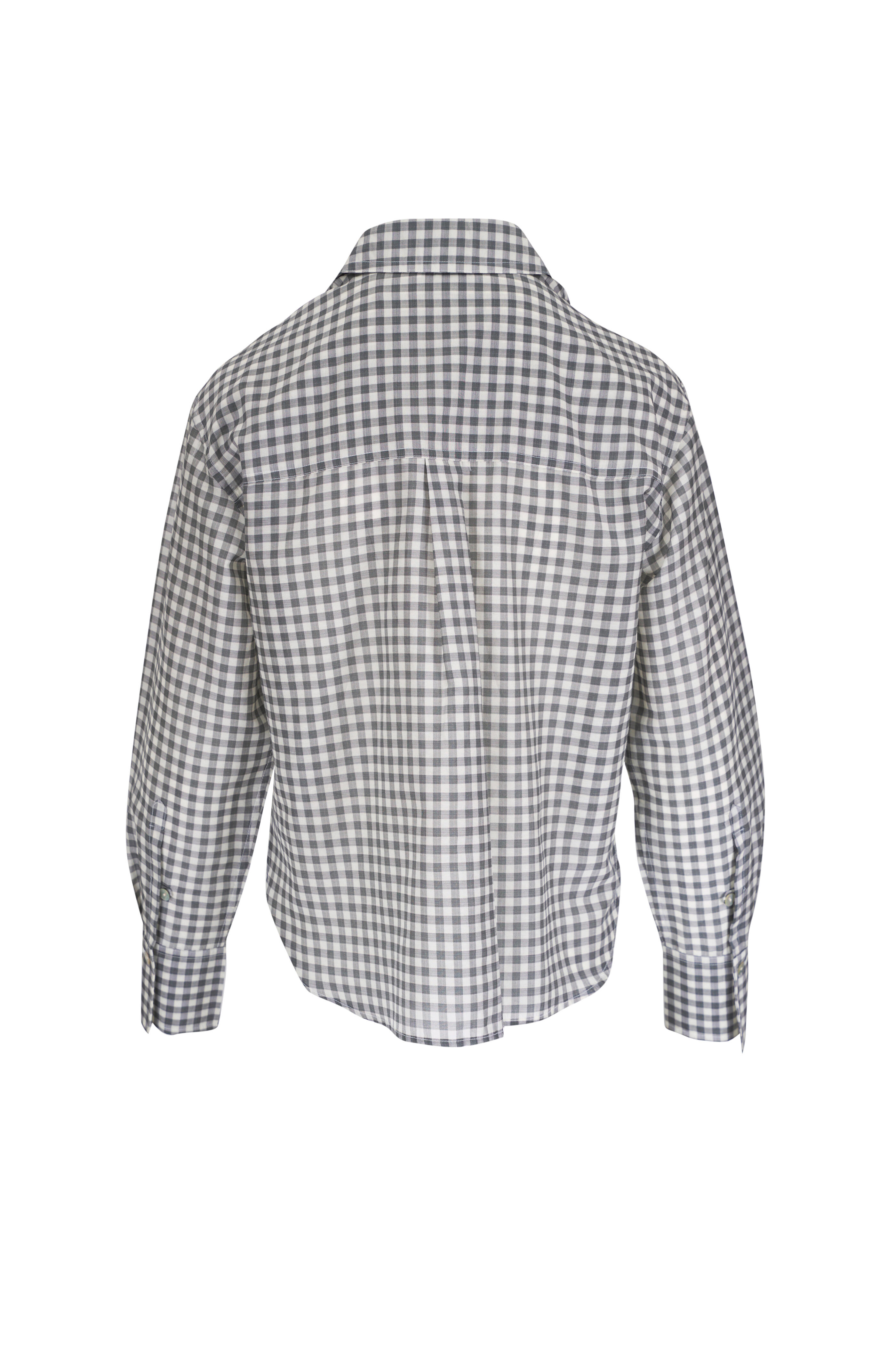 Spread collar. Front button placket. Patch chest pocket. Single-button cuffs. Shoulder yoke and box pleat at back. Shirttail hem. Imported. Approx. 23 ¼" shoulder to hem. 70% cotton, 30% silk. Dry clean.
