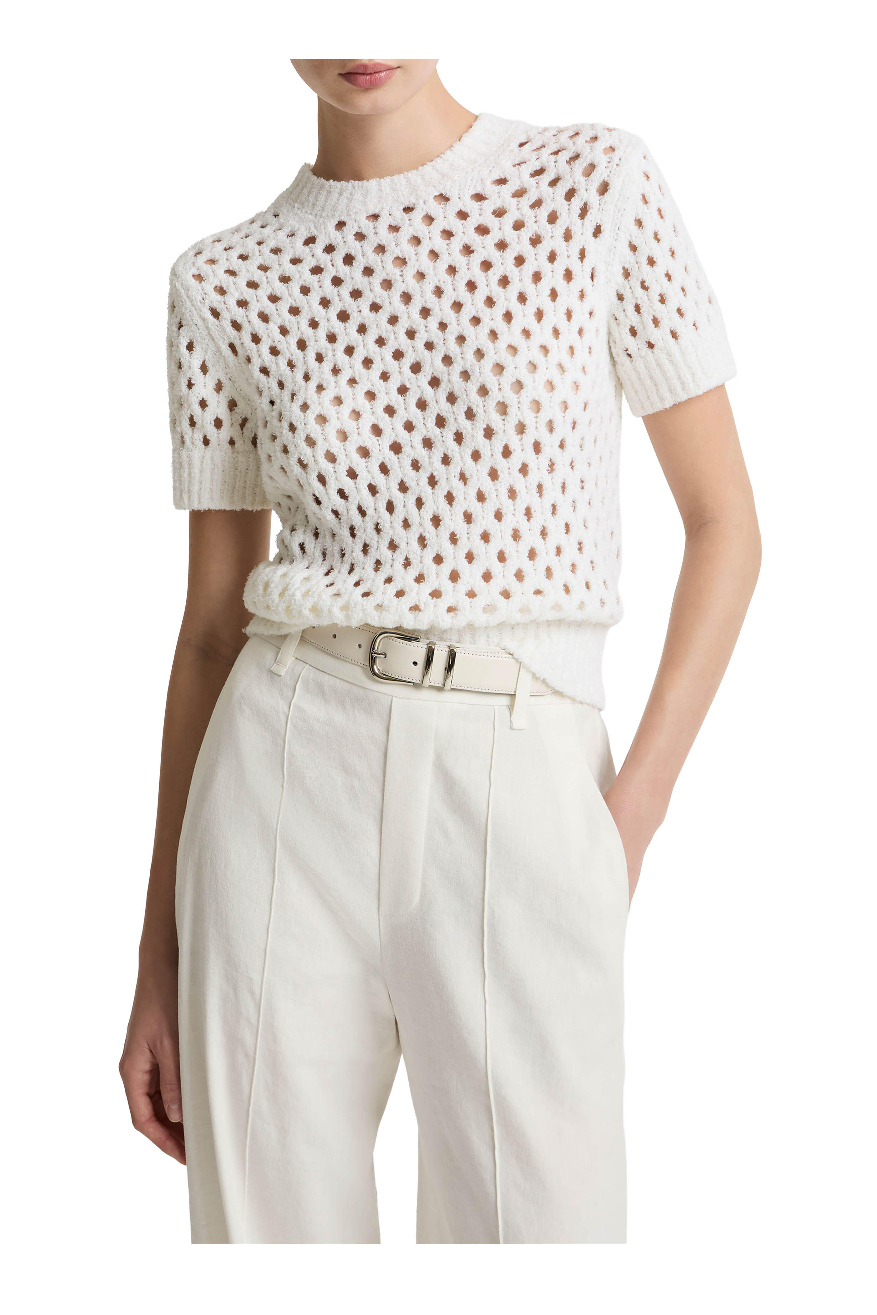 Off White Honeycomb Knit Boxy T-Shirt