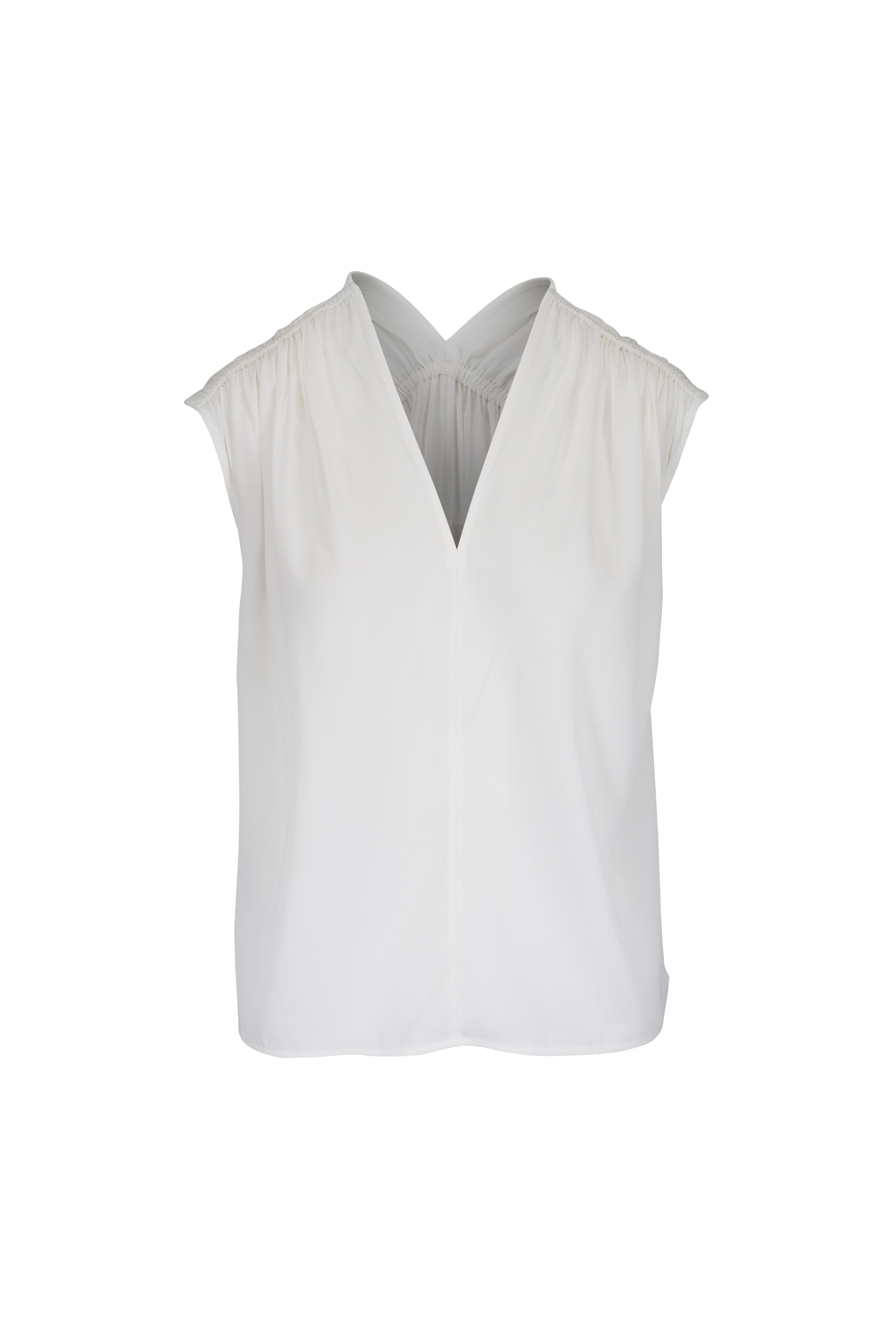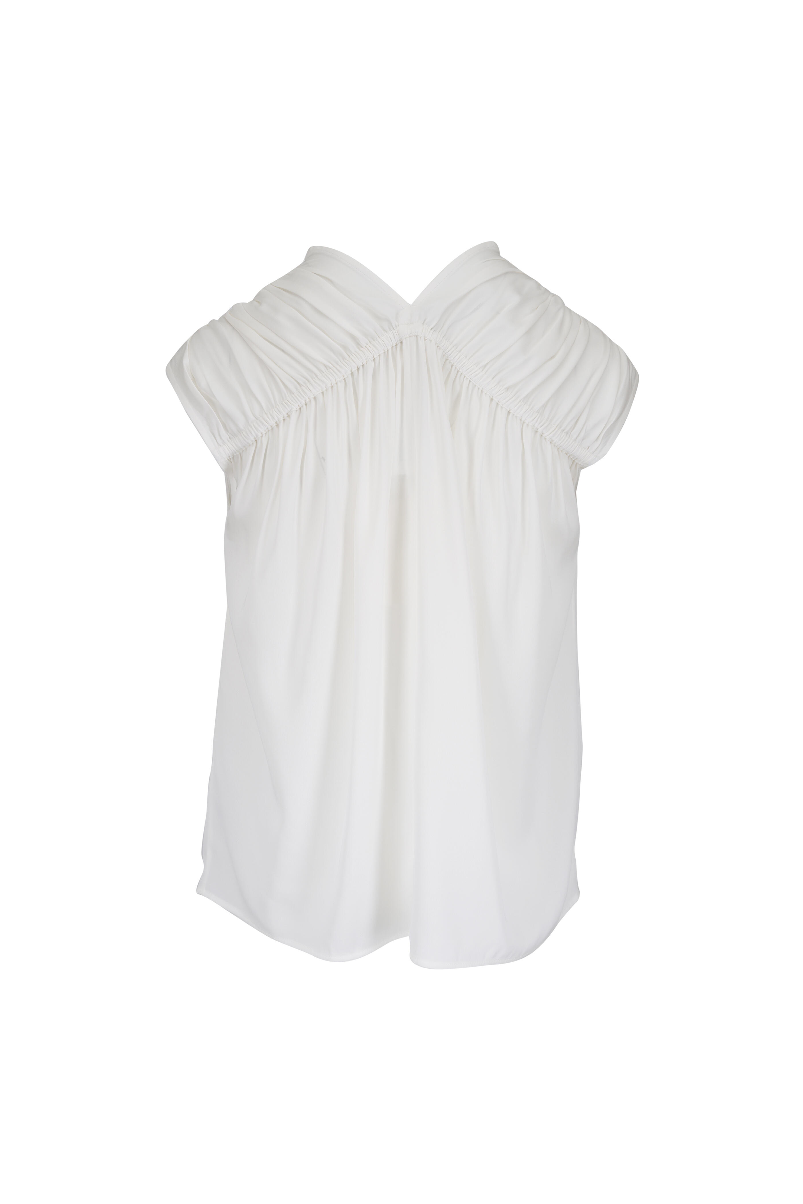 Off White Stretch Silk Gathered Cap-Sleeve Blouse