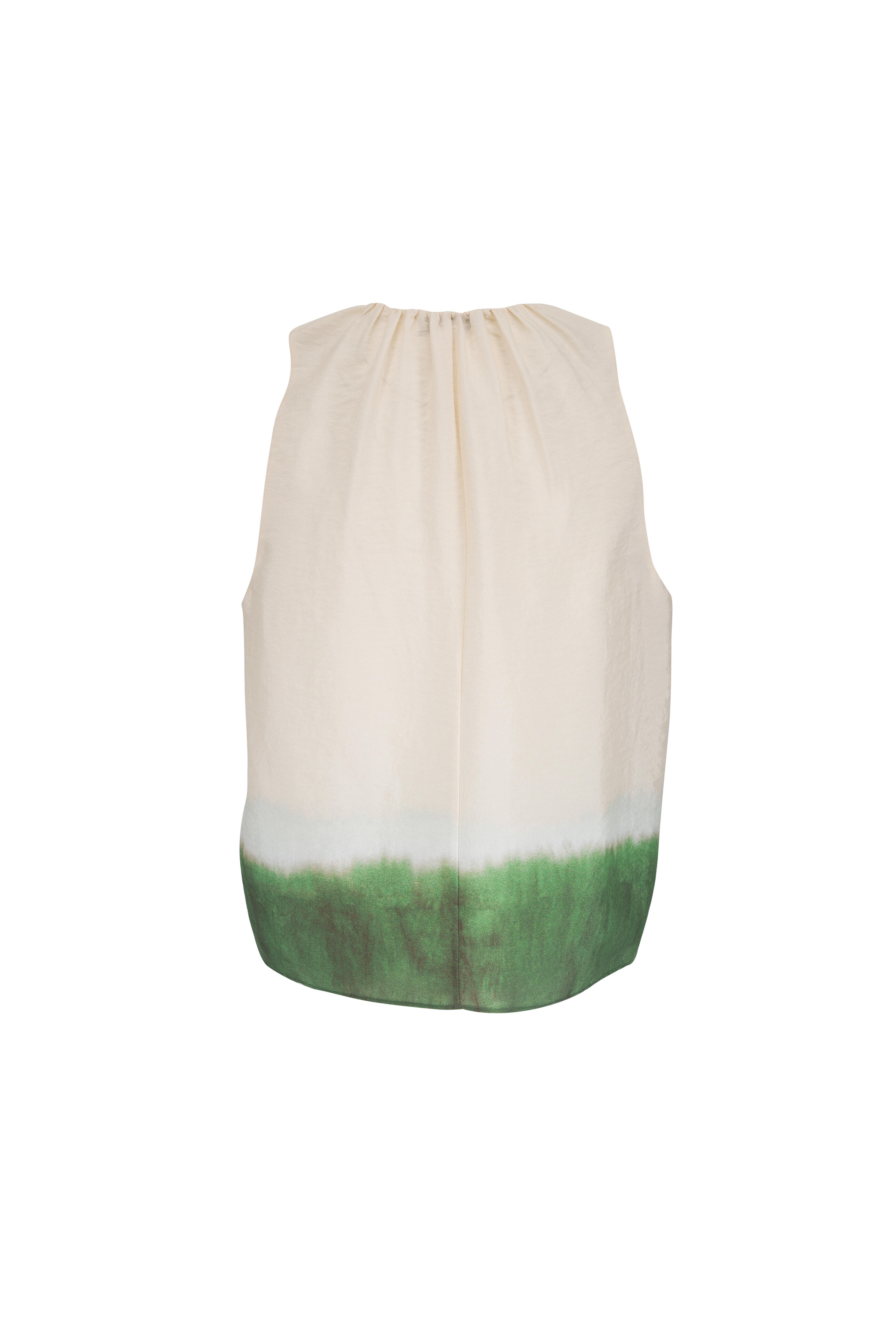 Round neckline. Concealed front button placket. Imported. Approx. 23" shoulder to hem. 89% lyocell, 11% polyamide. Dry clean.