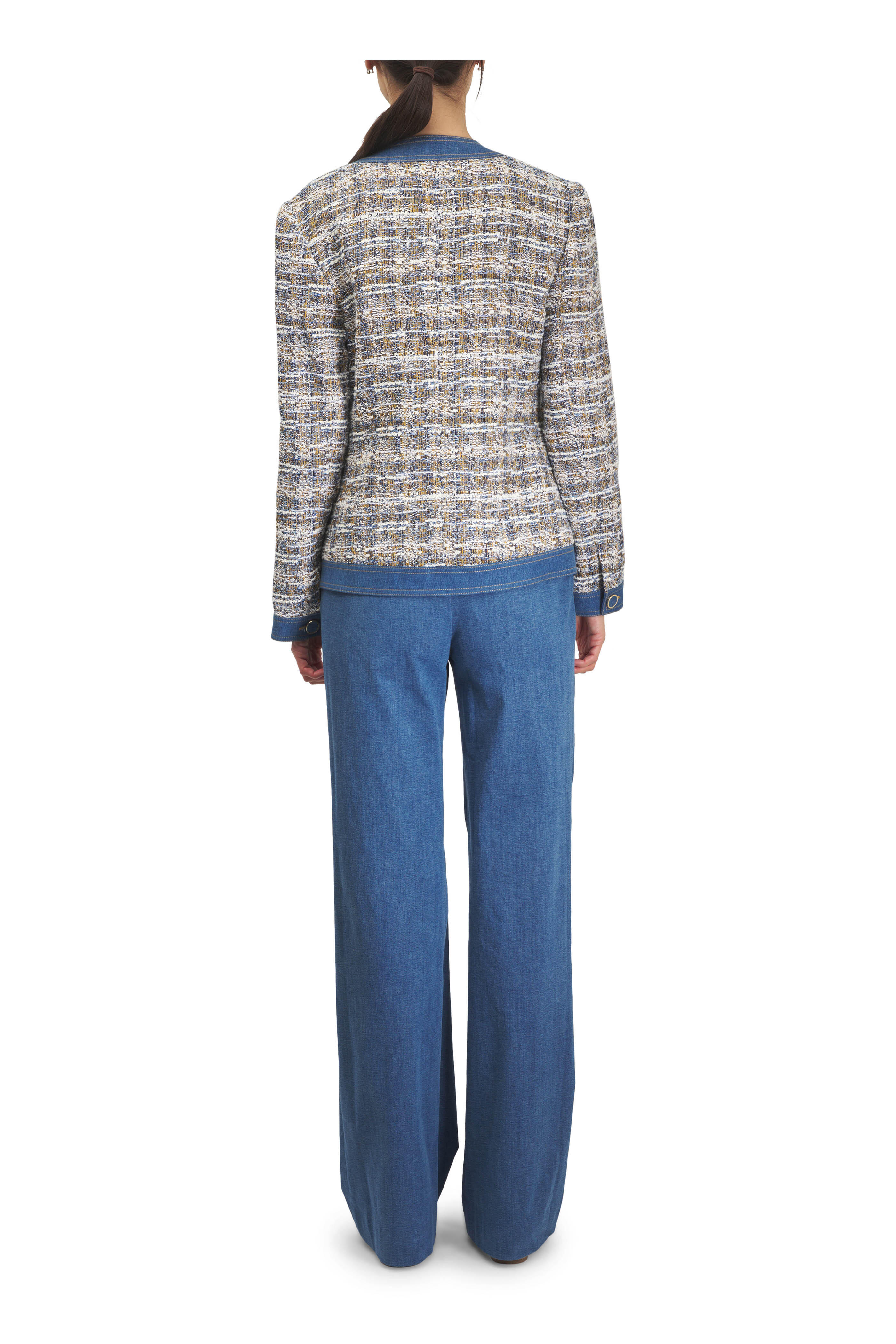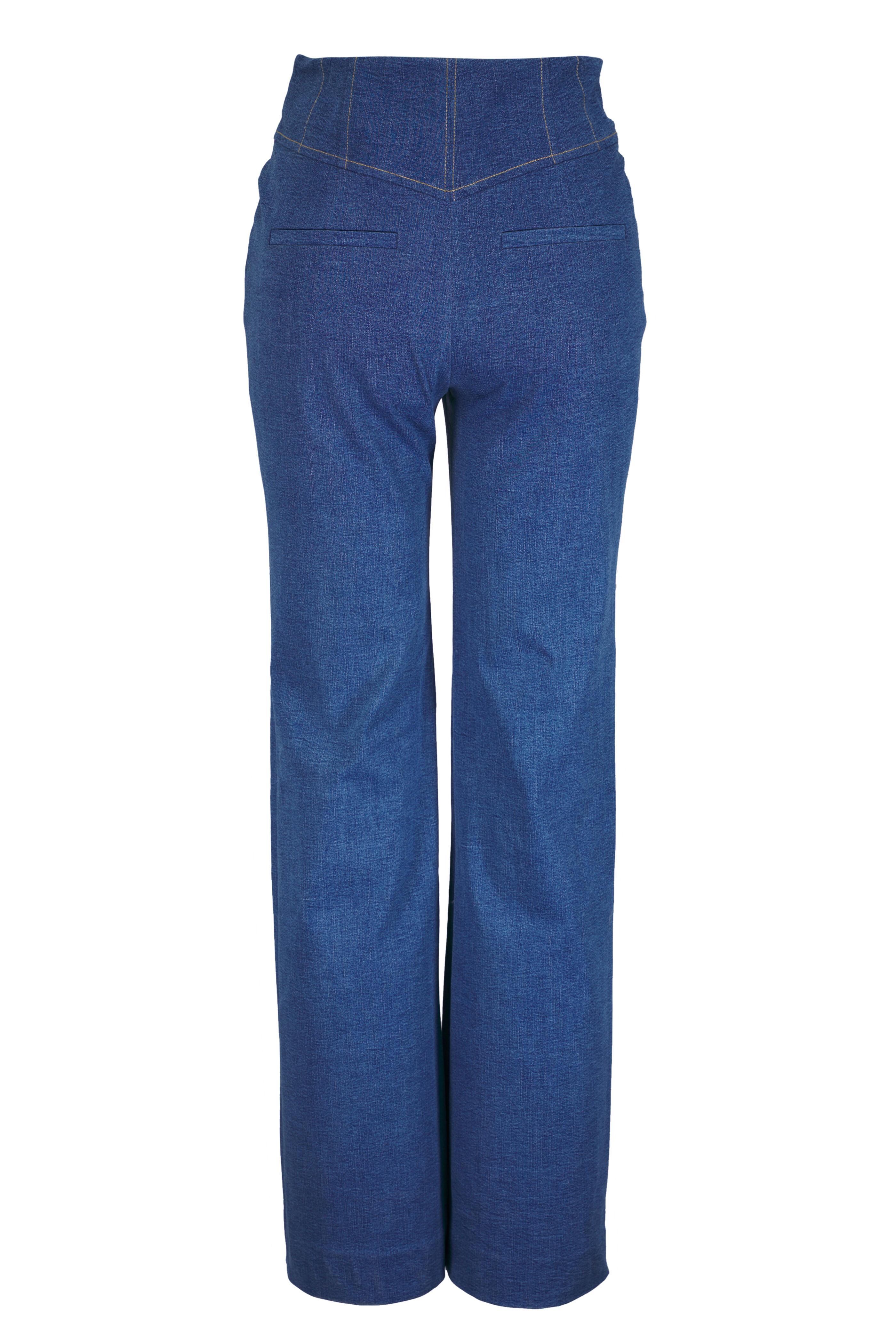 Zip fly; hook-and-bar closure. Side slip pockets; back welt pockets. Imported. Inseam 34". Rise 11.38". Leg opening 21.75". 75% cotton, 23% polyester, 2% elastane; lined. Dry clean.