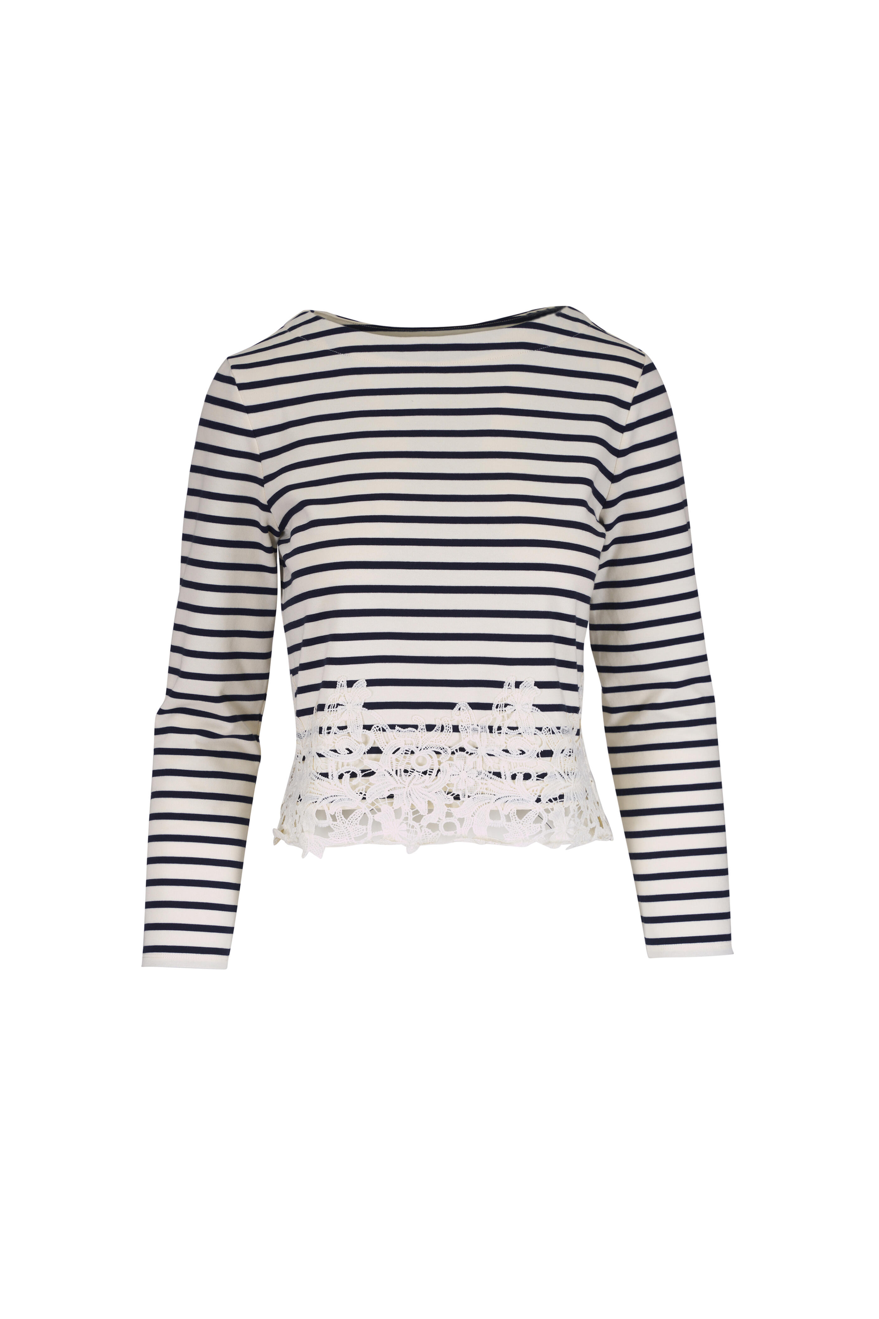 Round neckline. Pullover style. Floral lace at hem. Straight hem. Imported. Shoulder to hem 19" (size xs). 100% Cotton. Machine wash.