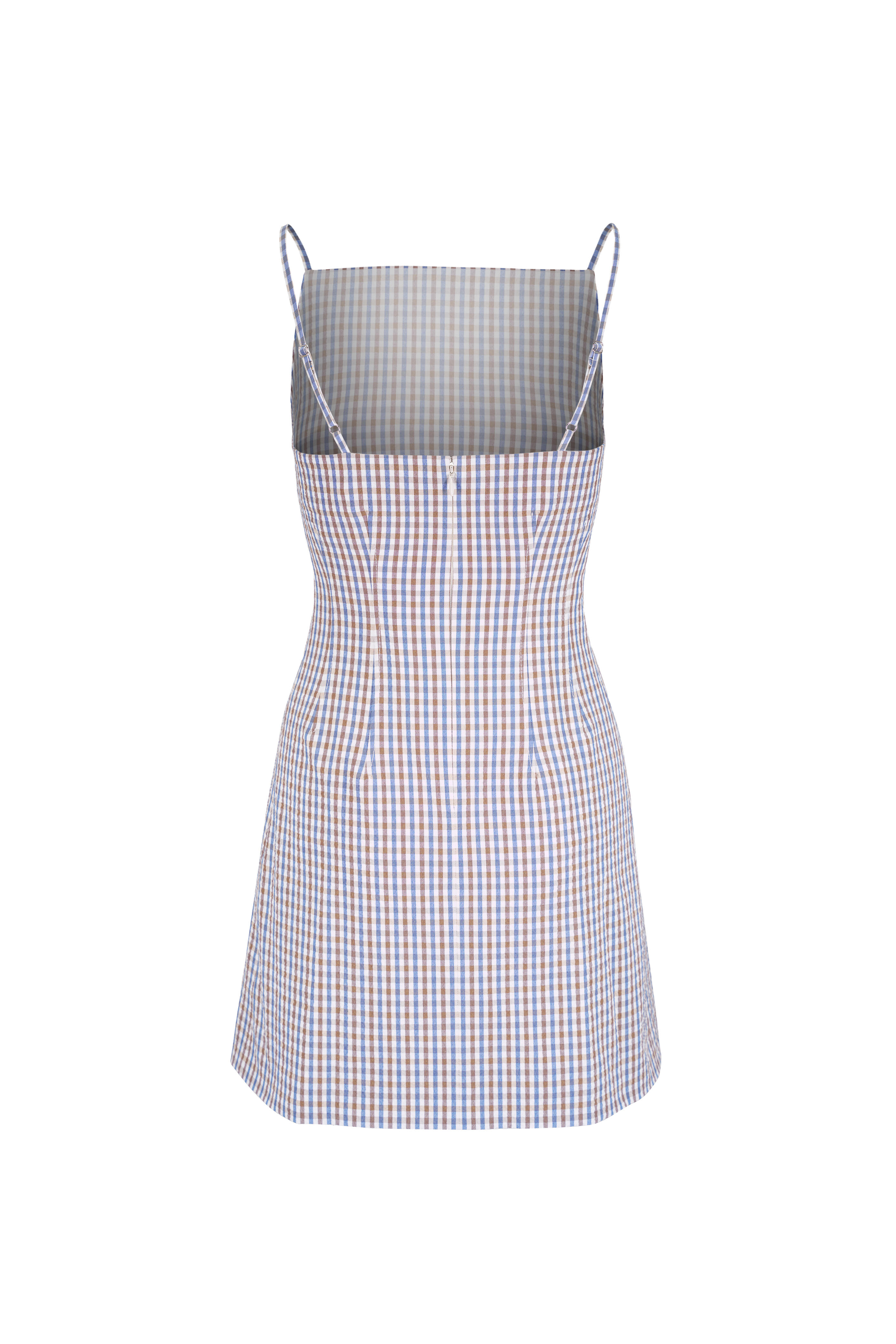 Bateau neckline. Concealed back zip. Adjustable straps. Darting at the waist. Imported. Approx. 33 ¾" shoulder to hem (measurements from size 2). 98% cotton, 2% elastane. Dry clean.