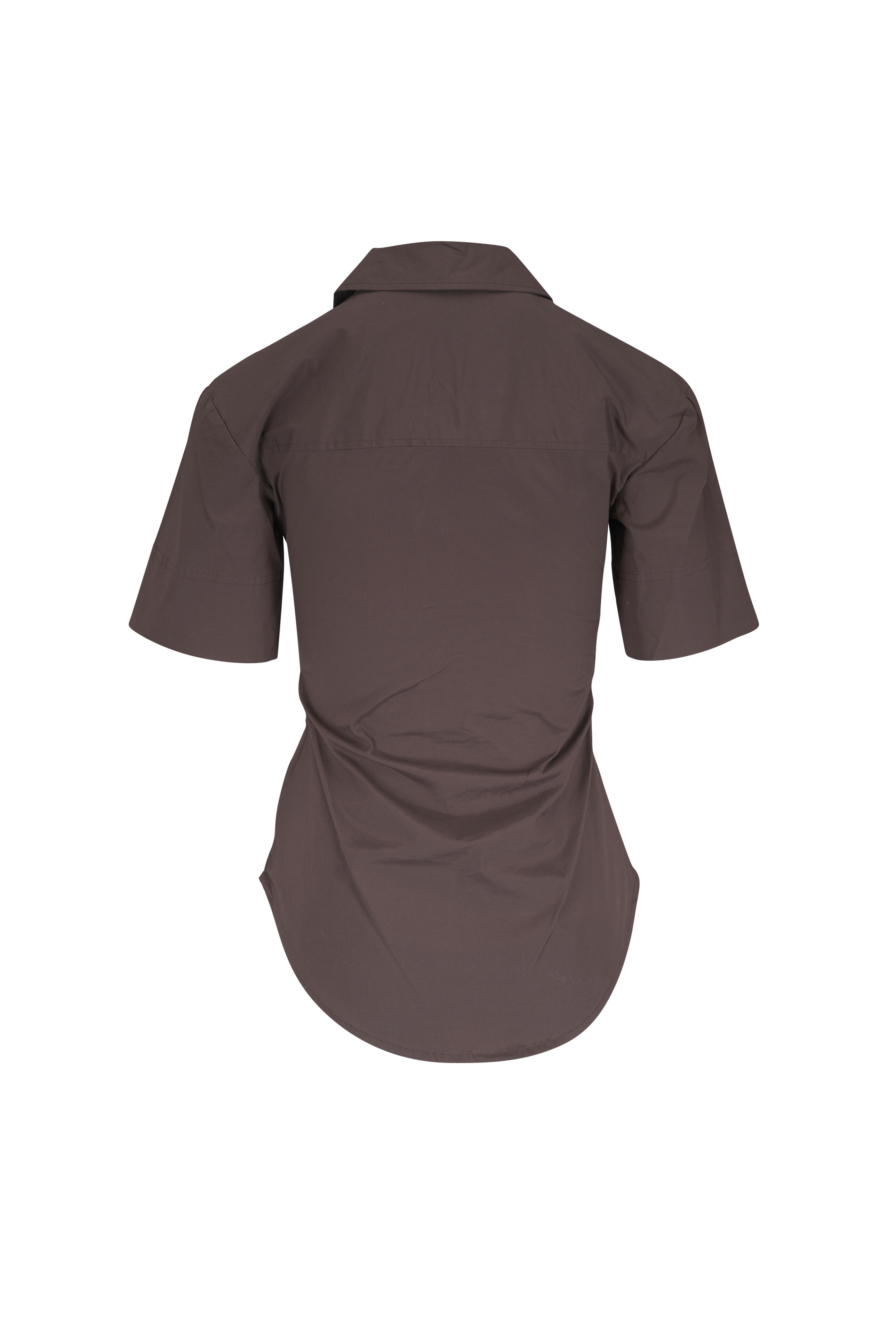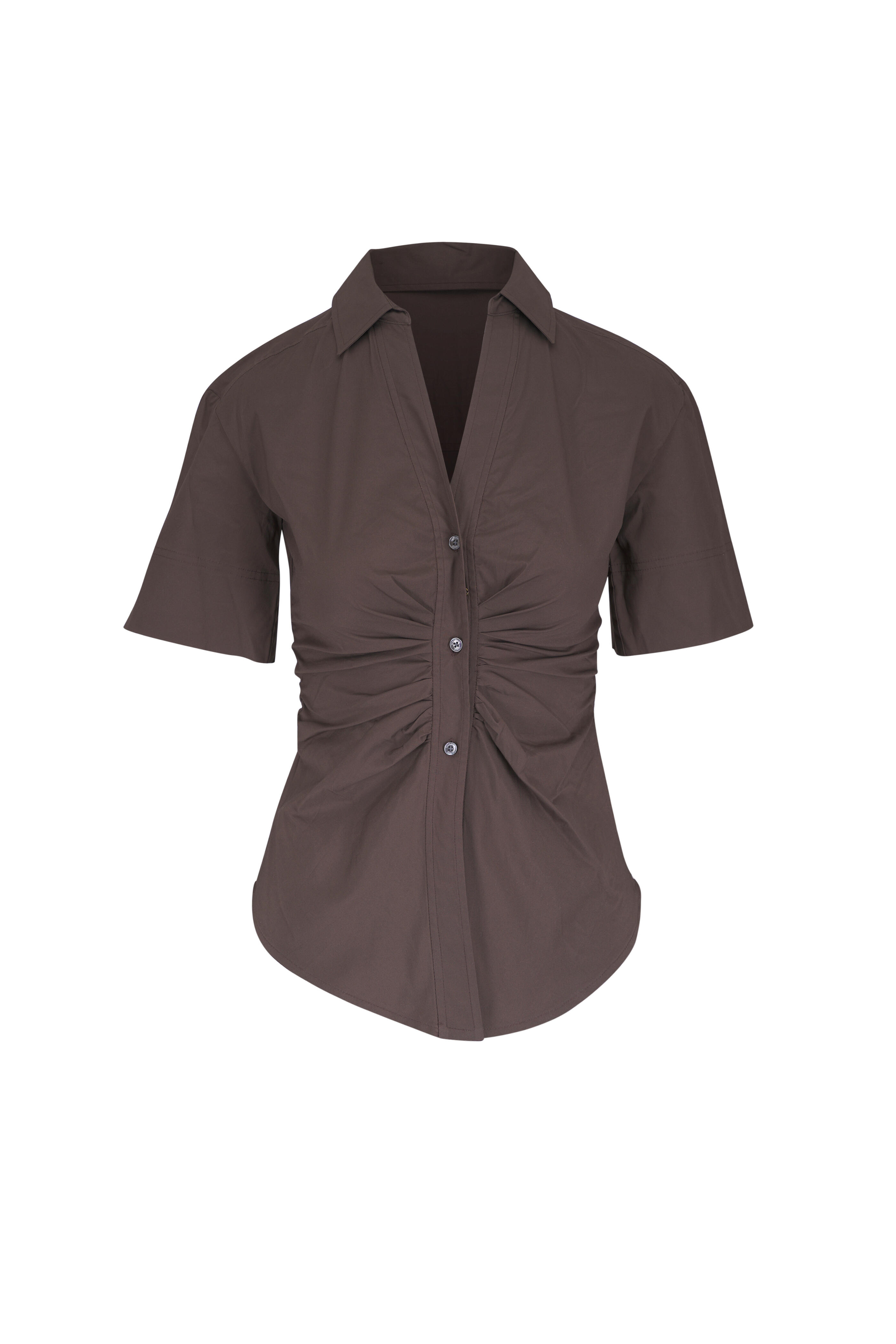 Devra Mocha Stretch Cotton Ruched Poplin Top