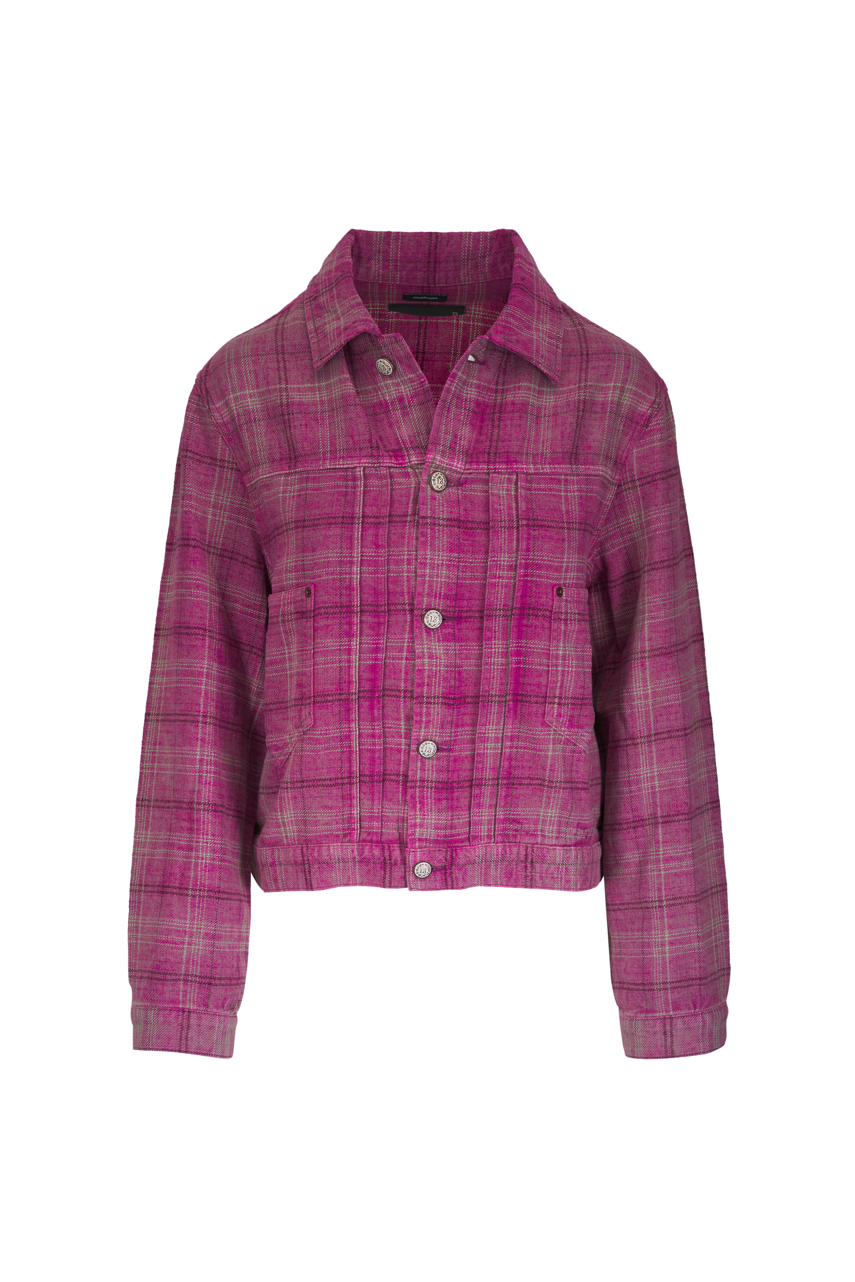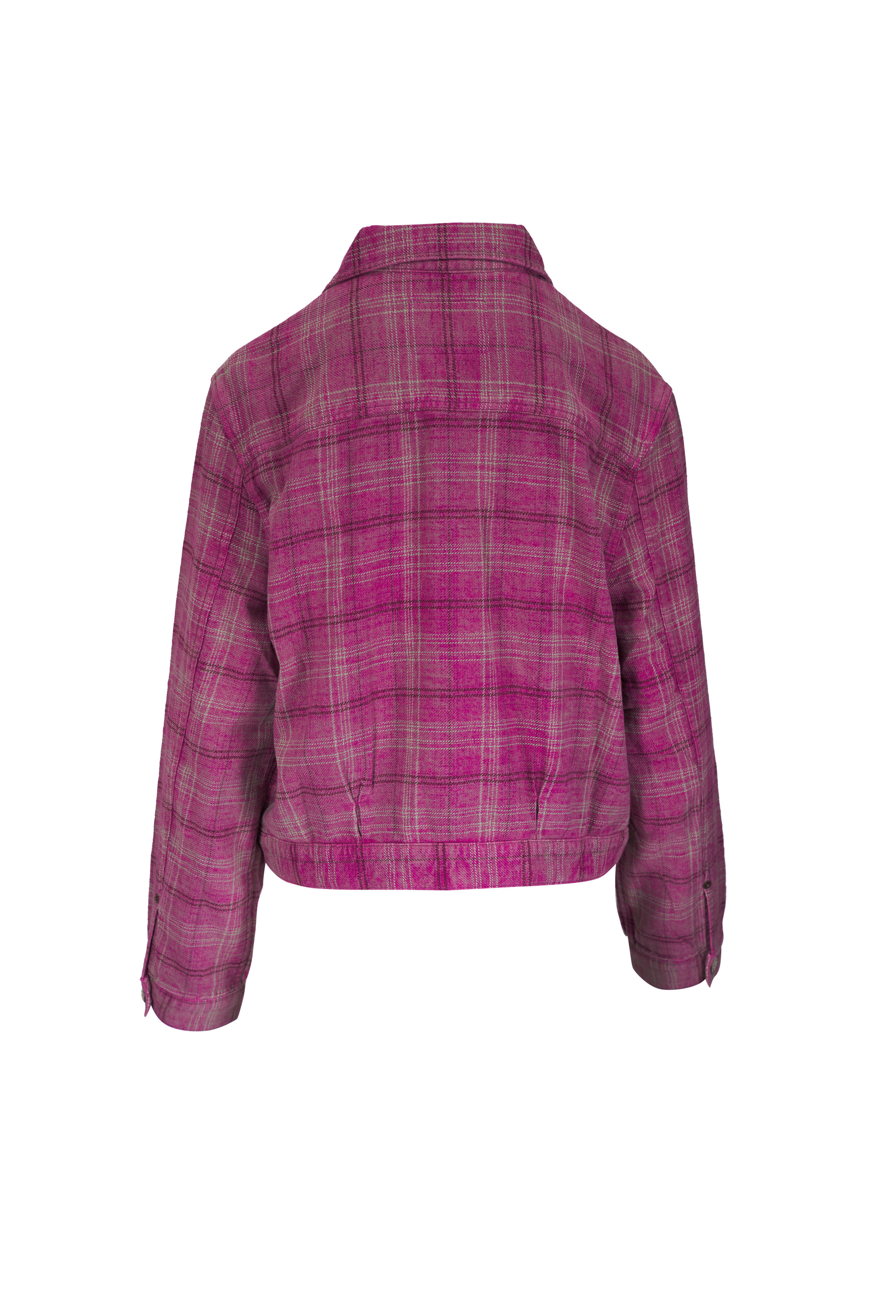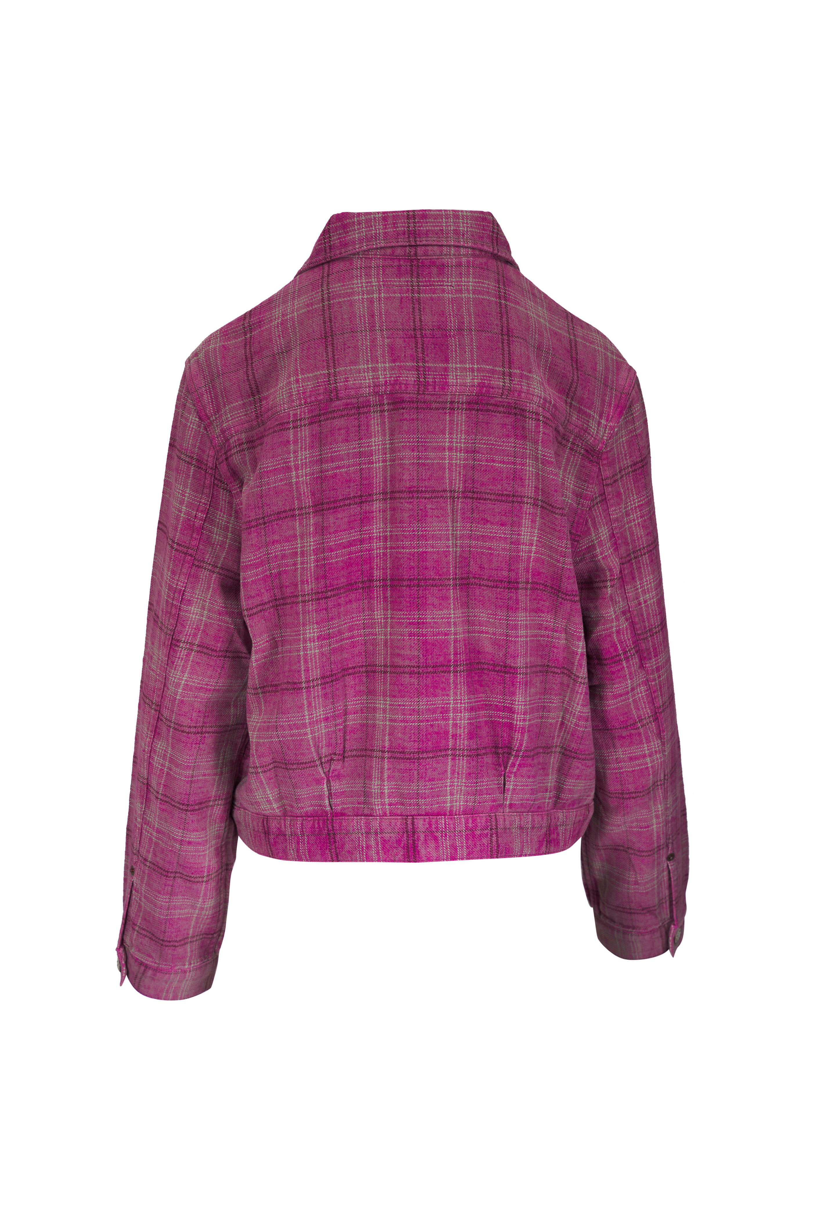 Muted Pink Plaid Relaxed Pleated Trucker Jacket