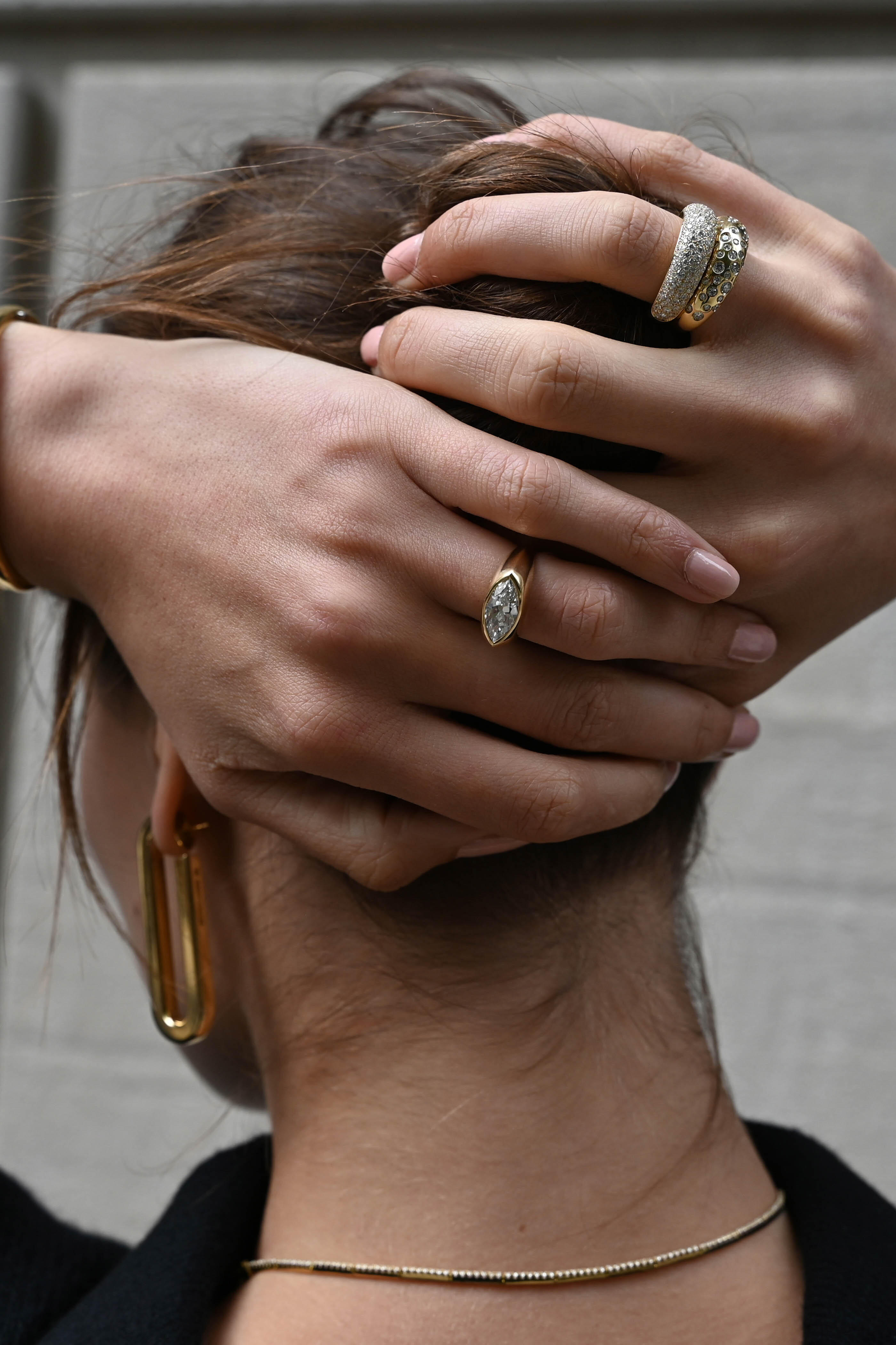 18k Yellow Gold Spotted Diamond French Dome Ring
