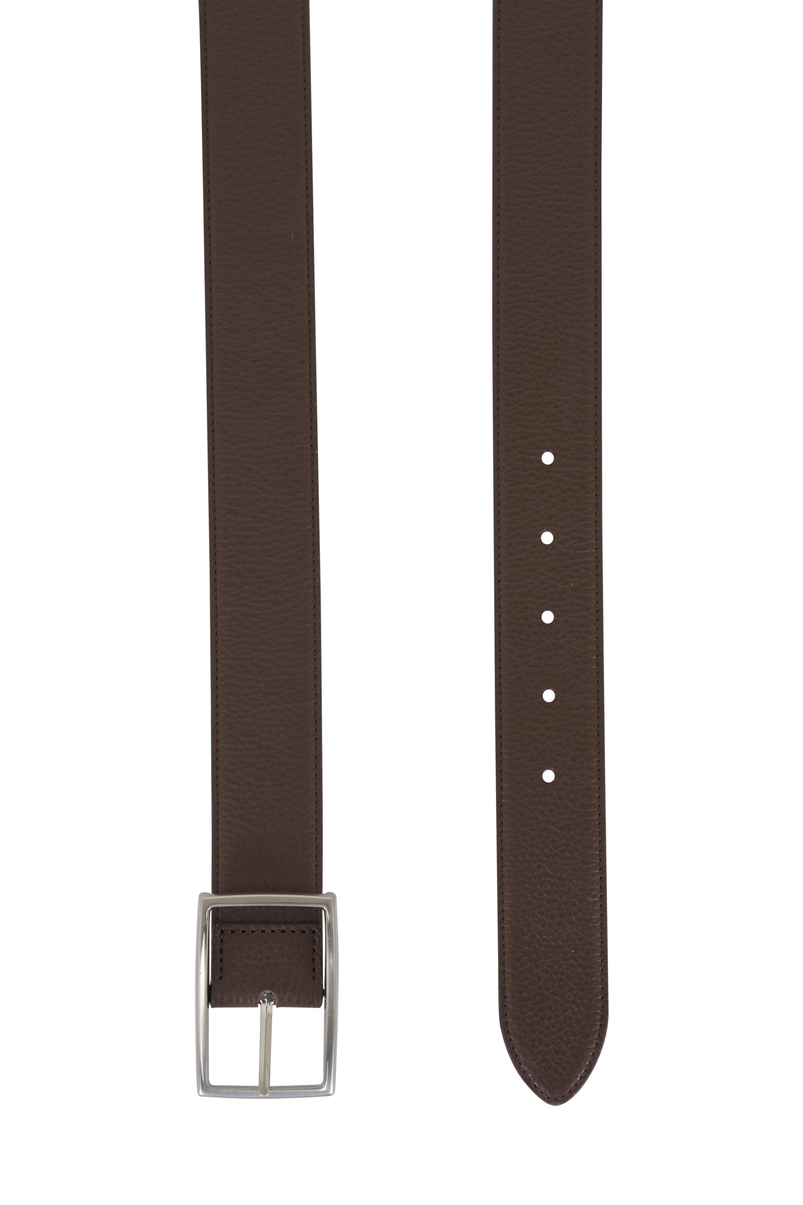 Pebbled leather. Square buckle. Pointed tip. Made in Italy. Width: 35mm.