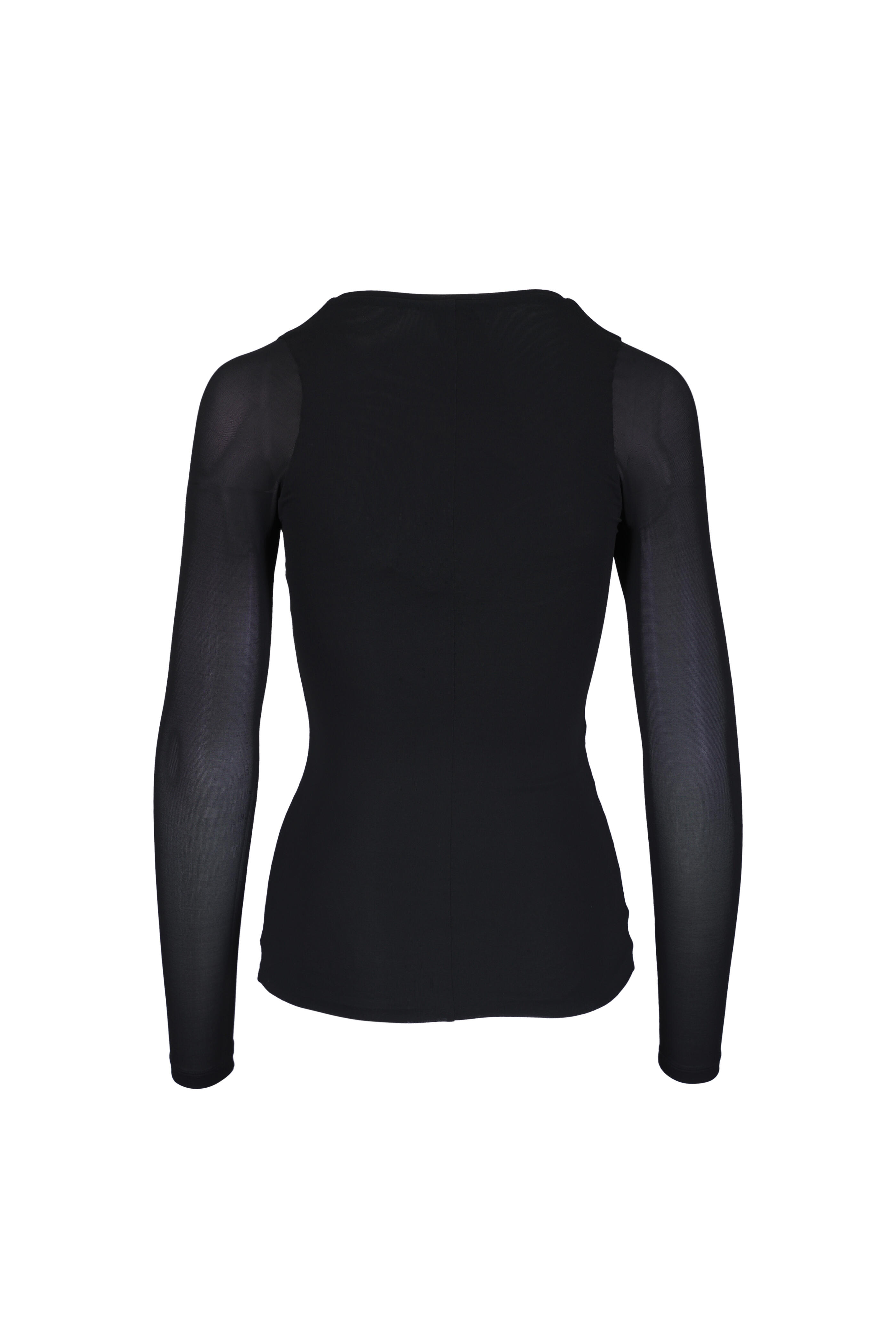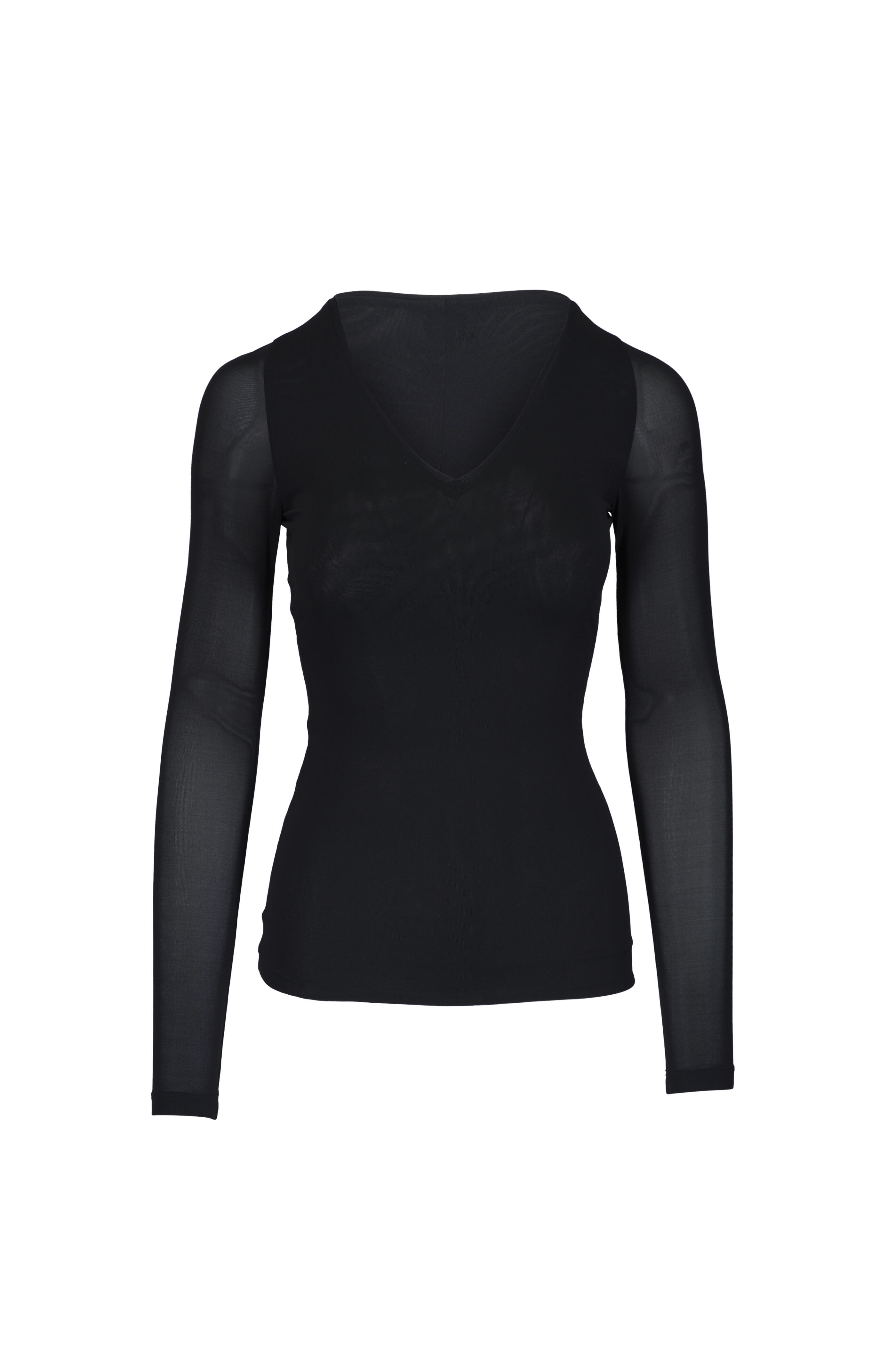 V-neckline. Slip-on style. Straight hem. Made in the USA. Shoulder to hem 25" (size xs). 92% viscose, 8% elastane. Machine wash.