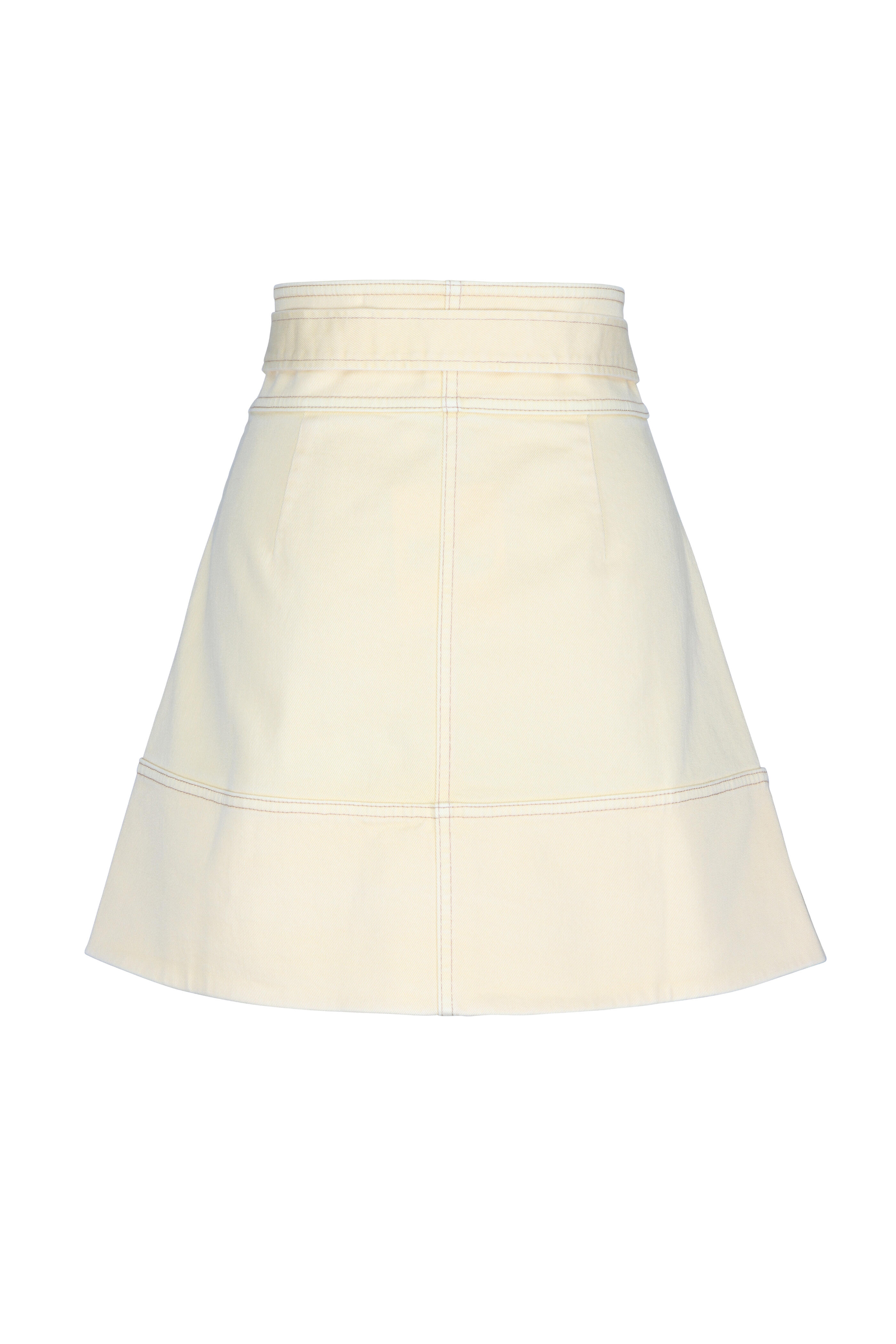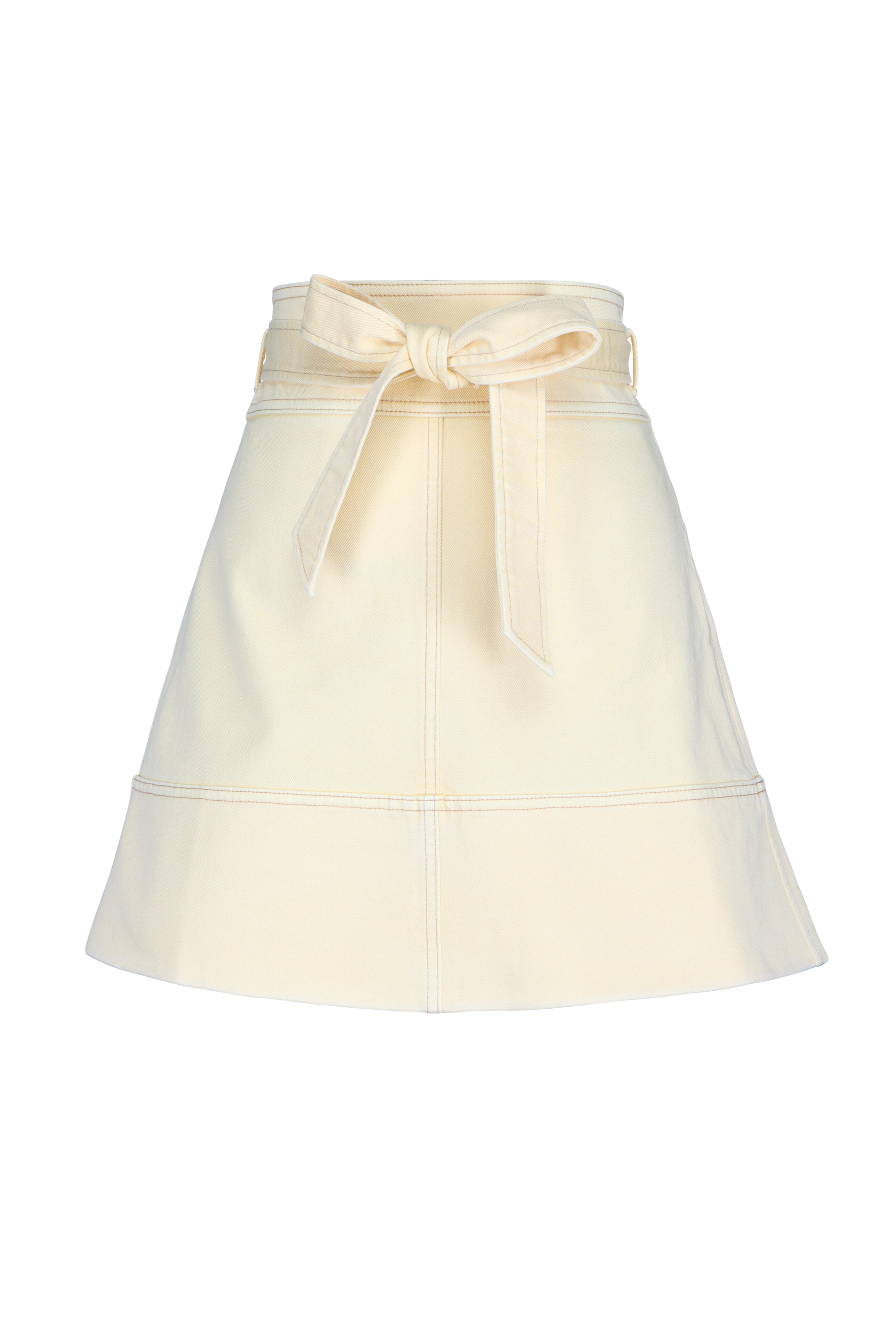 High waisted. Self tie belt. A-line. Hidden side zipper. Imported. True to size. 98% Polyester, 2% Elastane. Dry clean.