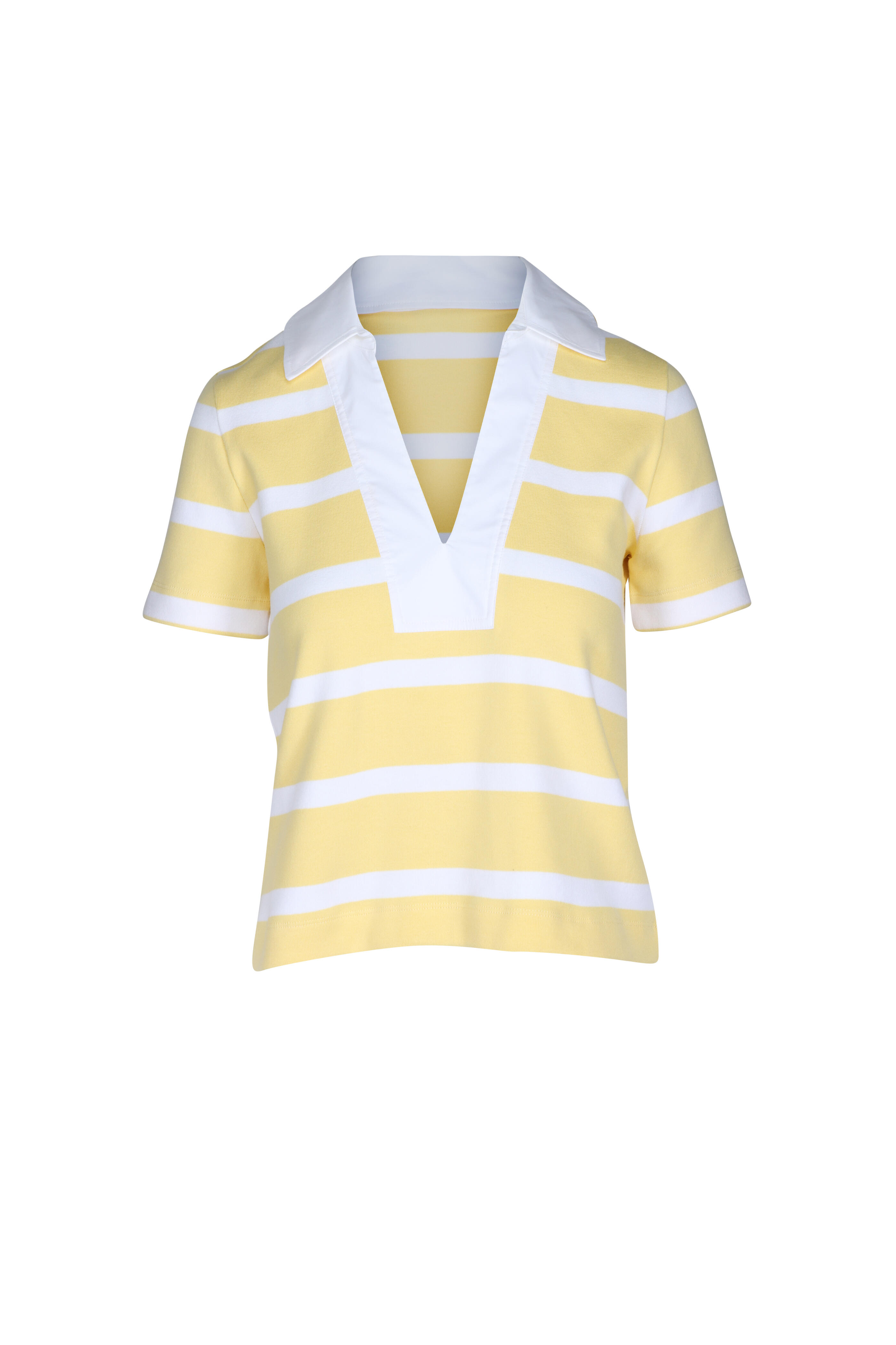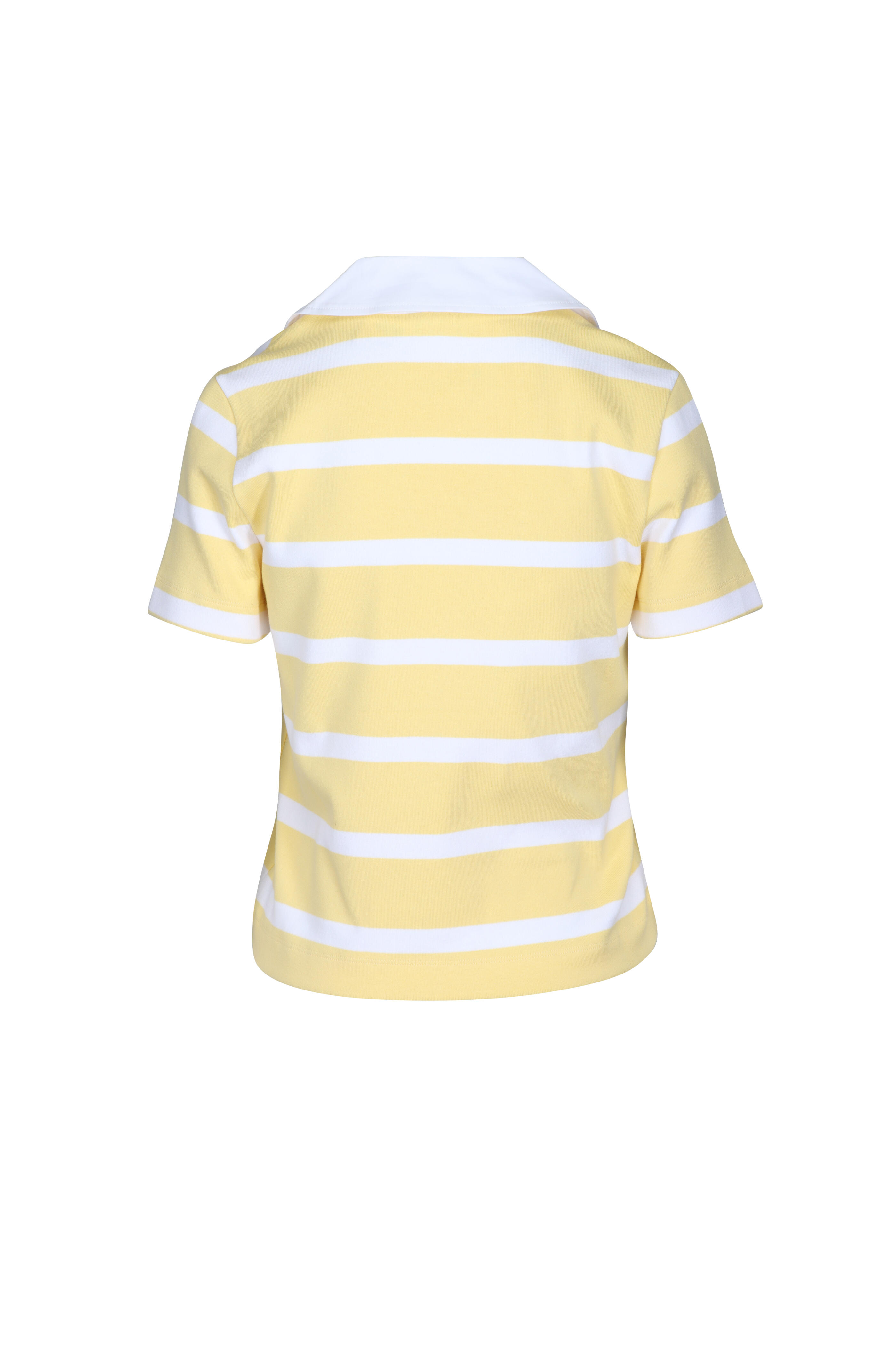 Organic cotton/elastane blend. Point collar. Split V neckline. Short sleeves. Straight hem. Pullover style. Made in Portugal. Cropped.. Dry clean.