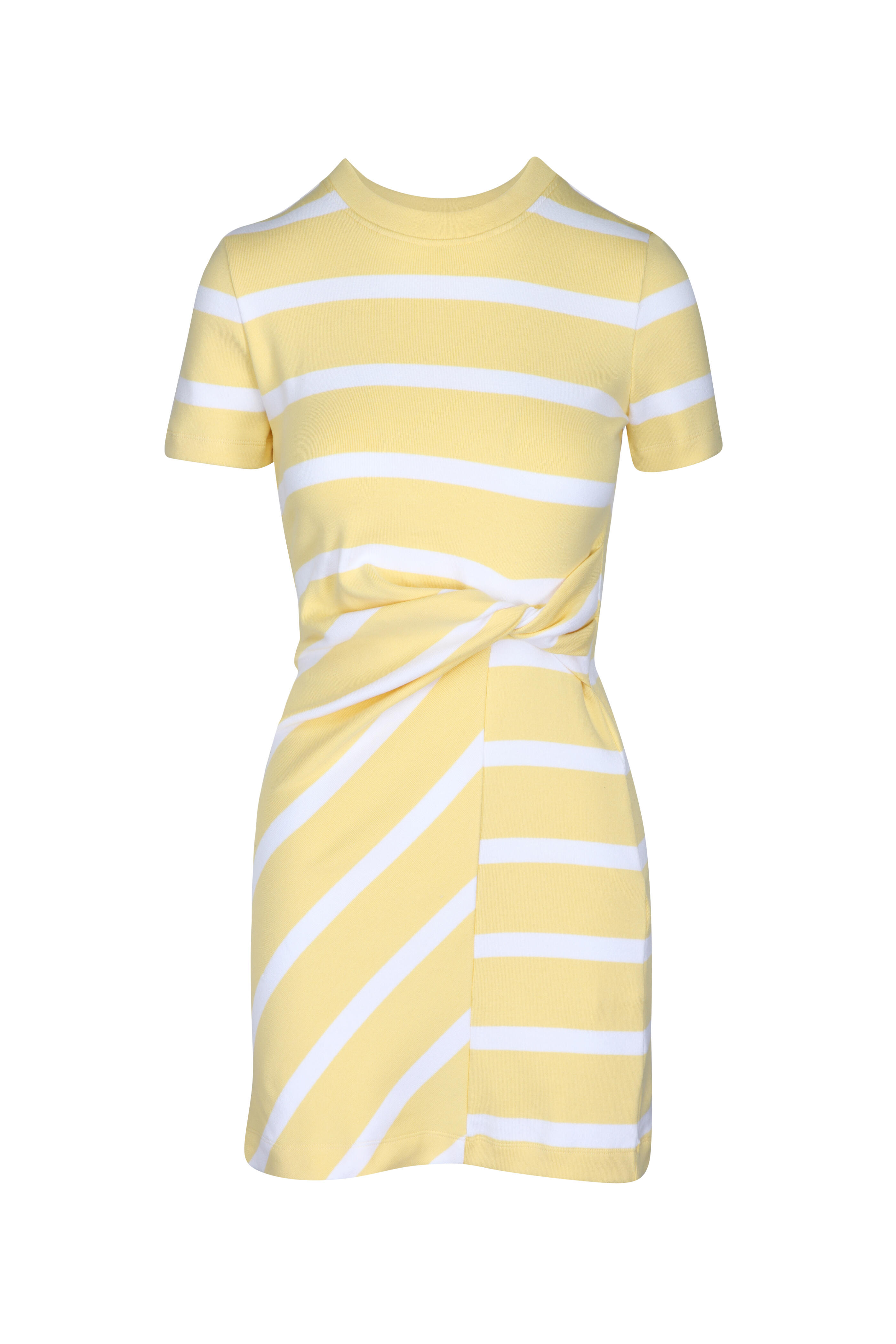 Crew neckline. Short sleeves. Twisted knot detail at the waist. Imported. 95% Organic Cotton, 5% Elastane. Machine wash cold.
