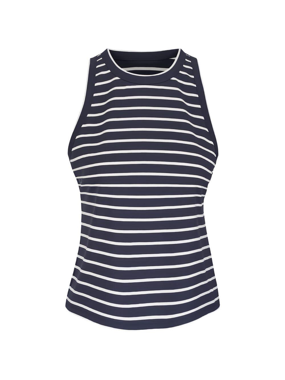 Navy & White Stripe Cotton Rib Racerback Tank
