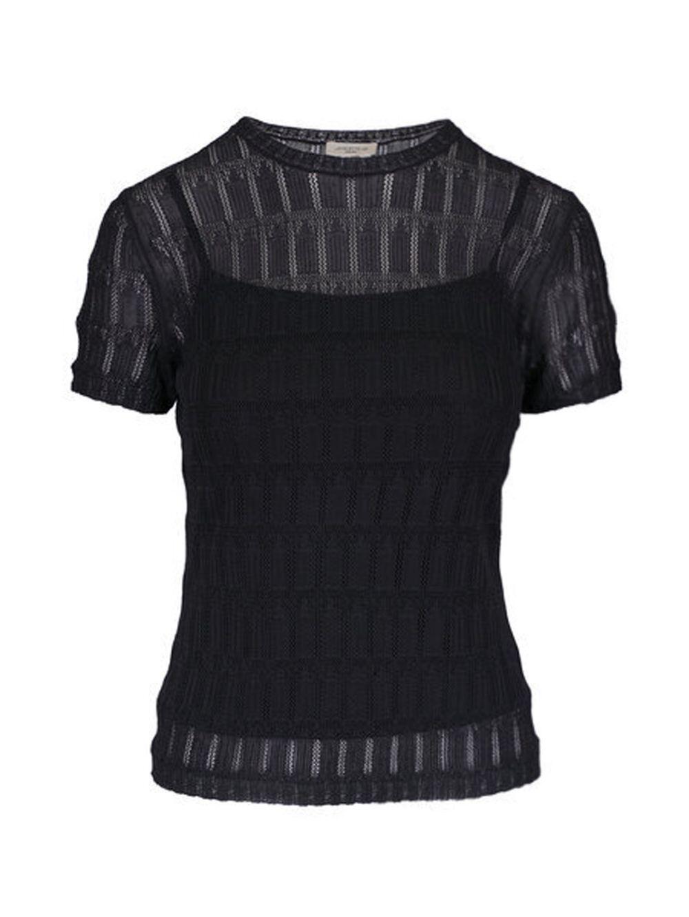 Slip-on style. Fine-gauge knit. Open-knit, sheer design. Imported. 88% viscose, 12% polyamide. Dry clean.
