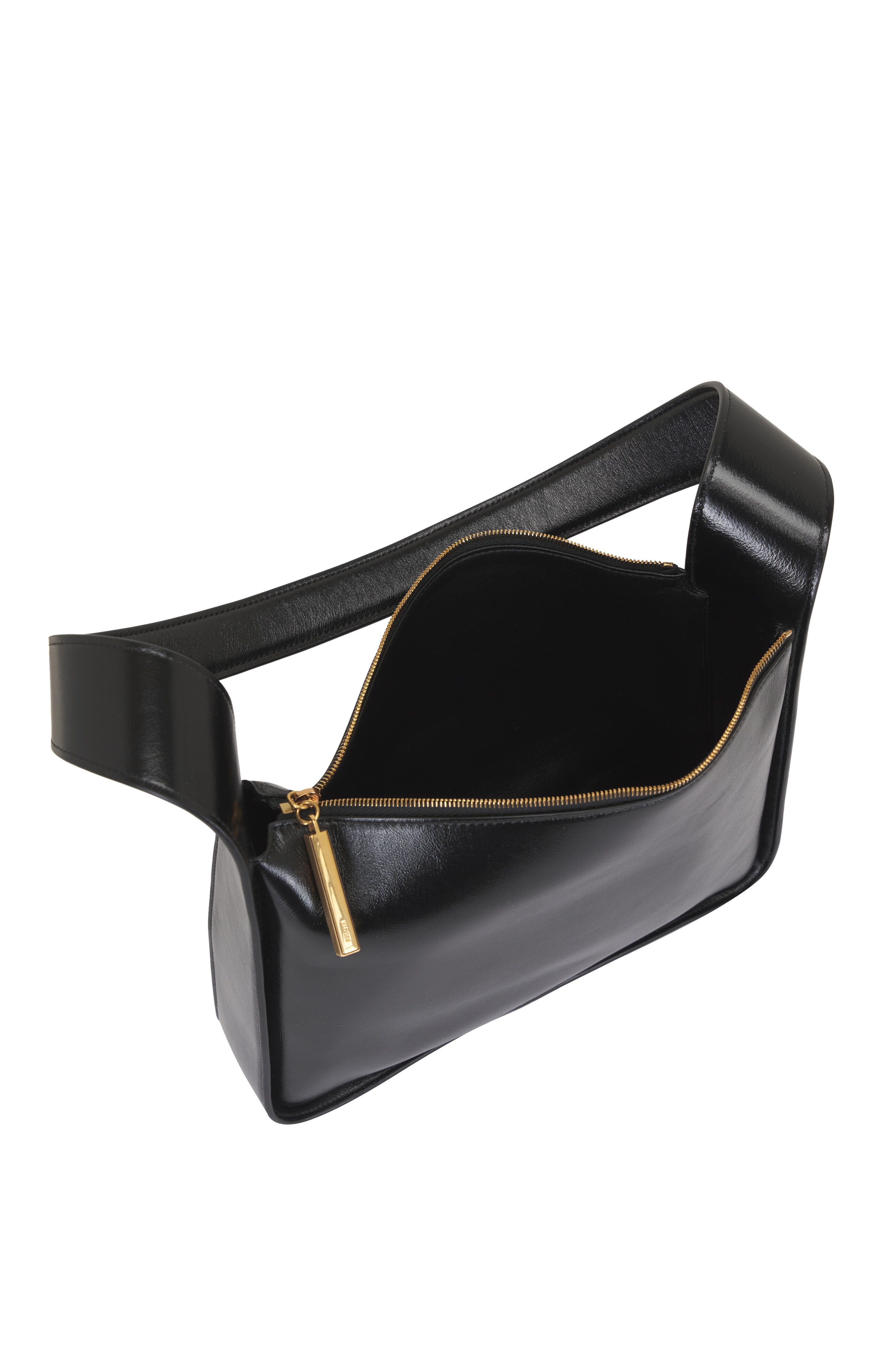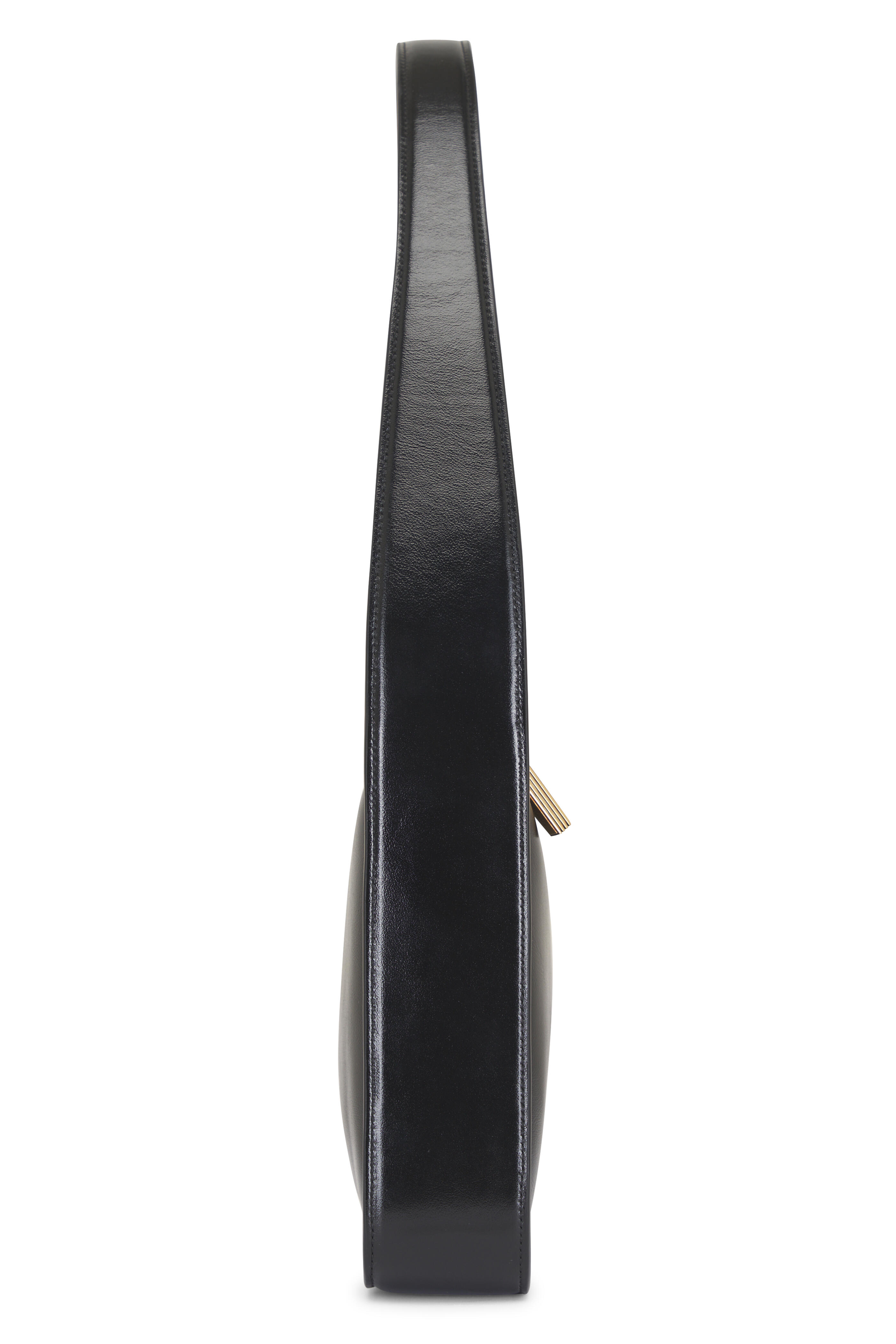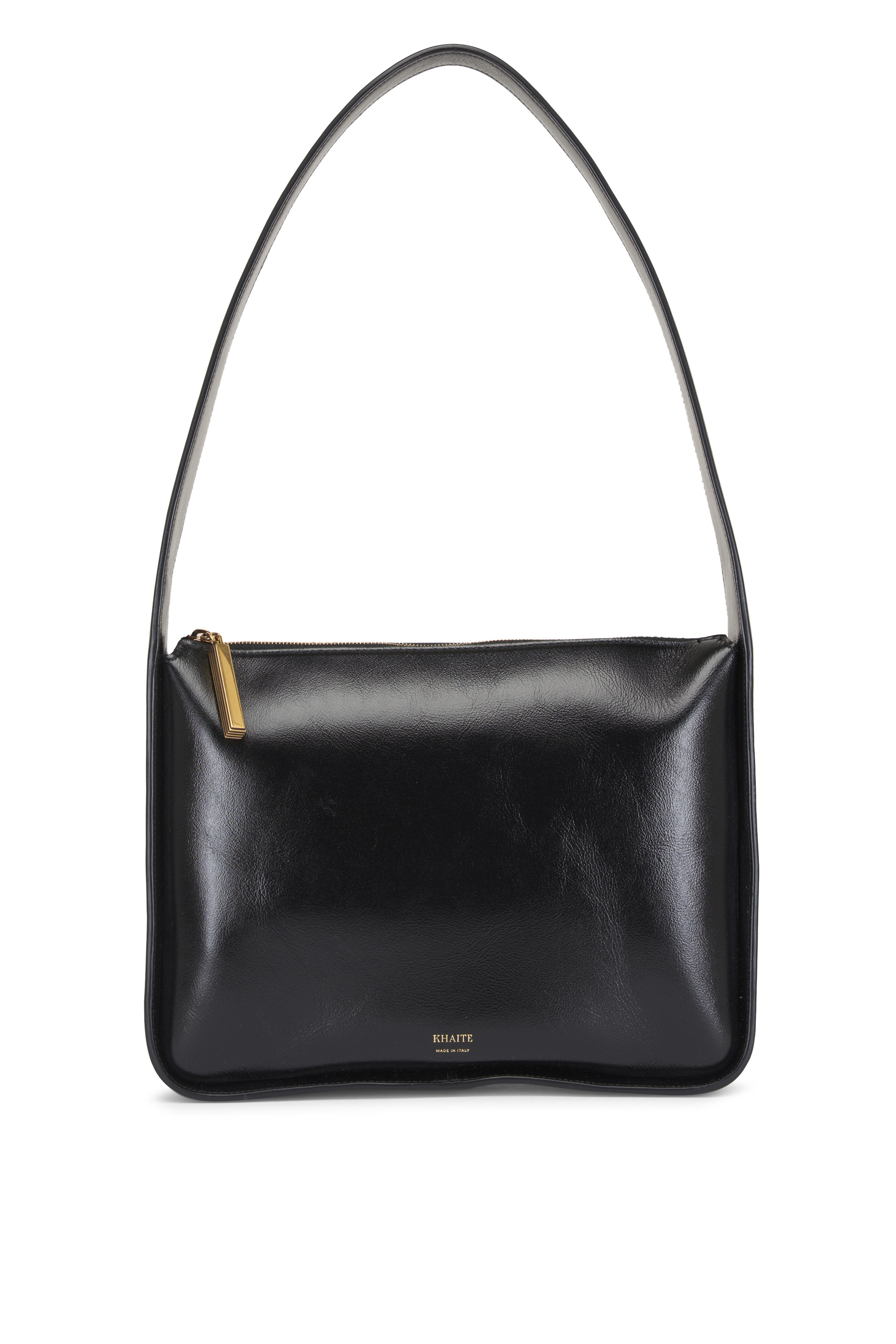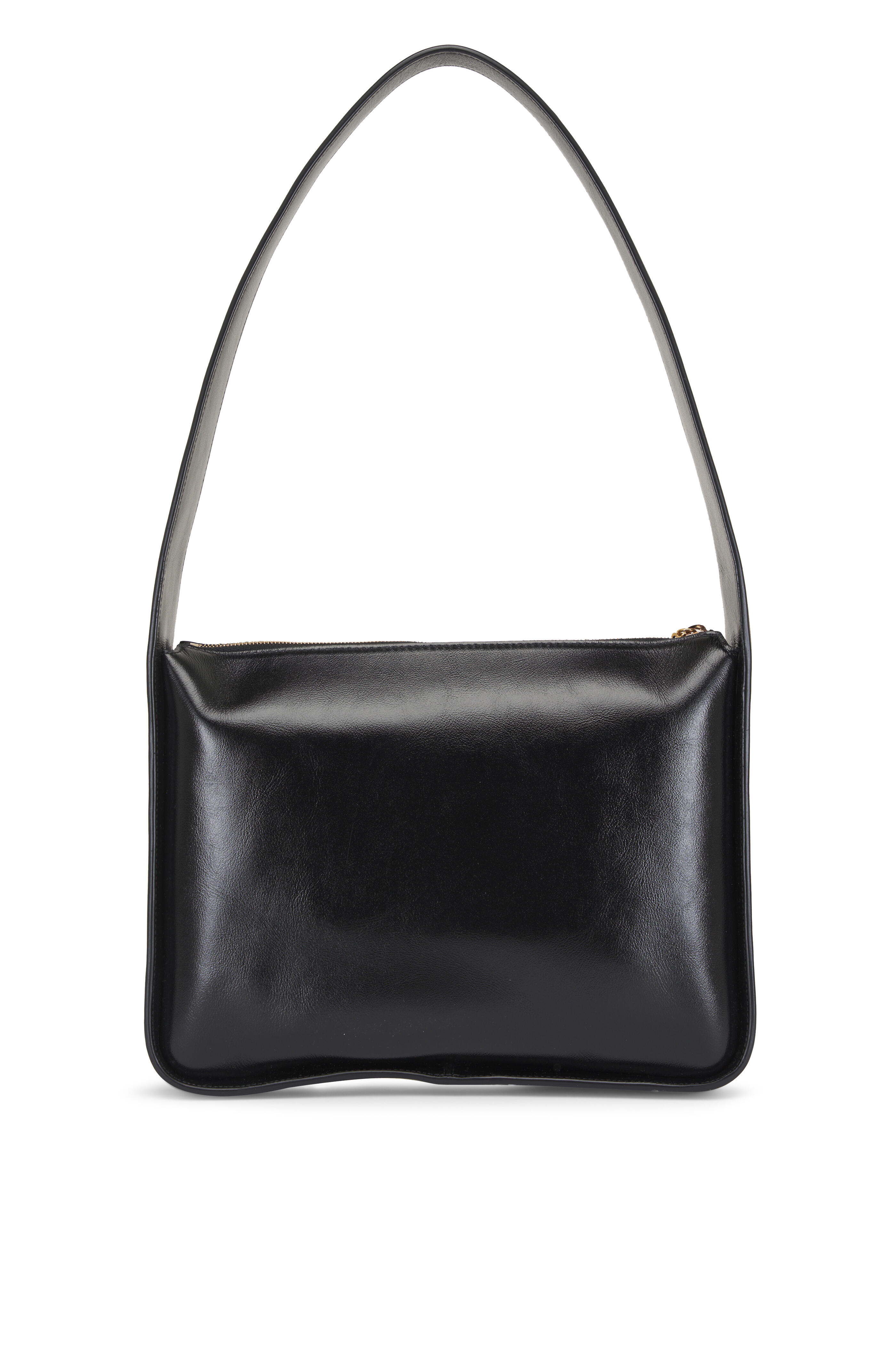 Crackle patent leather. Single top handle. Top zip closure. Interior slip pocket. Gold-plated brass hardware. Made in Italy. Length: 10 in. Width: 2.3 in. Height: 17.8 in. Handle Drop: 10.5 in.