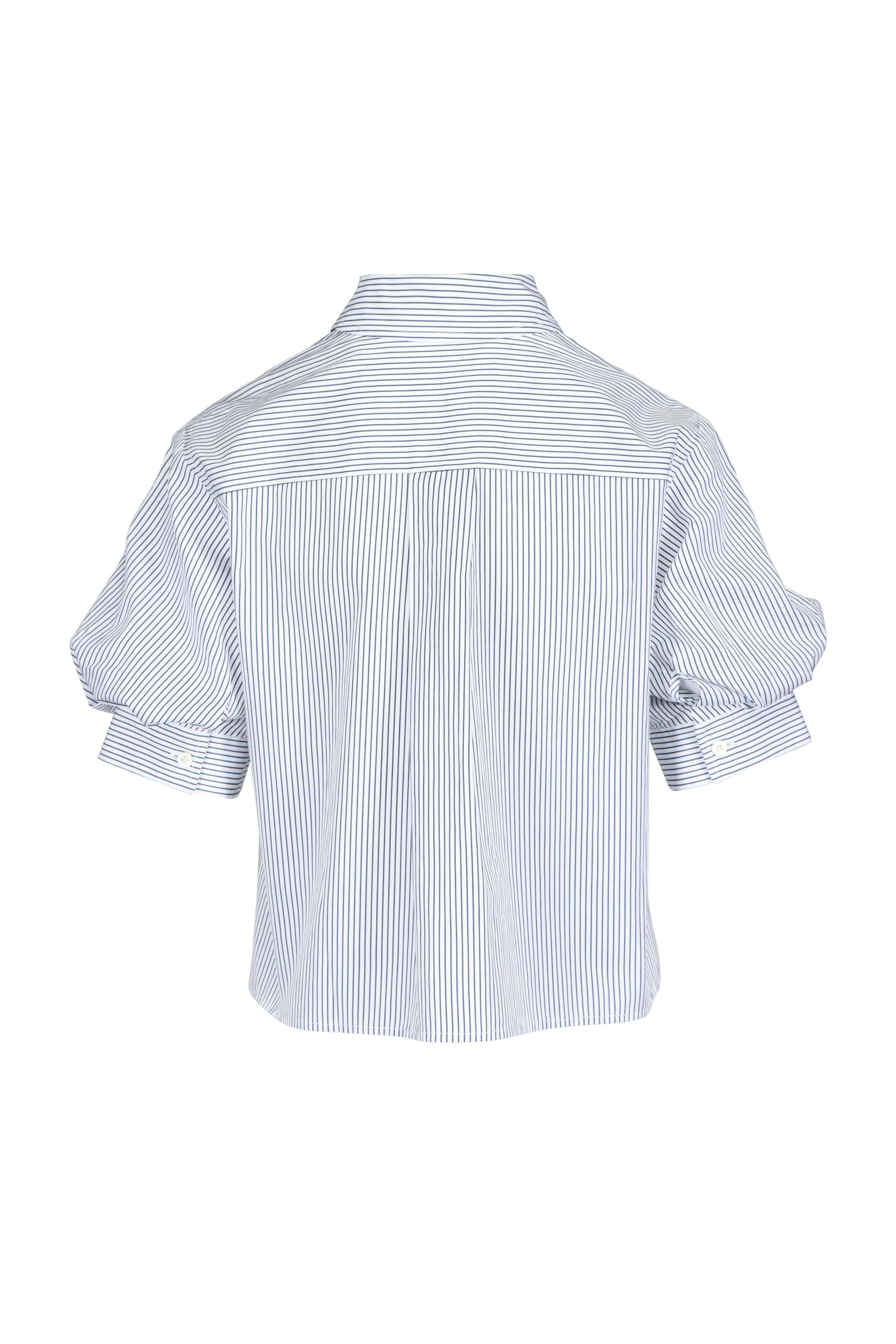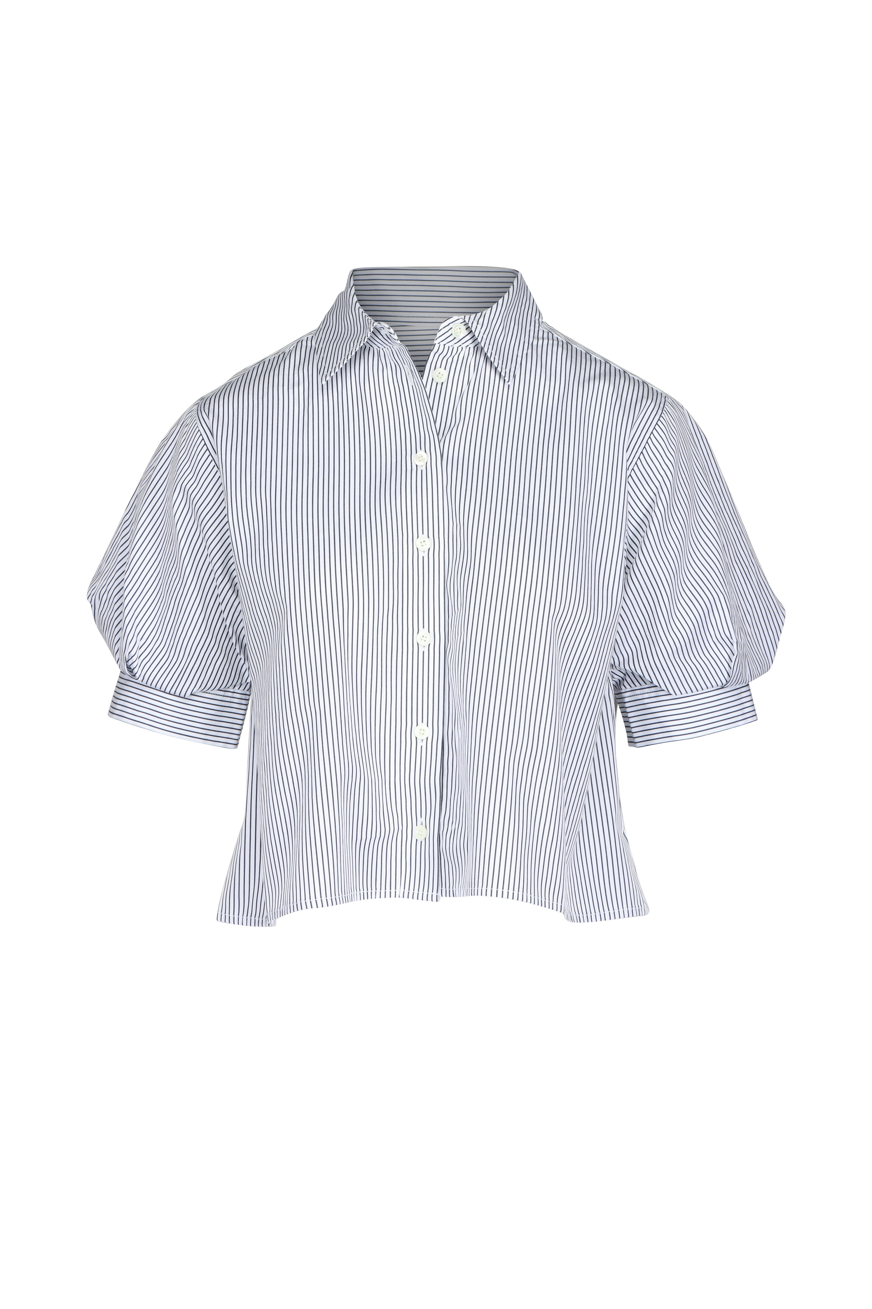 Spread collar. Front button closure. Elbow-length sleeves. Straight hem. Imported. Length: 22" (Medium). 100% cotton. Machine wash, dry flat.