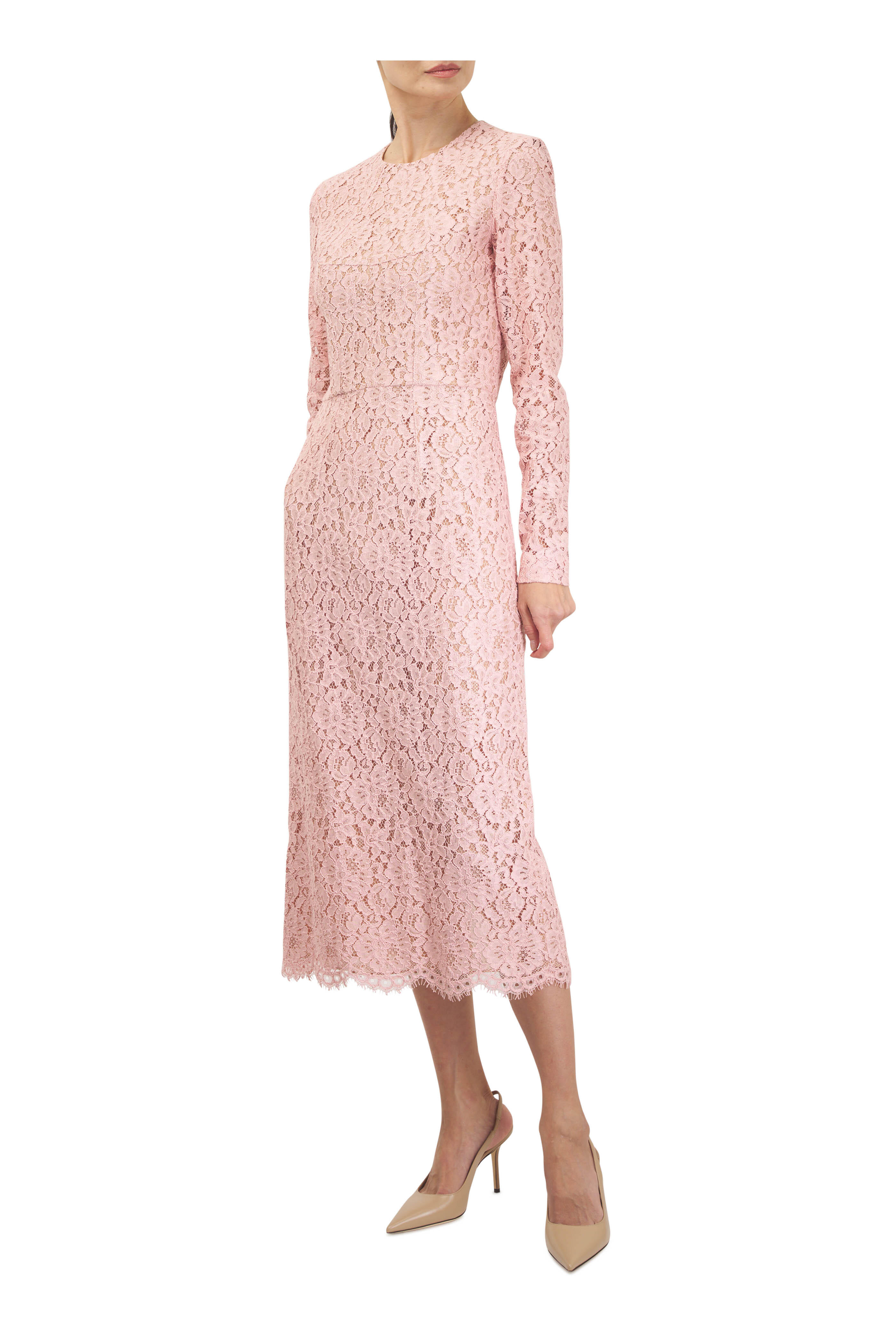 Pink Quartz Lace Long Sleeve Sheath Dress